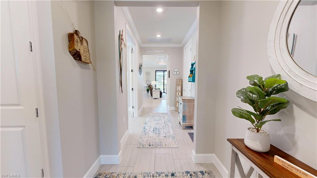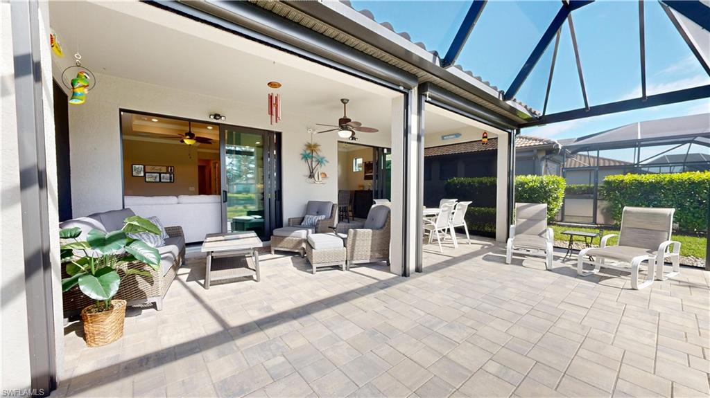 Ave Maria Florida Living at its Finest, Del Webb Naples is a Premier 55+ Amenities & Lifestyle Rich Community. Exceptionally Optioned “Prosperity” Model, w/Covered & Custom Extended Rear Lanai Providing 936+ Sq. Ft. of Outdoor Living/Entertaining Space, on Oversized Premium Water Lot, Stunning Views, 1751 Sq. Ft. 2176 Total Sq. Ft. , 2 Bedrooms w/Den, 2 Full Baths, 2 Car Garage. Options Include; Impact Windows & Doors, Custom Mansard Screen Cage 10 x 26 x 10 , Hurricane Rated Roll Downs w/Magna Track Technology at Rear Lanai Enhancing Outdoor Living Space, Den Option w/Glass French Doors, Beautiful Tray Ceiling w/Crown Molding at Main Living Area, Crown Molding Throughout, Upgraded 42” Cabinets, Rollout Trays, Soft Close, Convenience Pckg, Quartz Tops, Grp 5 Backsplash, SS Appliances, Infinity Frameless 3/8 Glass Master Shower, 12x24 Porcelain Plank Flooring Throughout, Upgraded 8’ Interior Door 5 ¼ Baseboard, Finished Laundry Rm w/Utility Sink, Mini Split AC in Garage w/ Insulated Garage Door & Attic Above Head, Epoxied Floor, Storage, Creates the Perfect Comfortable Work Area without Limitations, Electrical Floor Outlet, Decorative Ceiling Fans & Light Fixtures, Plantation Shutters, Upgraded Landscaping Trees Added, Too Many Options to List. Property Complimented by Oasis Club Resort Style Amenity Center – Resort Pool/Lap Pool/Jacuzzi, Fitness Center, 12 Pickleball Courts /2 Tennis Courts/ 4 Bocce Courts, Catering Hall, Golf Sim, Billiards, Movement Rm, Activities Director. Semi-Private Championship Style Golf Course, Pro Shop, On-Site Golf Pro, Restaurant. “Come Experience the Beauty that is Ave Maria”
