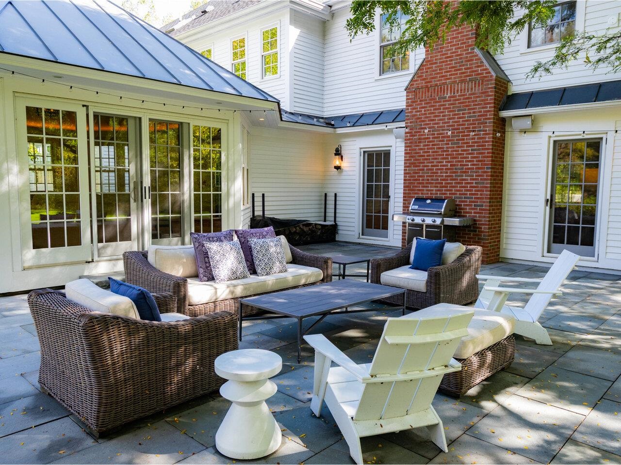 Step inside this timeless 6, 000+ SF home where classic New England architecture meets modern comfort. With 5 bedrooms and 5+ baths, the layout offers both elegant gathering spaces and private retreats. The grand foyer with slate floors and sunlight-filled staircase opens to a cozy den, paneled office, and a chef’s kitchen with oversized island, Wolf range, and seamless flow into the dining area, living room with fireplace, and spectacular octagon sunroom wrapped in windows. Upstairs, a serene primary suite offers dual walk-in closets and a spa-worthy bath with double vanity, soaking tub, and glass shower. A guest suite includes a private ¾ bath, while two additional bedrooms share a remodeled bath with steam shower and thoughtful finishes. A second-floor hallway, lined with windows, connects to a laundry room and dual workstations. Two mudrooms and a private apartment above the garage add versatility, complete with its own kitchen, living space, bath, and back entrance. Set on 4. 2 landscaped acres with bluestone patio, heated pool, covered porch, and tranquil pond, this home offers a rare blend of refinement and livability in a truly exceptional setting.