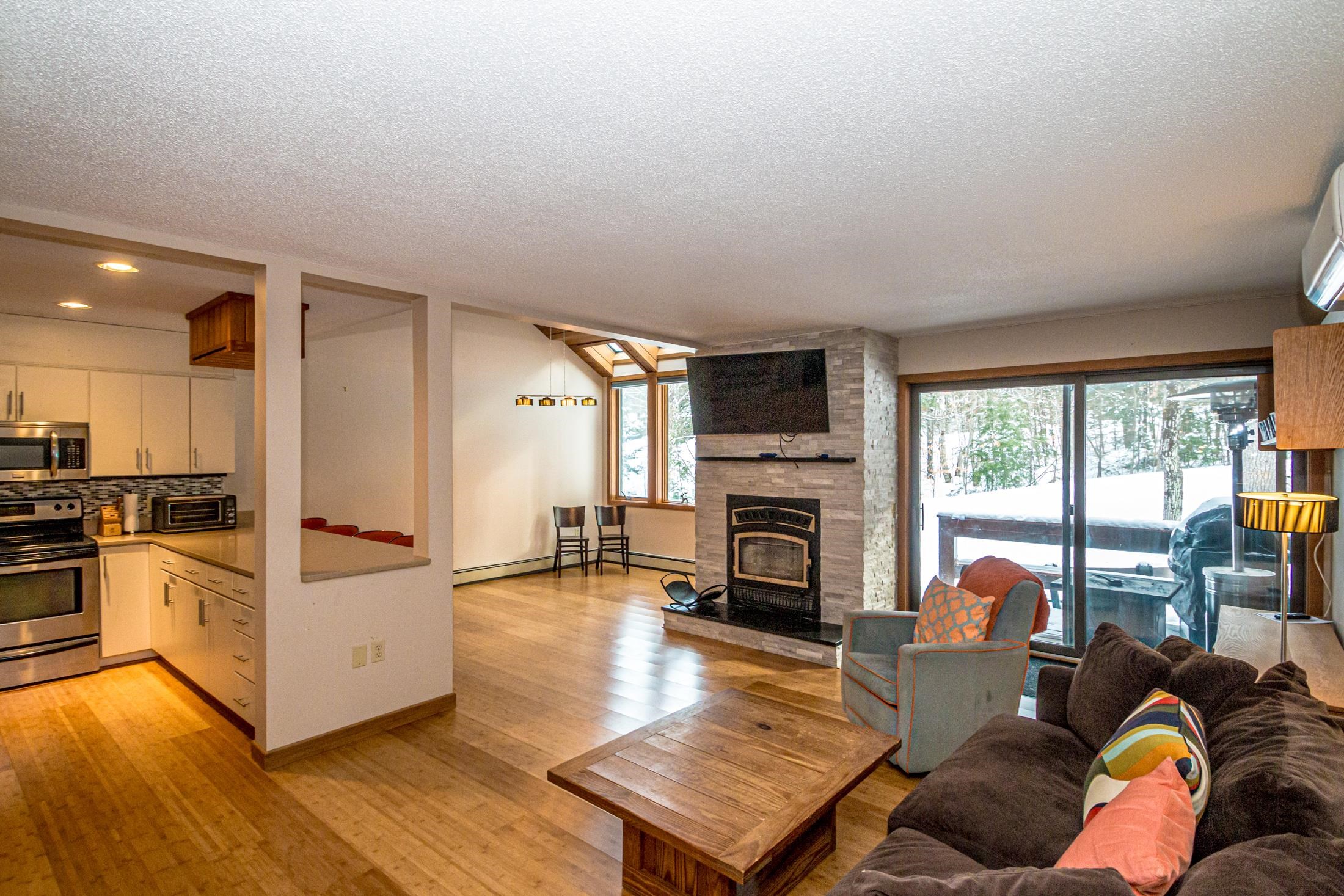 Ski-In, Ski-Out at Mountainside on Attitash Trailside Townhouses – Live and play on the slopes of Attitash. This cedar-sided contemporary townhouse offers 3 bedrooms, 3 updated baths and direct trailside access to the Stoney Brook Trail. Enjoy après-ski gatherings in the open living area with a cozy wood-burning fireplace and high-efficiency insert. A Viessmann boiler for the baseboard hot water heat along with heat pumps for heating and cooling. Spend a day on the slopes riding the Mountaineer high speed quad lift to the summit of Attitash and an exciting run down to the base lodge. Living between the slopes of Attitash and Bear Peak, you can savor the convenience of stopping home for lunch between runs. With more than 64% of the town in National Forest, there are plenty of opportunities to explore nearby hiking and biking trails. #31 is just steps from Mountainside’s pool, tennis court and clubhouse. Head over to Matty B’s across from the mountain or head to Jackson and North Conway to enjoy valley restaurants and entertainment. Don’t forget the tax-free shopping. If you’re lucky enough to have an EV, there is a level 2 outlet! Call Mountainside your home for four-season mountain living.
