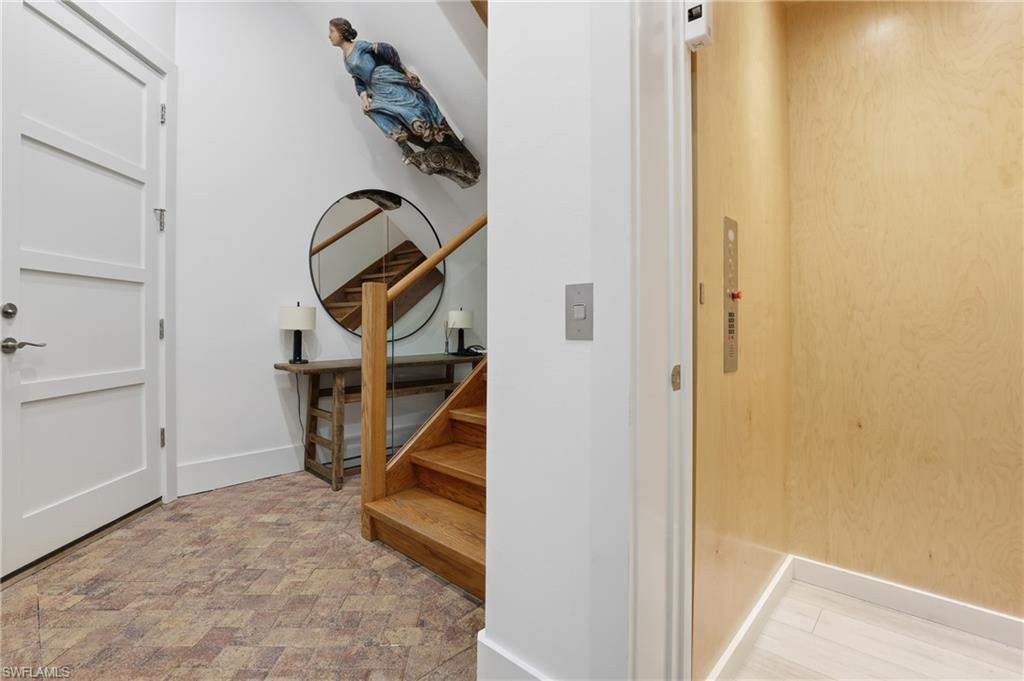 Additional features include an elevator, front-door camera security system with alarm, and a private 3-car air-conditioned garage currently configured as a 2-car space with storage, pre-wired for a vehicle lift. Excellent rental potential.