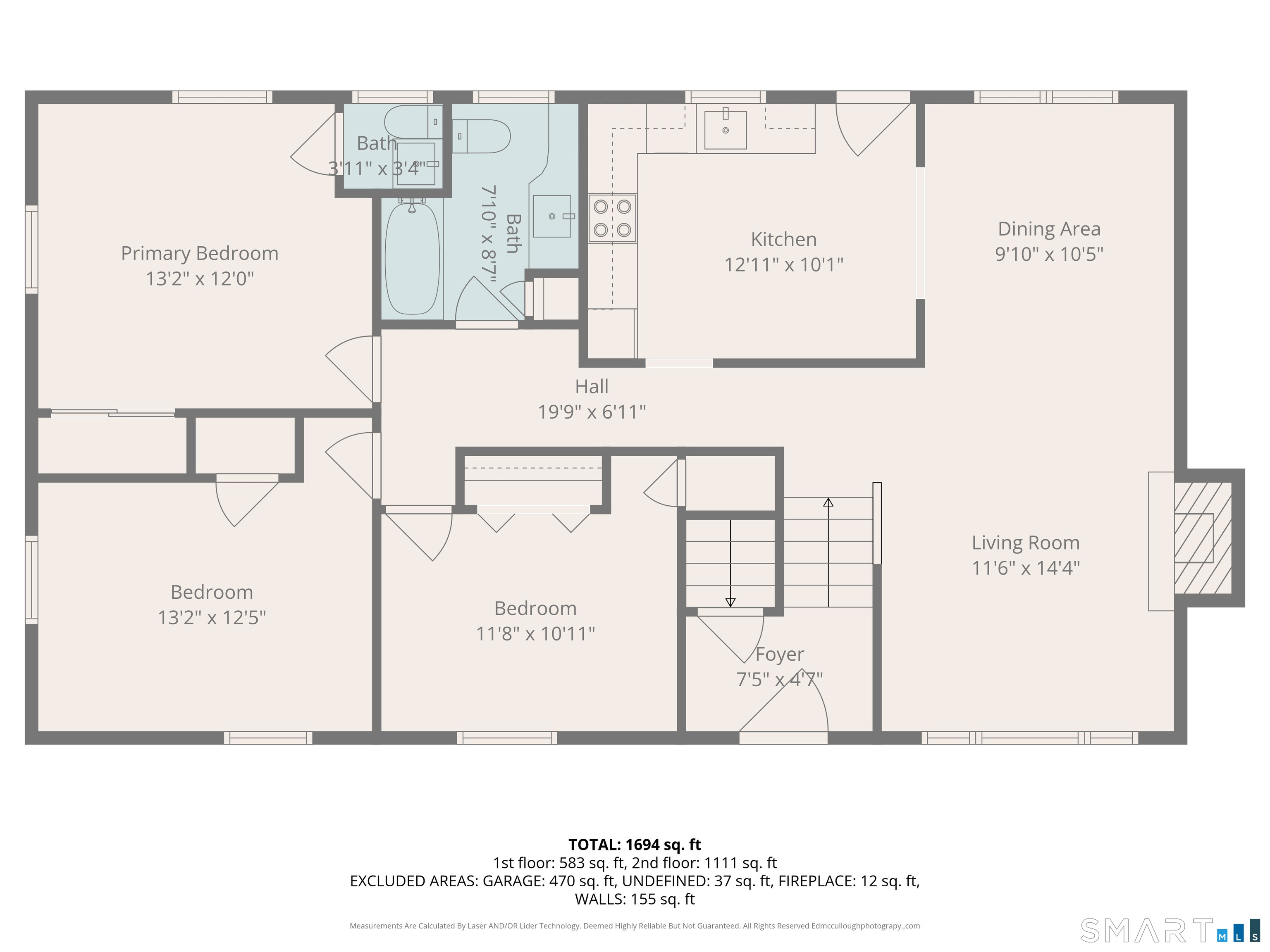 | Primary Bedroom | Ceiling Fan,Full Bath,Hardwood Floor | 12.5 x 13.2 | Main |