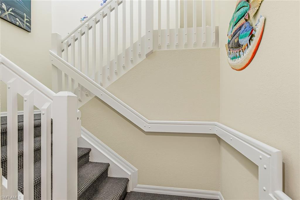Rarely available Whisper Trace second-floor coach home residence with an attached garage. Offering the epitome of luxury living with all the fabulous award-winning amenities of Fiddler’s Creek tropical resort-style club and spa community. This spacious and meticulously maintained three-bedroom, two-bath residence features over 2, 000 square feet of inviting living area. Enjoy the scenic lake views and sunrises from the large family room, kitchen and lanai. High vaulted ceilings, new paint throughout, upgraded flooring and bath tile. Open kitchen with custom tile backsplash and beautiful quartz countertops. Whisper Trace has had all major property maintenance updates completed, including new roofing, impact windows and exterior painting. New pavers on walkways and driveways will be completed by May. Enjoy the state-of-the-art fitness center, golfing, tennis and pickleball courts, bocce court, plus fine and casual dining and many social activities. Ideal location just minutes to the beaches of Marco Island and Naples, and to the Marco Island Executive Airport. Private access to beach and boating with optional Tarpon Club membership. You’ll love the Fiddler’s Creek resort lifestyle!