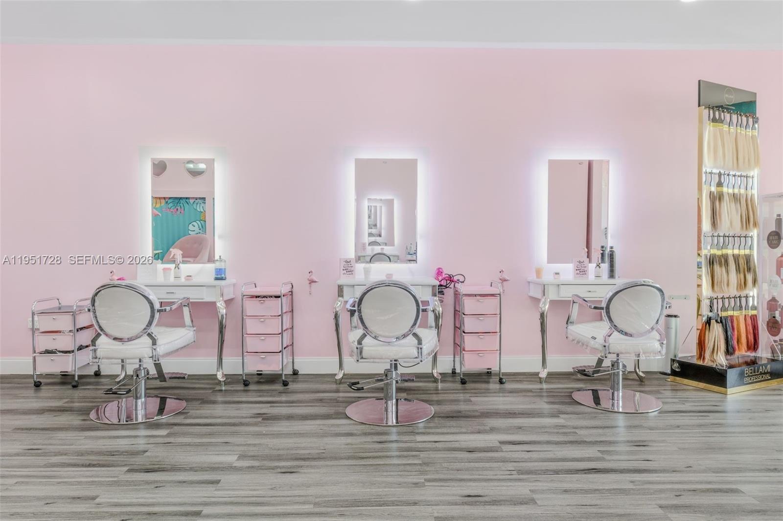 This beauty hair salon is in the heart W Hialeah, beautiful finishes, every details well thought out, custom furniture from DIR Salon. Separate room for lashes, eyebrows, hair removal, or make it an office. 6 hairdressers chairs with standing mirror table. Reception area suited with apple monitor. Everything was renovated and made to tailor professional fashioned top of industry hair stylist. Towards the back you'll have 2 hair washing chairs, very comfortable to fit the need of your customer, picture/selfie area, kitchen, coffee expressor machine, and a stunning renovated bathroom. The sale will include the name, furniture, inventory, bring in offer and we work the terms.