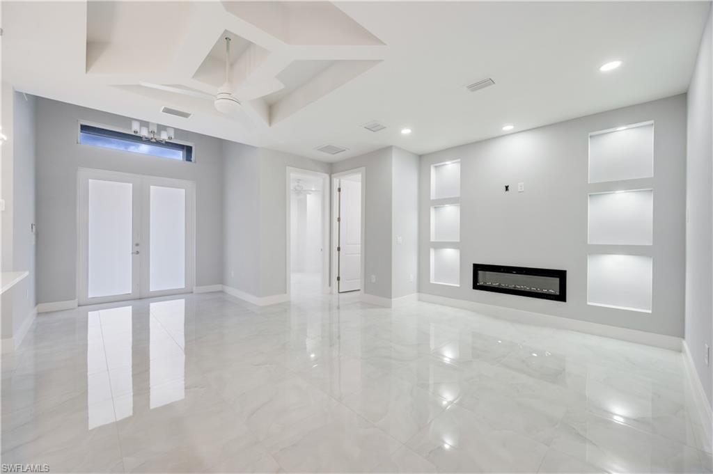 This stunning 2025-Built modern home at 650 Kraft with its updated floor plan is now complete. Seize this opportunity to own a 3-bedroom (with effectively 2 main bedrooms, both featuring walk-in closets), 3. 5-bathroom, 1, 800 sq ft masterpiece. Nestled in the Eisenhower neighborhood with no HOA fees, this move-in-ready home is ideal for families, snowbirds, or investors seeking Lehigh Acres’ affordability and growth. Step into an open-concept layout boasting 10-foot ceilings, porcelain tile flooring, and impact-resistant windows for safety and savings. The gourmet kitchen shines with white soft-close cabinetry, quartz countertops, a large center island, and LG stainless steel appliances (French door refrigerator, electric range, microwave, dishwasher). Unwind in the spacious living area, anchored by a contemporary electric fireplace with stylish mantels and LED lighting. The west-facing backyard with a tiled, covered porch (with a built-in stove) offers stunning sunset views and space for entertaining, enhanced by a sprinkler system for easy maintenance. Additional features include energy-efficient A/C, LED lighting, and a two-car garage. Located minutes from SR-82, Lee Boulevard, Veterans Park, and top golf courses like Westminster Golf Club, you’re a short drive from Fort Myers and Gulf Coast beaches.