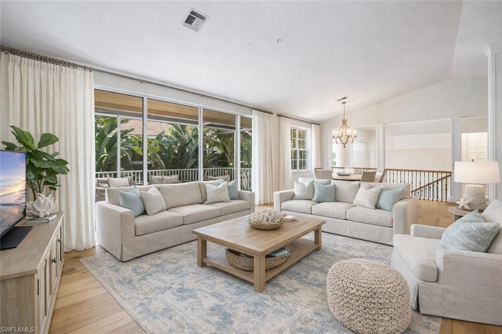 One or more photo(s) has been virtually staged, AI generated or rendered. "Live Life Beautifully in Southwest Florida" in this beautifully maintained three-bedroom, two-bath turnkey-furnished condo located in the Terraces of Olde Naples. This one-owner residence has been lovingly cared for and lightly used as a guest home for family and friends. Built in 1997 and thoughtfully remodeled, the condo features a bright, elegant kitchen with quartzite countertops, custom cabinetry with glass inserts for displaying, and Thermador appliances, including an induction cooktop & hood above for ventilation, plus built in counter height microwave. The main living areas showcase Bella Cera Oak hardwood flooring, while two bedrooms are carpeted for comfort. The third bedroom is versatile, offering a pullout sofa for additional guests. Enjoy a southern-exposure balcony overlooking Olde Naples, filling the home with natural light from the east, west, and south. Being on the top floor, the residence is exceptionally light and bright. Additional highlights include a custom-designed laundry room with cabinetry, sink, and quartz countertops; extra storage conveniently located on the first-floor foyer; and one private garage space. The primary suite offers a spa-like bathroom with white marble countertops, a beautiful contemporary shower, and a custom-built walk-in closet. Just off main living area is a extra large lanai with view of the pool area & access to primary bedroom bringing once again all the natural light we want from SW FL living. Ideally located just blocks from Fifth Avenue South, 3rd Street Shopping/Restaurants & and six blocks from Naples’ pristine beaches, this exceptional property truly has it all.