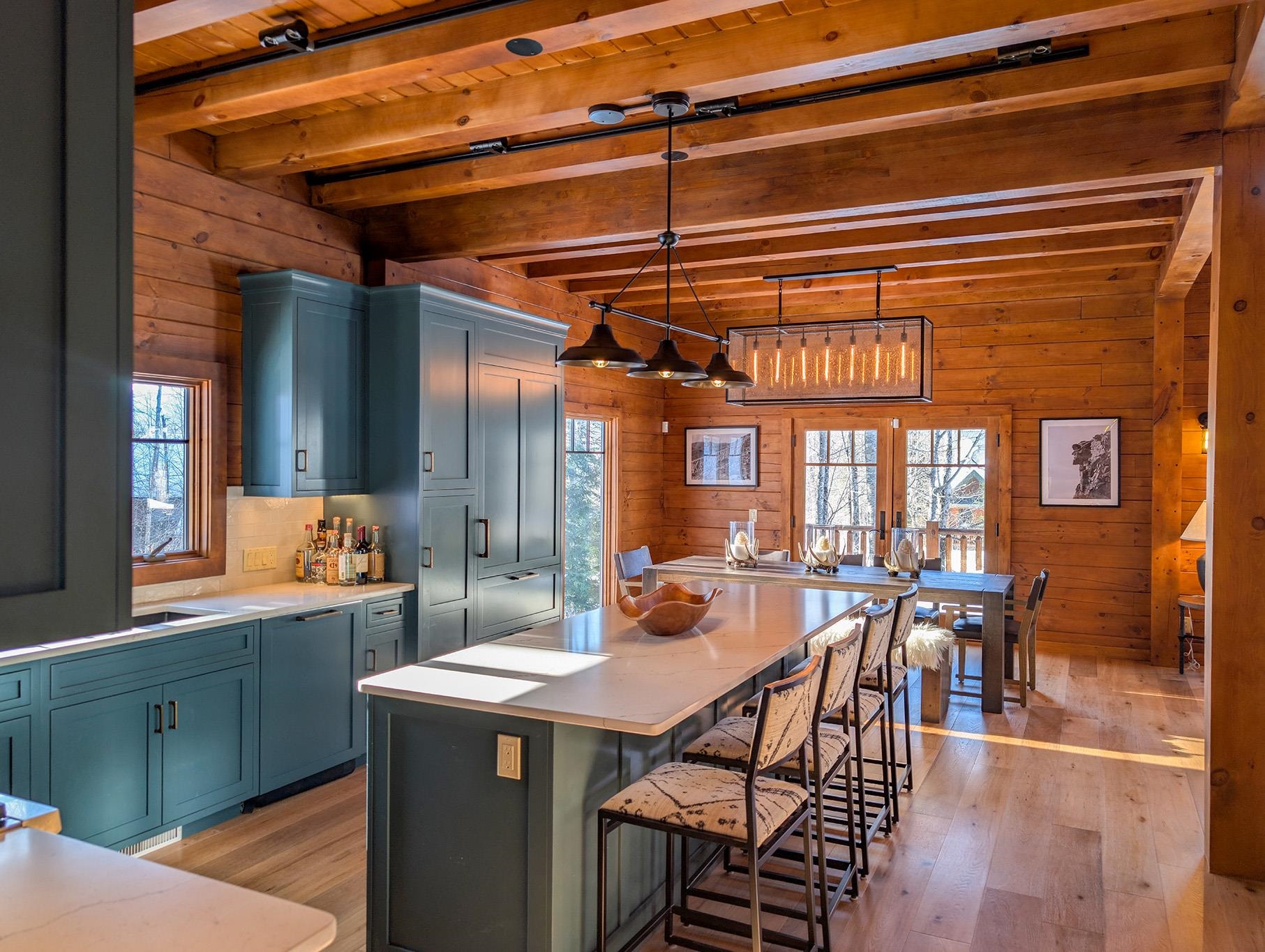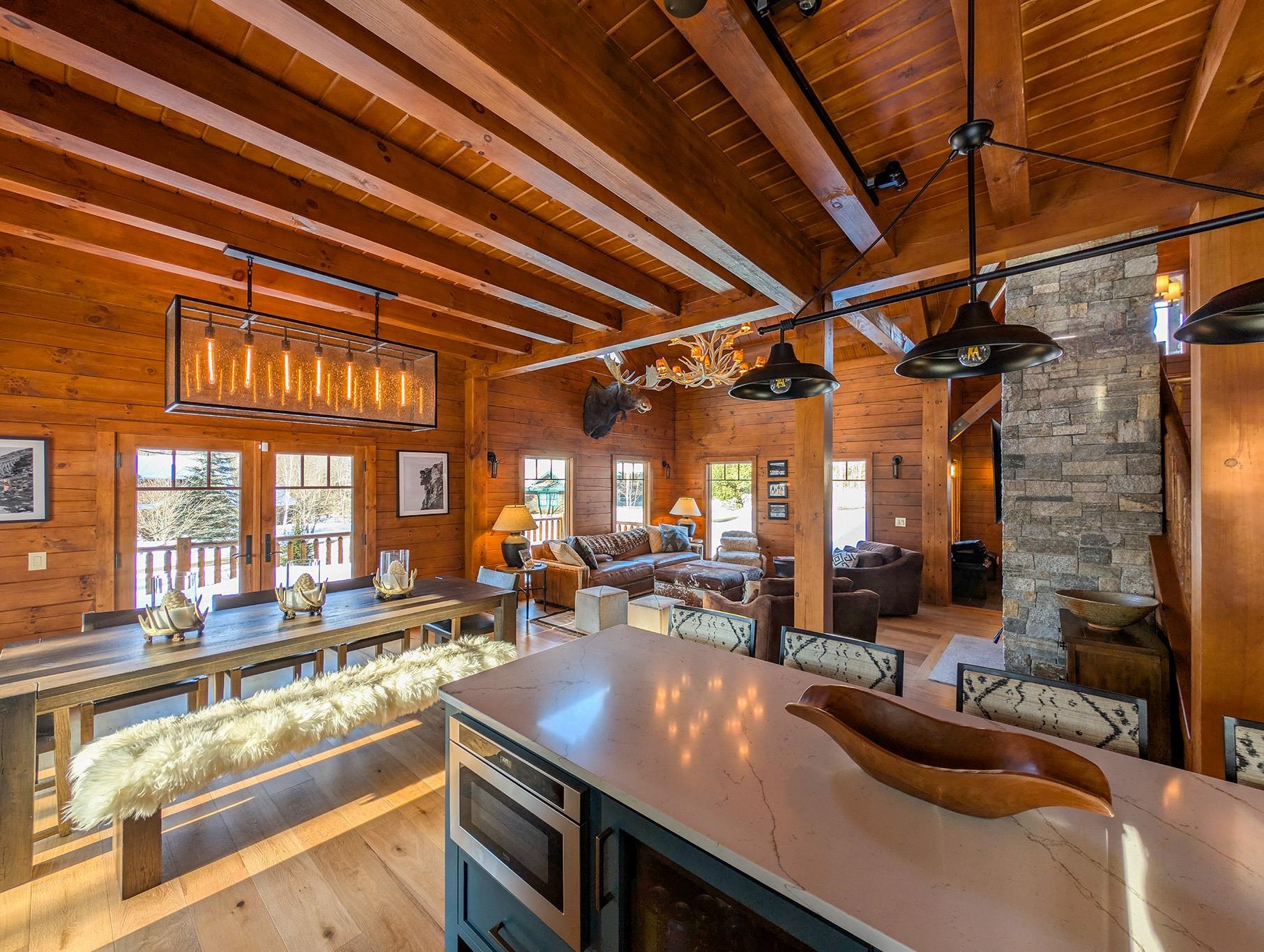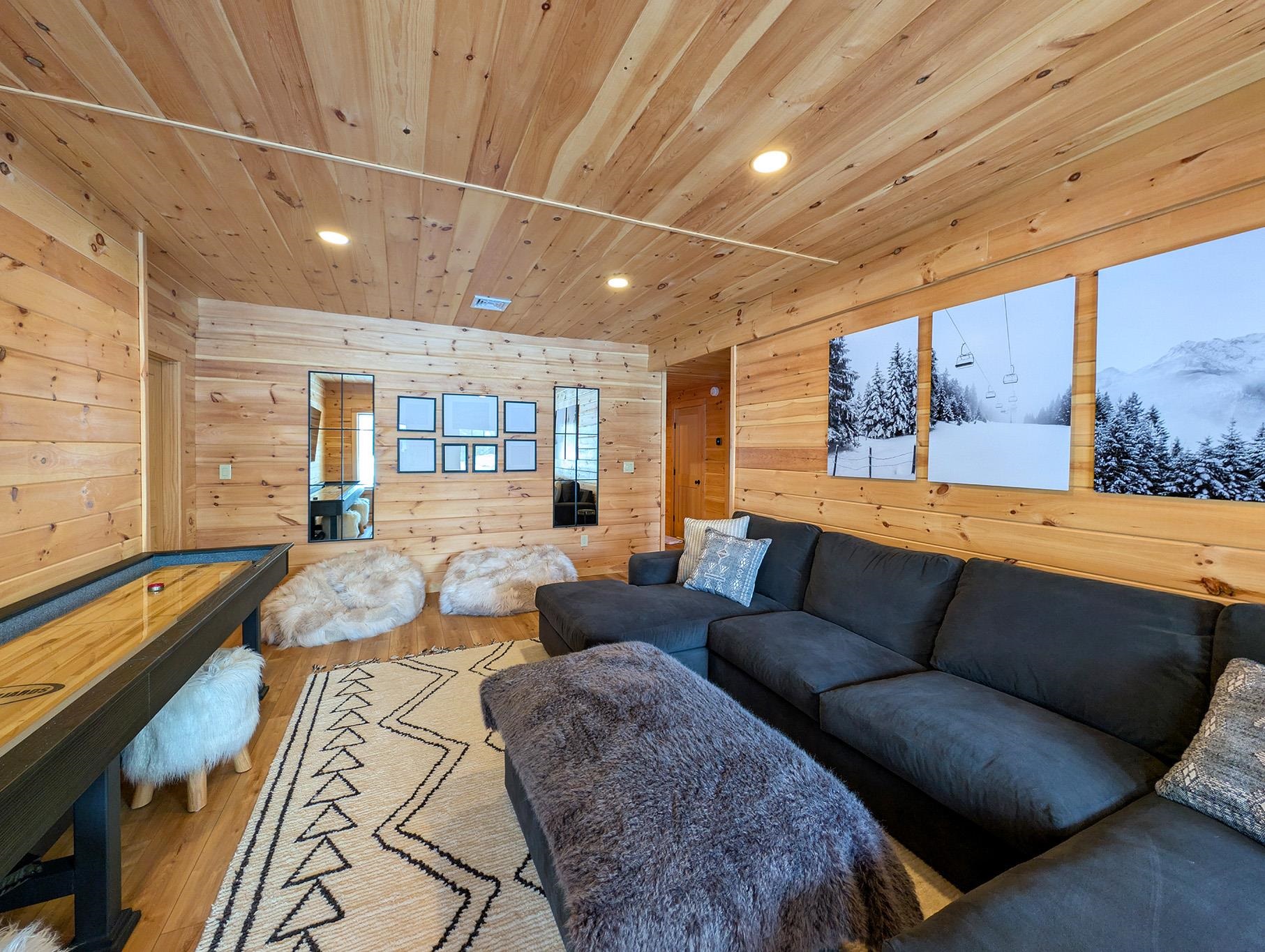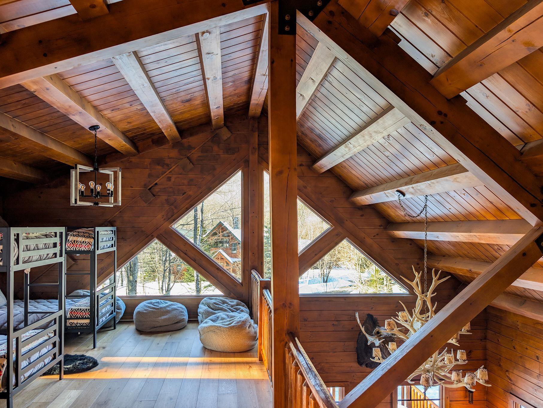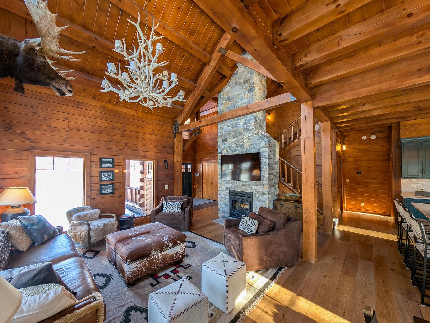 Everyone dreams of a Log Cabin in the Woods, but how about one you can ski directly to from New Hampshire’s favorite place to down-hill. Arrive at your home away from home head straight to one of three South Peaks’ chair lifts ski until you are ready to call it a day. Then Take Boom Run to the private owner's trail (with snowmaking and grooming provided by Loon’s superior snow makers) and ski right to your house. This modern Log home design thought of everything. Such as a ski room with an outside entry to store all your gear, a playroom for the kids, a cozy woodstove insert to blast the cold out of your bones and all the gathering spaces a big group demands. Now add a top-of-the-line chef’s kitchen with Wolf appliances and 5 private bedrooms, plus a bunkroom loft with 4 more beds and the 10th Mountain regiment can all sleep here. We know your family will enjoy all of the majestic seasons in the White Mountains so Central Air and a whole house generator were added so you’ll never be too hot or in the dark. This is the Perfect home for all occasions. Furniture may be negotiable with sale