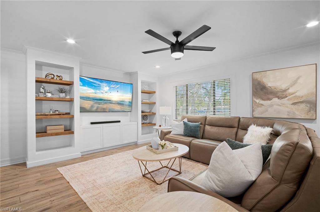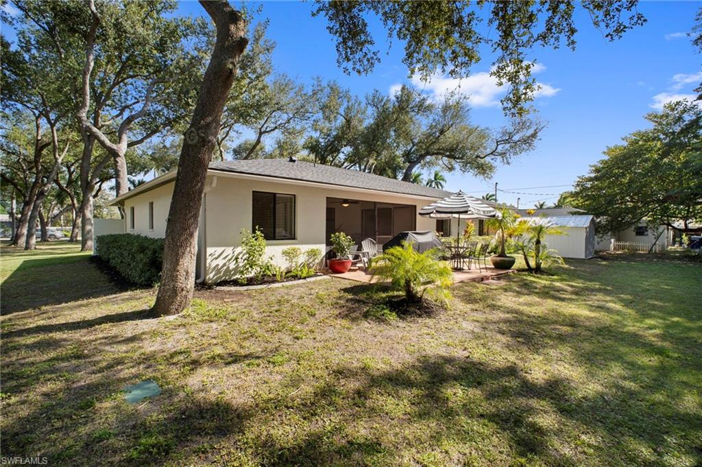 Live in the Heart of Fort Myers! Located in this highly desirable area near the Historic District, this beautifully remodeled 3-bedroom, 2-bath home with a 2-car attached garage has been updated from top to bottom and is truly move-in ready. The home features a new roof (2023) along with new tile flooring throughout, updated baseboards and door casings, and a stunning new front door that sets the tone as you enter. The open living space is enhanced by a custom built-in entertainment center, while the completely renovated kitchen boasts a large center island, quartz countertops, stylish backsplash, built-in dry bar, and corner benches with added storage—perfect for entertaining and everyday living. Additional upgrades include all new ceiling fans, closet organizers in every bedroom, and a newly remodeled guest bathroom. Step outside to the screened lanai with new tile flooring, freshly painted exterior, and lush landscaping supported by a 240-ft irrigation well (2023), sprinkler system, and Saint Augustine grass. The beautiful yard also features a 10x20 wood shed with concrete slab (2025), plus a dedicated dog pen with pavers and turf—ideal for pet lovers. Just minutes from the Edison & Ford Winter Estates and Downtown Fort Myers, this home is located in one of the area’s best neighborhoods for schools, dining, shopping, and golfing, and only 20 minutes to the beaches. Don’t miss this opportunity to own a beautifully updated home in one of Fort Myers’ most sought-after locations!