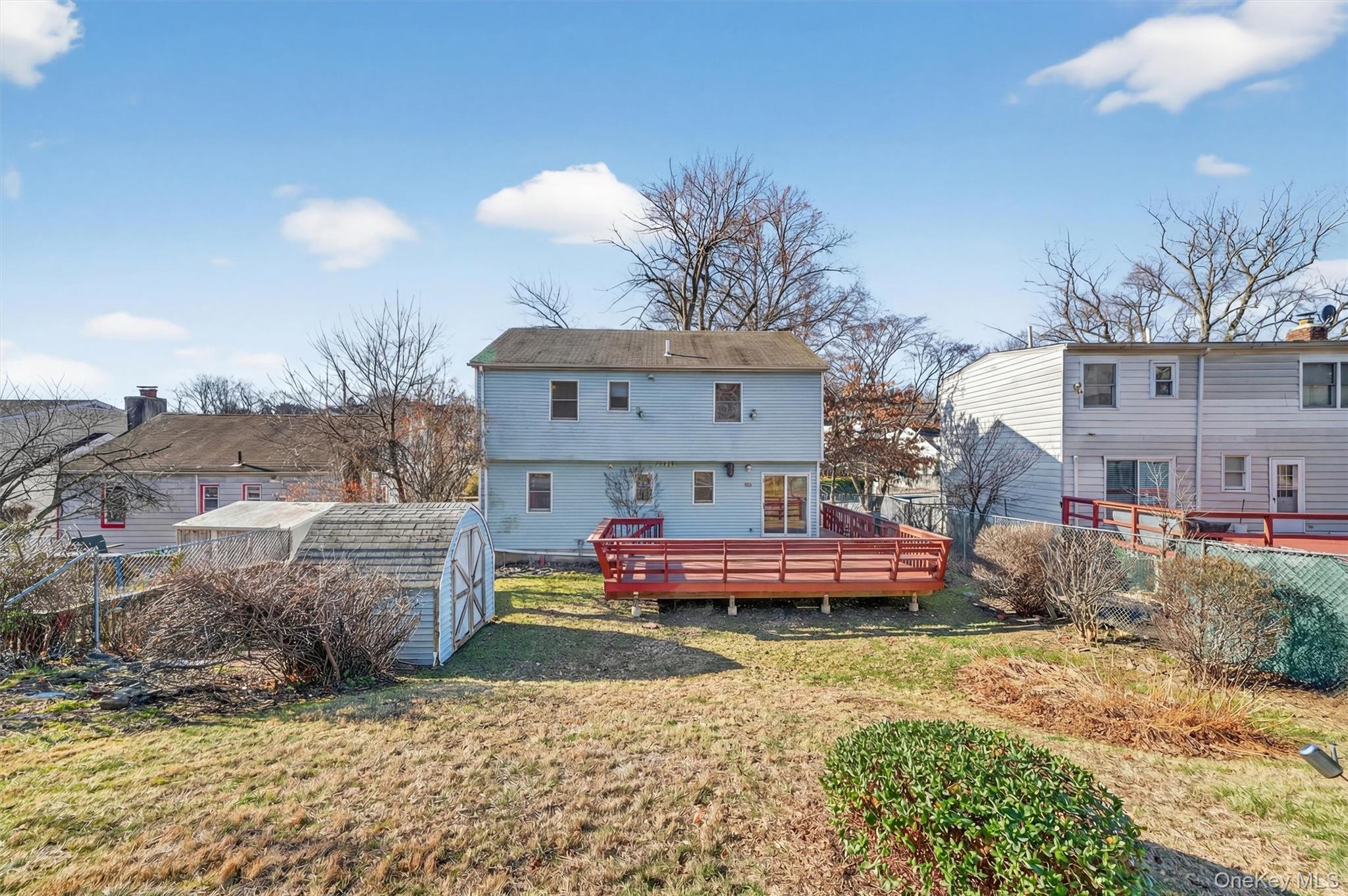Welcome to this sun-drenched, spacious home offering room for everyone, set on a quiet, tree-lined street in the northwest section of Yonkers. This five-bedroom, two-bath property offers an exceptional amount of living space, thoughtfully designed for comfort, flexibility, and everyday living. The main level features a bright living room with hardwood floors and a fireplace, a formal dining room, and an updated eat-in kitchen with oak cabinetry, tiled floors, granite countertops, and stainless-steel appliances, along with a breakfast nook ideal for casual meals. One bedroom on the main level provides excellent flexibility for guests, a home office, or multi-generational living. Upstairs, the bedrooms are impressively sized, offering outstanding space and excellent storage throughout. The layout allows everyone to spread out comfortably, with generous closets and storage woven seamlessly throughout the home. The lower level includes an unfinished basement, well suited for storage or future use. An attached one-car garage, along with a driveway that accommodates two additional vehicles, adds everyday convenience. Step outside and enjoy an expansive deck built for entertaining — perfect for gatherings, outdoor dining, and relaxed get-togethers — all combined with a wonderful backyard space that makes outdoor living easy and enjoyable. An outdoor storage shed adds additional functionality. Quietly located yet convenient to parks, Metro-North, shopping, dining, and everything Yonkers has to offer, this is a home that truly delivers on space, comfort, and lifestyle. Welcome home!