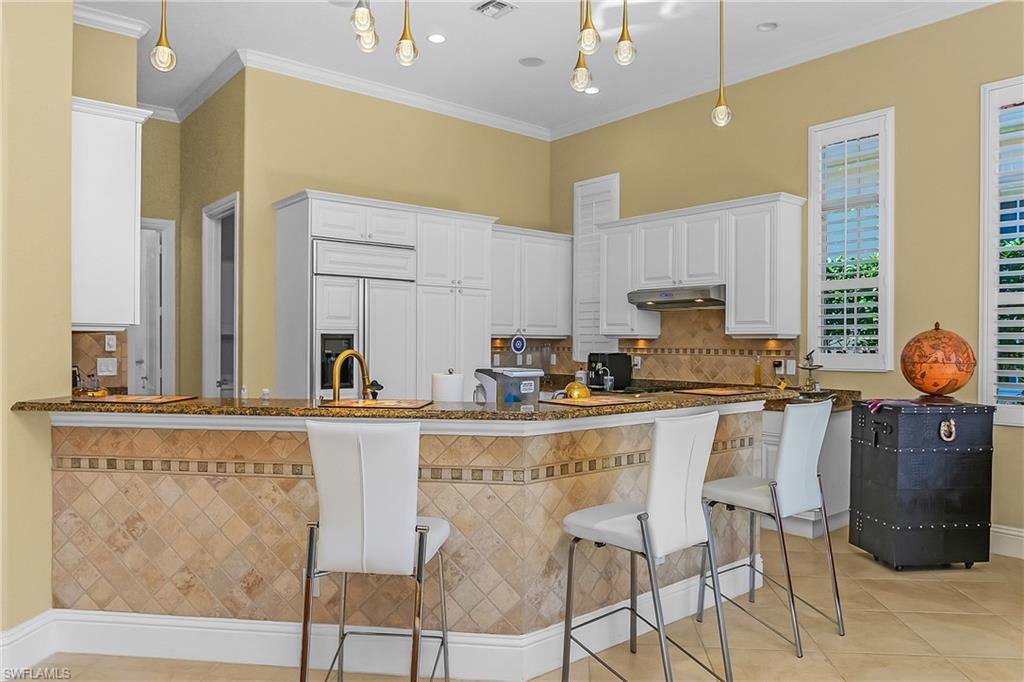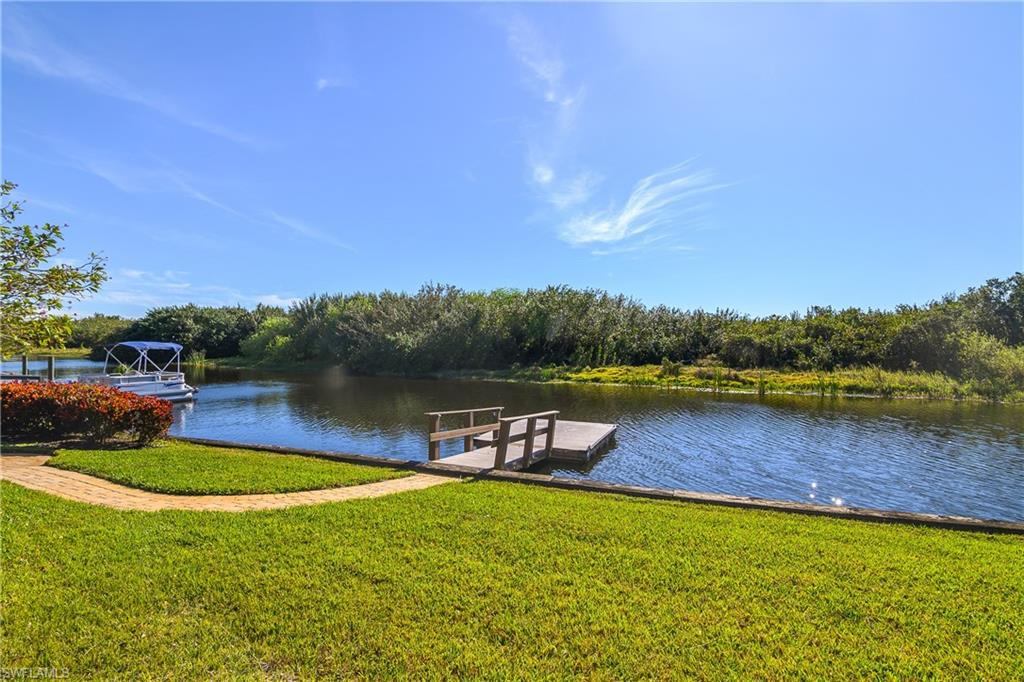 Location, location, location. Rare opportunity to own a home on the southwest end of Bellagio Drive. The southwest exposure affords maximum sunlight on your pool and lanai area. Many large windows bring sunlight into the home for that bright and airy feel. As you relax on your lanai your view is of a beautiful infinity pool, followed by a peaceful waterway with private dock and conservation area. You’ll find this home to have a very spacious feel with 4 bedrooms plus den and 4. 5 bathrooms. The master bedroom, one guest bedroom, and den is downstairs, while two additional bedrooms are upstairs. There is a second-floor private balcony facing south which is perfect for enjoying your morning coffee, watching the nighttime stars, or enjoying the Florida sunshine. The Fiddler’s Creek community boasts a 54, 000 square-foot clubhouse and spa, two restaurants, a poolside bar/grill, state-of-the-art fitness center, full – service spa, tennis, Pickleball, bocce ball with optional golf and beach memberships available. This is resort living at its best