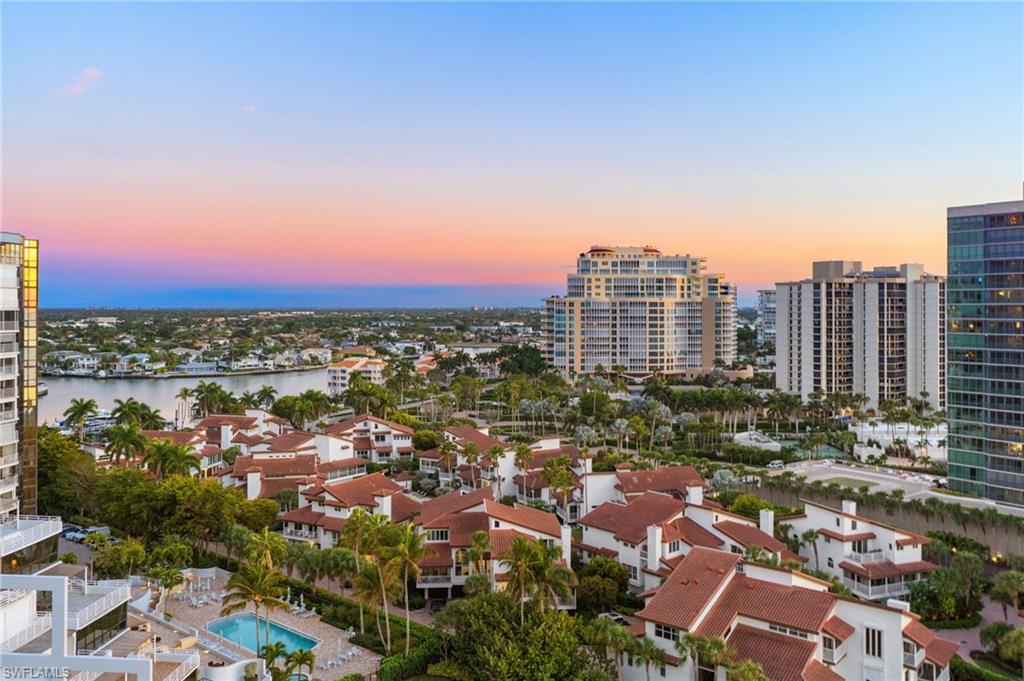 Wake up to sweeping bay and Gulf views from this beautifully appointed 2-bedroom plus den beachfront residence on the 16th floor of the sought after Meridian. Designed with a relaxed nautical coastal vibe, the condo features rich wood flooring, light-filled living spaces, and a spacious open air balcony that showcases the stunning panoramas from nearly every room. Offered turnkey furnished, this move-in-ready home in the sky blends comfort and sophistication, making it an ideal beachfront retreat. The spacious den adds flexibility for a home office or guest space, while the open living and dining areas are perfect for entertaining against a backdrop of endless blue skies and shimmering waters. The Meridian is a premier Gulf Shore Blvd N address with resort-style amenities —all just moments from Naples’ world-class dining & shopping. This is coastal living at its finest, where sunrise over the bay meets sunset over the Gulf.
