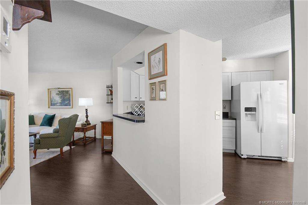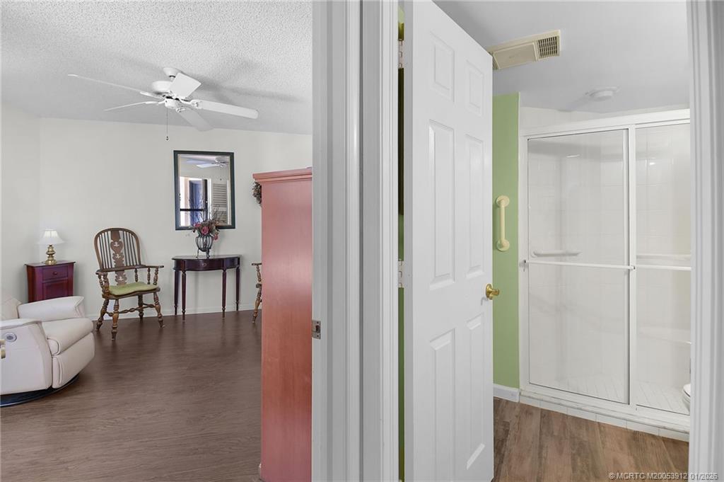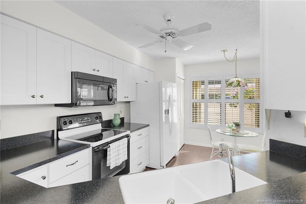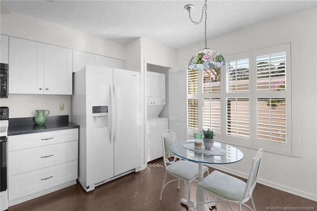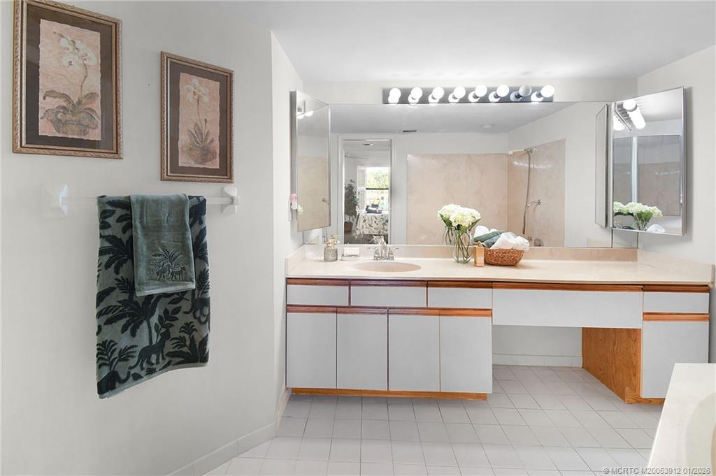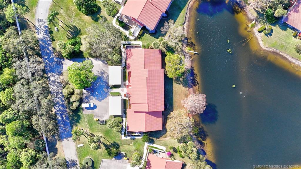 Montego Cove is a desirable 55+ community and hidden gem with mature trees in a walkable setting. This light and bright 2 Bed/2 Bath residence offers a spacious courtyard patio and enclosed porch with serene lake views. Features include newer flooring, a kitchen with granite countertops, and an open living and dining area. The primary suite includes walk-in closets, and all windows haven accordion hurricane shutters to provide storm protection. Community amenities include two swimming pools, lighted tennis and pickleball courts, and an active clubhouse. Ideally located near downtown Stuart, US-1 shopping and dining, local beaches, and medical facilities.