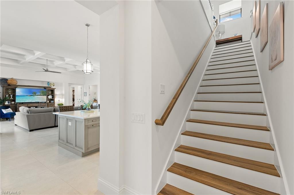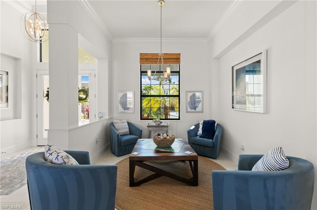 Experience luxury waterfront living at its finest in this stunning, move-in ready 5 Bedroom plus office/den, 4 bath residence, built in 2019 and offered turnkey furnished. Designed for both comfort and elegance, this exceptional home features an impressive 4-car garage, brick paver circular driveway, whole house generator, and quick direct boating access from your private boat dock complete with a 20, 000 lb. boat lift and two jet ski lifts. Step inside to a spacious open floor plan highlighted by high-volume ceilings and beautiful tile flooring. The gourmet kitchen showcases high end Jenn Air stainless steel appliances including a gas stove, large center island, and a walk-in pantry that's perfect for everyday living. The first floor primary bedroom suite offers a private retreat with a sitting area, walk-in closet, dual vanities, walk-in shower, and separate soaking tub. The main level also includes a dining area, sitting area, laundry room, office/den, second bedroom, and pool bath. Upstairs, you'll find an entertainment loft, three additional guest bedrooms and two full bathrooms providing ample space for family and guests. Outdoor living is equally spectacular. Enjoy the heated resort-style screened-in pool and spa, or relax under the covered lanai featuring a built-in summer kitchen and dining area. The lanai is further enhanced with remote controlled electric hurricane screens. Additional upgrades include new landscaping, landscape lighting, sprinkler system, dock lighting, smart window shades, an epoxy finished garage floor with built-in storage cabinetry, and a Jandy Aqualink pool system for convenient remote control use. Great location for shopping, restaurants, and riding bikes to the beach. This home delivers it all, offering the ultimate island lifestyle on Marco Island.