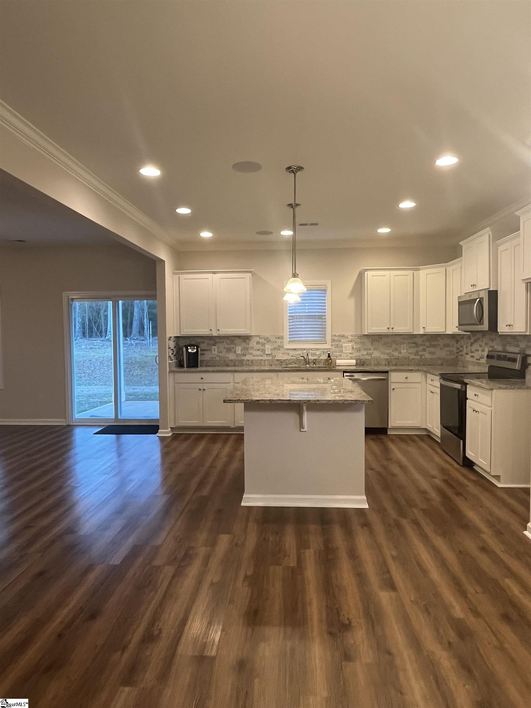 Very nice 3 years new 5 bedroom, 3 full bath home in the desirable Belvedere neighborhood. This home features open floor plan with durable LVP flooring throughout the main level. Guest bedroom/office with a full bath is located at the mail level. Eat-in kitchen with granite countertops, stainless steel appliance, and a walk-in pantry. Good size living room features ceiling fan and a cozy gas log fireplace. Upstairs features a large primary suites, 3 bedrooms, a full bath, and a family room/loft. Primary suit features vaulted ceiling, double vanities, garden tub, separate shower, and multiple closets. Covered back porch overlook level backyard and private wooded area. This home is central located between Clemson and Anderson with easy access to I-85 and Hwy 123.