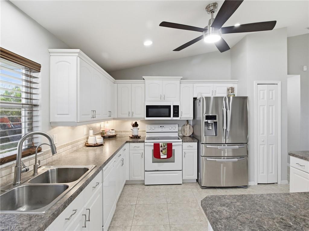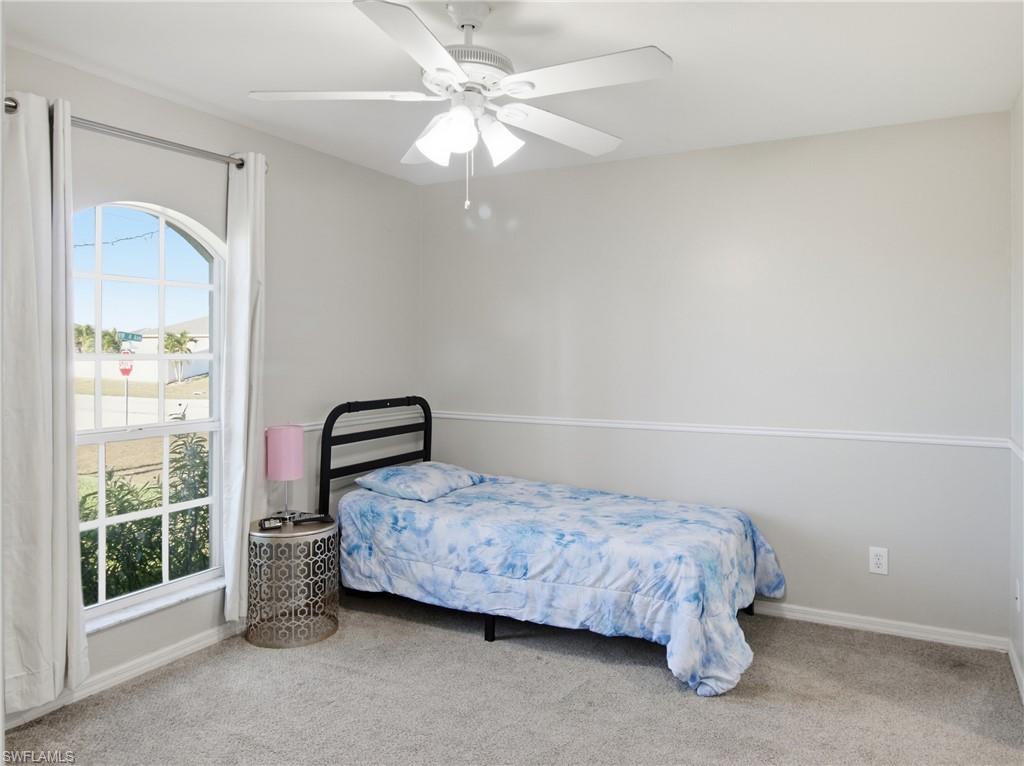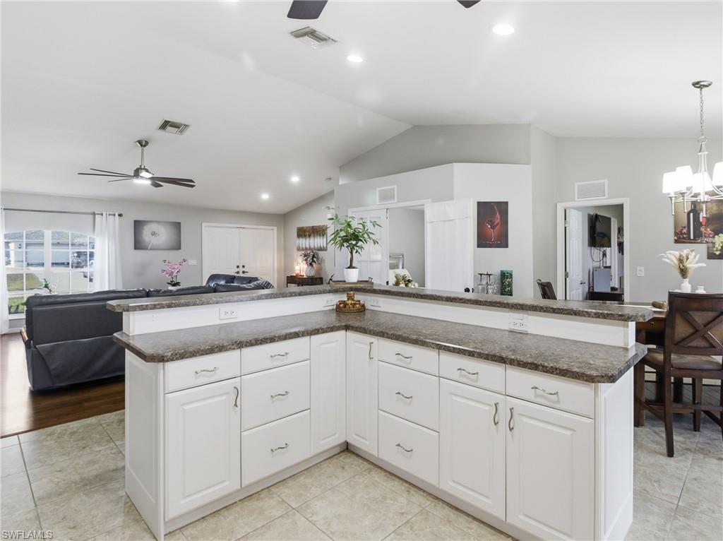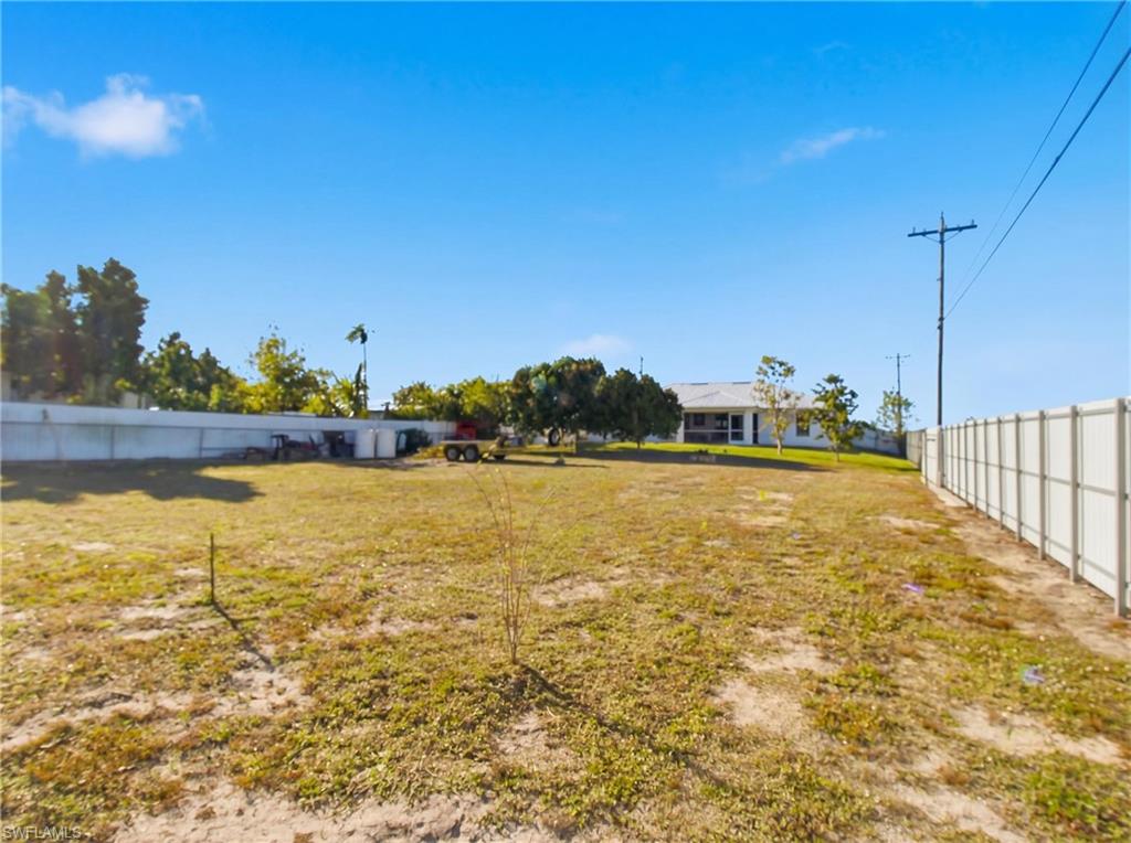 RARE DOUBLE LOT PROPERTY in NW Cape Coral!! Nestled on a generous 0. 50-ACRE LOT, this property offers endless possibilities. Build additional storage, add a guest home, plant fruit trees, or even divide the lot to construct another home and sell it! The main residence is FULLY FENCED with a high-quality, CONCRETE-REINFORCED FENCE, featuring a convenient trailer entry on the side street for easy access. The home boasts a newer METAL roof, completed in 2022, ensuring durability and comfort throughout the year. Inside, you’ll find an open-concept layout with high ceilings and elegant laminate flooring. The master suite is a true retreat, featuring an oversized closet, dual vanities, a luxurious hot tub, and a tiled walk-in shower. The expansive backyard offers privacy and space for all your outdoor needs, complemented by a variety of fruit trees, including soursop and mango. Additional features include a newer AC unit from 2019, a covered screened lanai, a two-car garage, and an underground propane tank connection for a whole-house generator. Located in the sought-after NW Cape Coral area, this home is conveniently close to schools, shopping, and recreational amenities. Don’t miss the opportunity to own this ONE OF A KIND PROPERTY on a OVERSIZED LOT. Schedule your showing today!