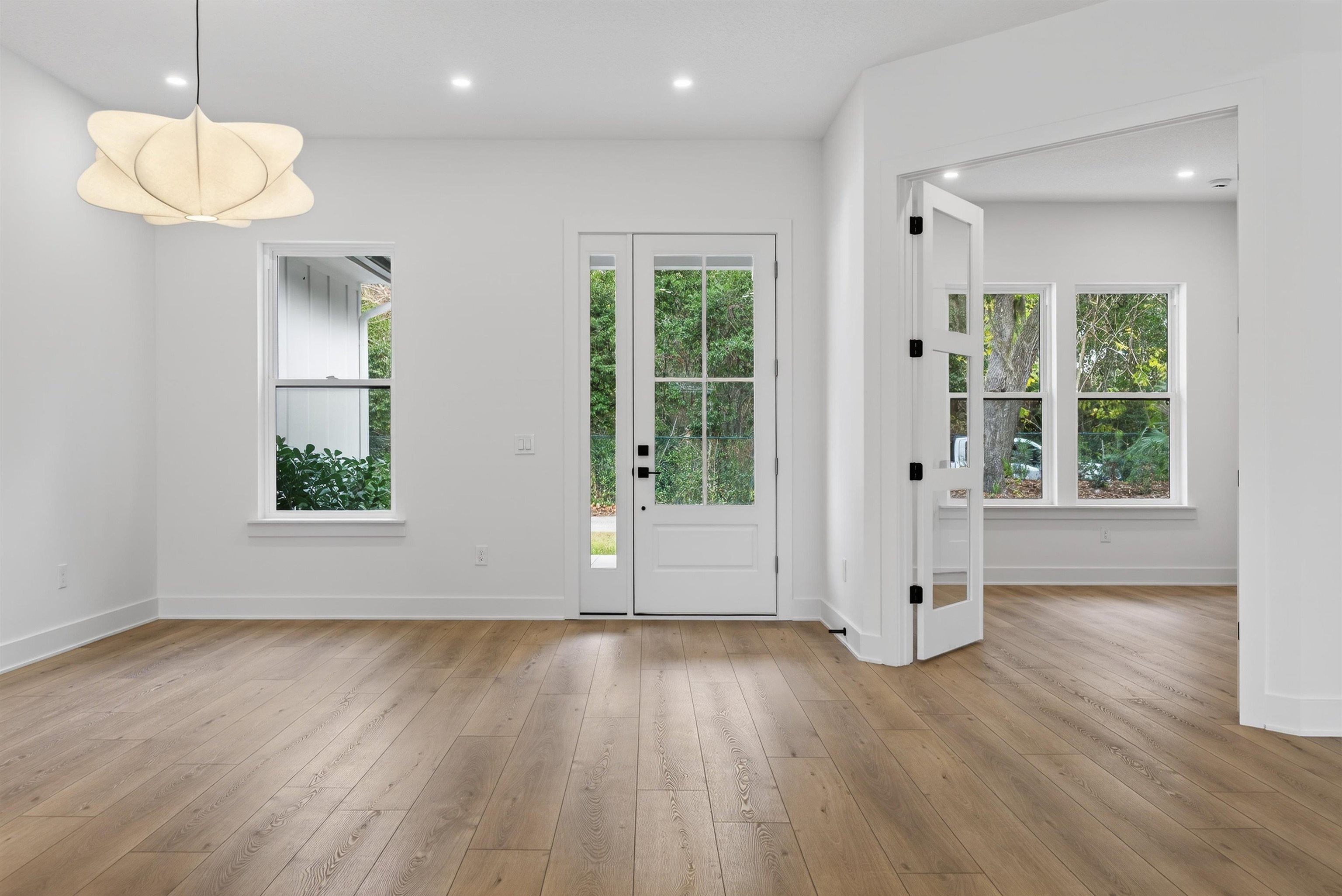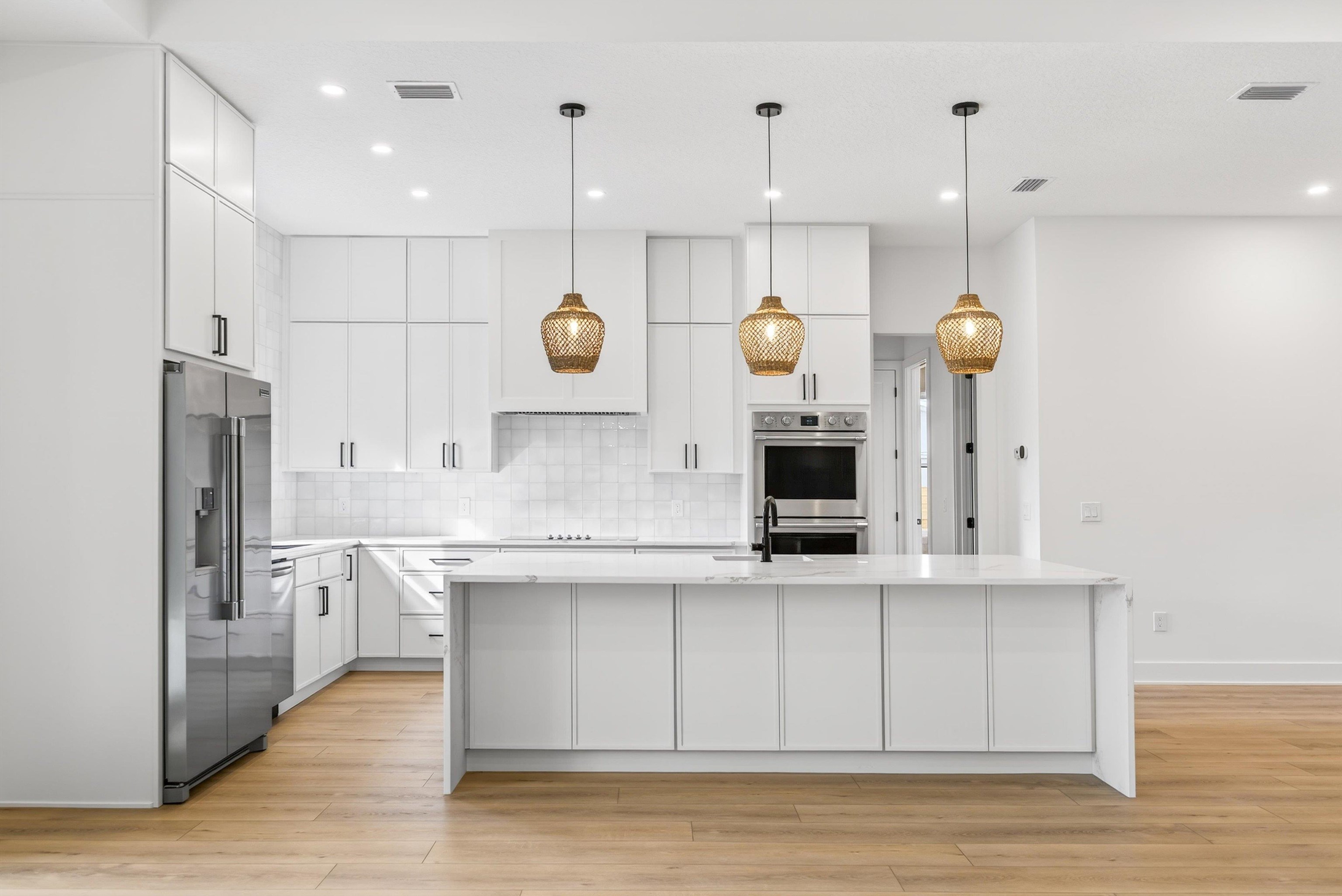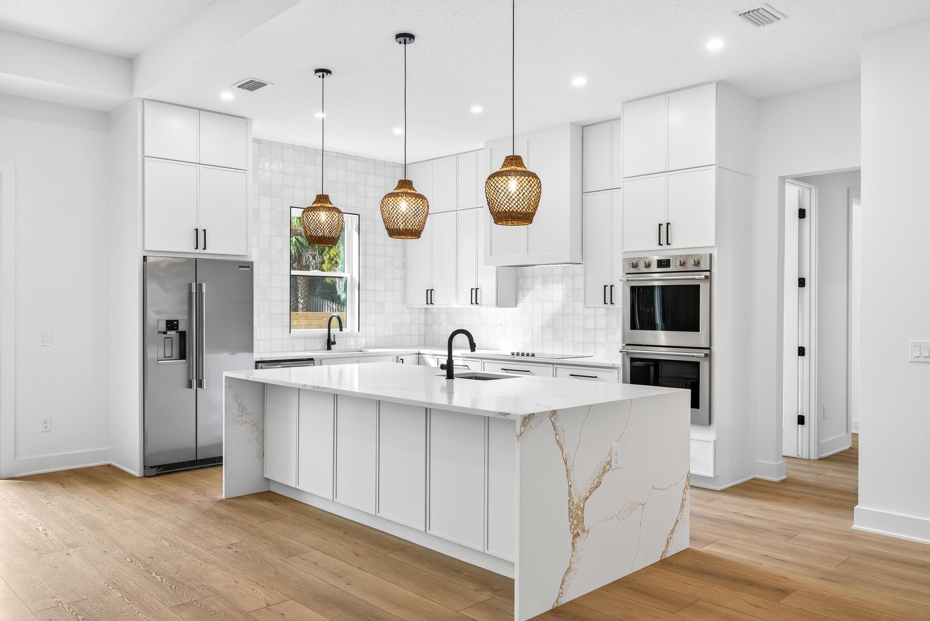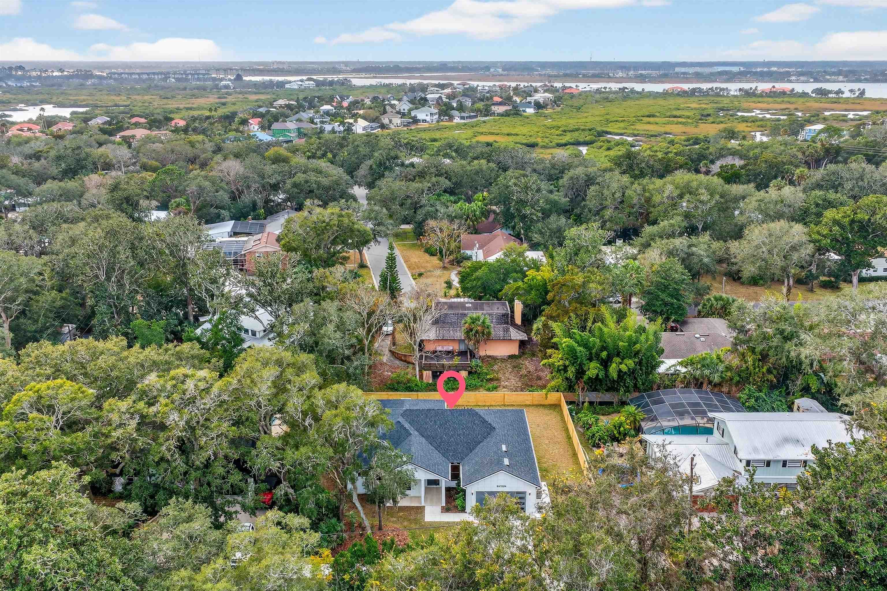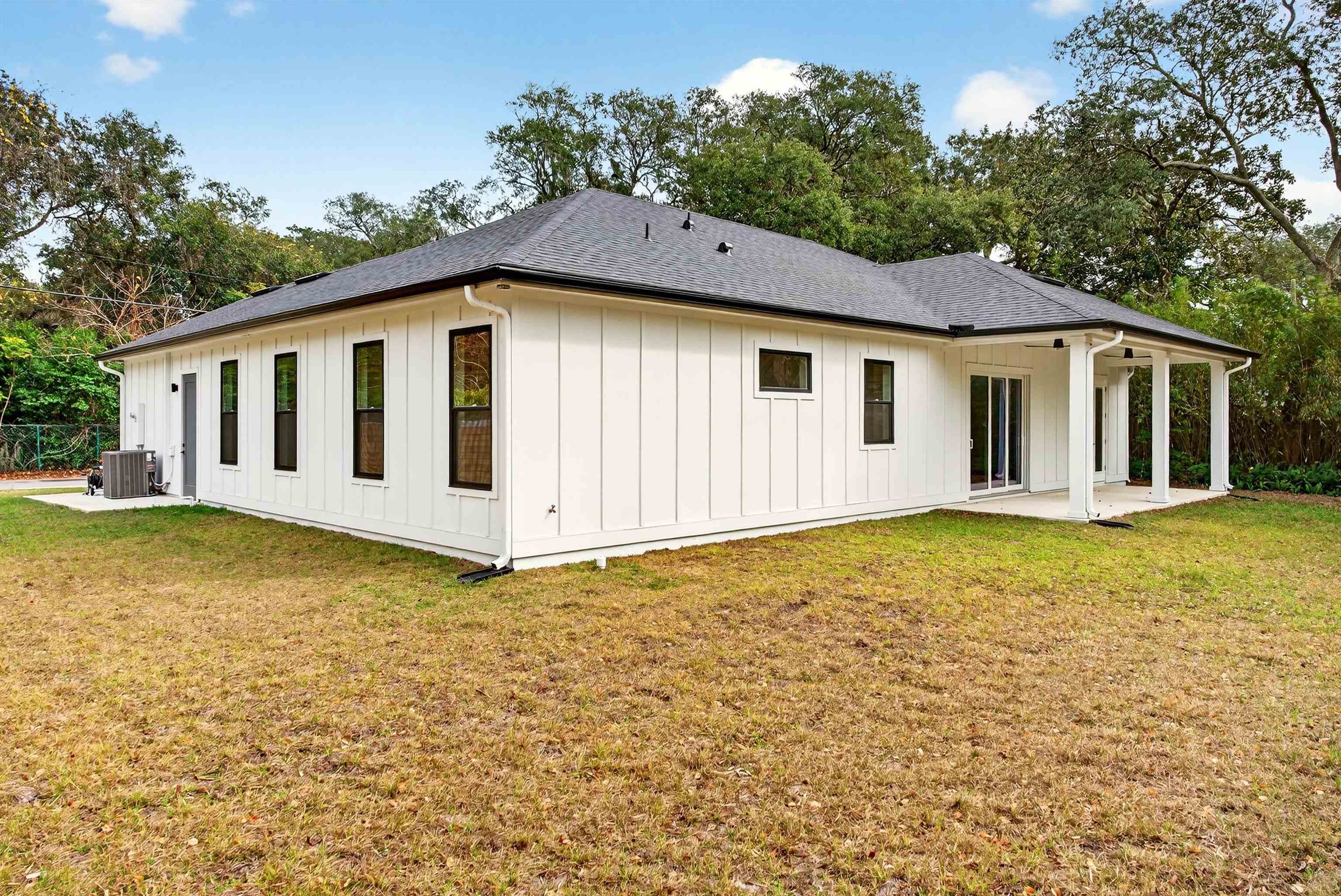 Enjoy hassle-free coastal living in this brand-new, high-quality one-story home on a spacious 100' x 100' lot with no HOA or CDD move-in ready! This 3BR/2BA residence with versatile study featuring closet (optional 4th bedroom) delivers 2, 205 sq ft of living space / 2, 996 sq ft overall. Built tough for FL: 2x6 walls, spray foam insulation, board-and-batten cement siding, charcoal shingle roof. Inside: 10' ceilings, 8' doors, 11' tray ceilings in great room & primary suite. Gourmet kitchen: quartz counters, massive waterfall island w/ prep sink, Frigidaire Professional appliances, double wall oven, wine cooler. Spa primary bath: soaking tub, large shower, dual vanities, 14x7 walk-through closet. Covered lanai, Bahia sod, room for future pool. Just steps to Anastasia State Park beaches/trails & The Amp. Easy access to nature, events, historic downtown without gated restrictions. Rare turnkey gem in prime location. Info deemed reliable but not guaranteed—buyer to verify. Photos enhanced.