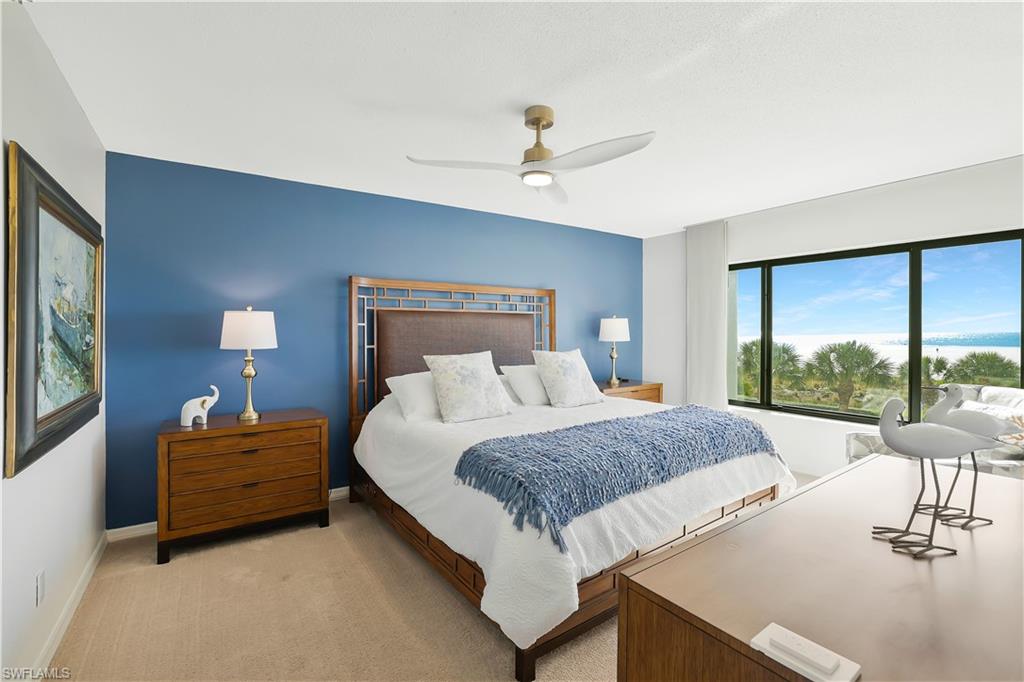 Wake up to full front Gulf of Mexico views and end your days with unforgettable sunsets from the expansive screened lanai of this beautifully updated Gulf-front residence at Crescent Beach. Perfectly positioned in the heart of Marco Island, this desirable location offers close proximity to many of Marco Islands renowned restaurants, while a palm-lined, private drive creates a serene and exclusive arrival experience. Offering 1, 450 square feet under air, this two-bedroom, two-bath residence features a rare and highly desirable advantage—elegant tile flooring in the main living area, permitted due to its unique building location. The open, light-filled floor plan is both welcoming and refined. The kitchen has been thoughtfully updated and highlighted by the quartz countertops and backsplash, a pantry, and is ideal for both casual living and entertaining. In-unit laundry and turnkey furnishings complete the move-in-ready convenience. The primary suite is a tranquil retreat with private lanai access and a beautifully remodeled bath featuring double vanities, a spacious walk-in shower, and custom cabinetry. Assigned covered parking and private storage are included and plenty of guest parking. The pride of ownership is immediately felt, showcased through beautiful décor, attractive new light fixtures, crown molding and carefully curated details throughout. Crescent Beach offers private access to Marco Island’s renowned, sugar-sand beach. Community amenities include a resort-style pool and spa, tennis and pickleball courts, shuffleboard, BBQ area, two fitness rooms, an elegant social room with catering kitchen, and an expansive Gulf-front sundeck.