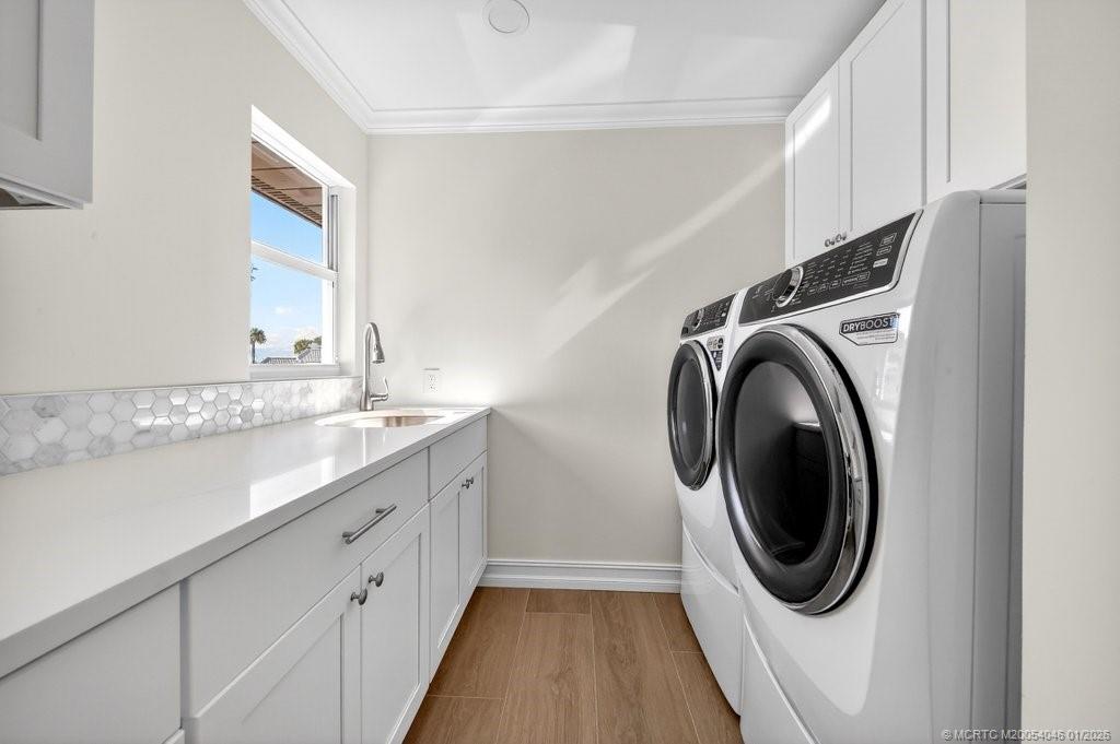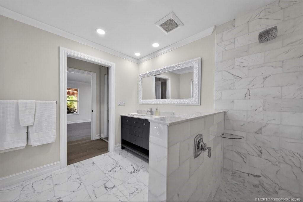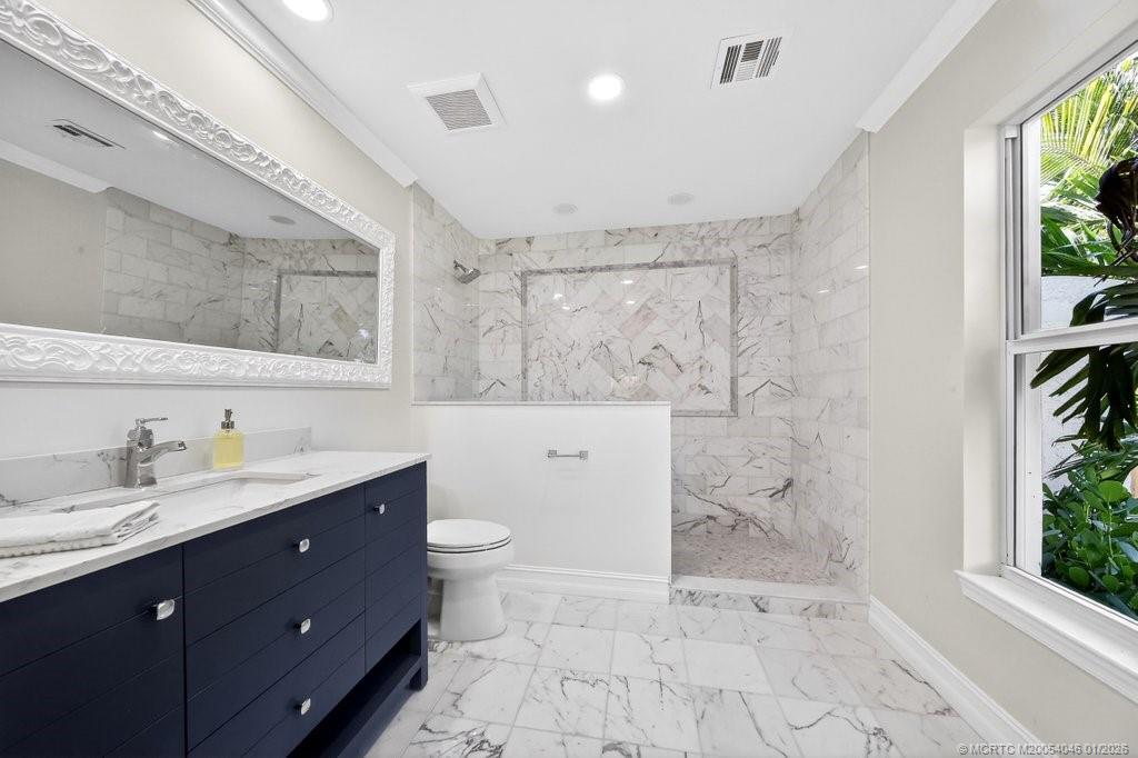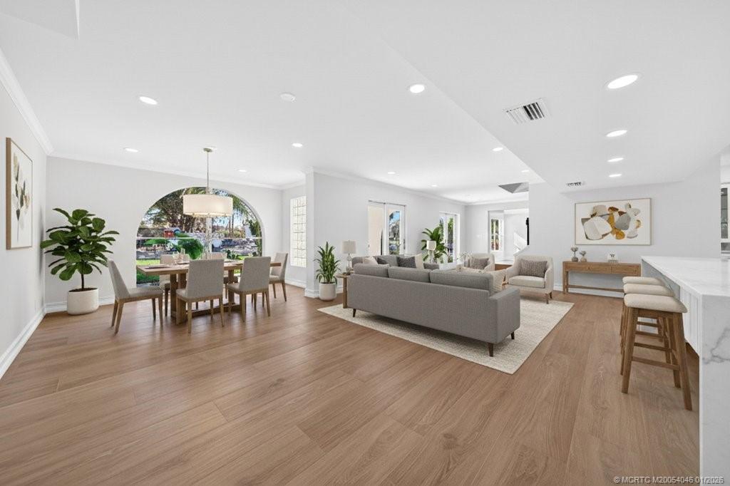 Sewall's Point latest remodel has arrived! Absolutely stunning and truly move-in ready. This exceptional residence has been completely gutted to the studs and thoughtfully reimagined from top to bottom, delivering modern luxury in one of Stuart's most coveted coastal communities. Often called one of Florida's best-kept secrets, Sewall's Point is an exclusive barrier island located just north of Palm Beach, nestled between the St. Lucie River and the Indian River Lagoon in Martin County. Voted Coastal Living's Happiest Seaside Town, the area is a nationally recognized Tree City and Audubon Society-Certified Bird Sanctuary, known for its lush canopy, protected wildlife, and timeless Old Florida charm. Situated in High Point at the island's southern tip, this property enjoys minimal traffic. The two-story, Mizner-inspired concrete block home sits on over half an acre, surrounded by all-new tropical landscaping and outdoor lighting.