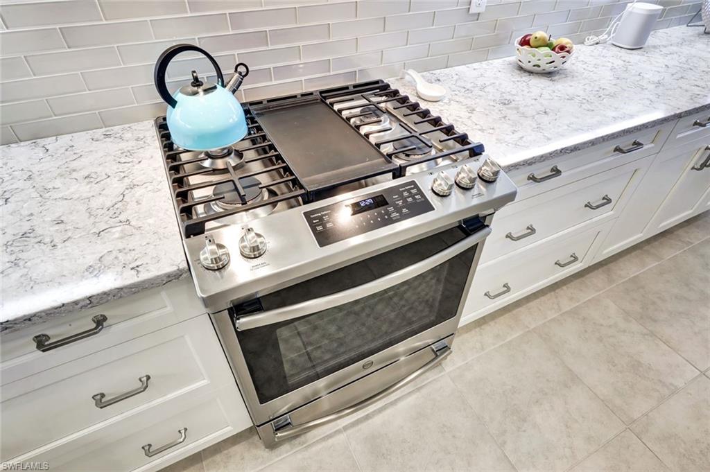 Offered TURNKEY! This tastefully decorated, very popular Chandon plan comes with stunning furniture and accessories. From the moment you enter this home, you are greeted by a light-filled open floor plan that provides 4 bedrooms (or 3+Den) 3 full bathrooms and a 2 car garage. The gourmet kitchen features quartz countertops, glass subway tile backsplash, white raised panel wood cabinets with some pull out drawers, GE stainless steel appliances which includes a natural gas range, large built-in cabinet pantry, above and below lighting & Kinectico RO System for kitchen sink. The spacious living area showcases a custom built-in entertainment center adding both functionality and flair. Throughout the main living areas including the den and primary bedroom, you will find 5 1/4" crown molding along with 18 x 18 tile floors throughout the main living space and den.