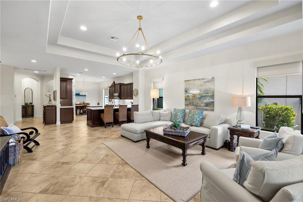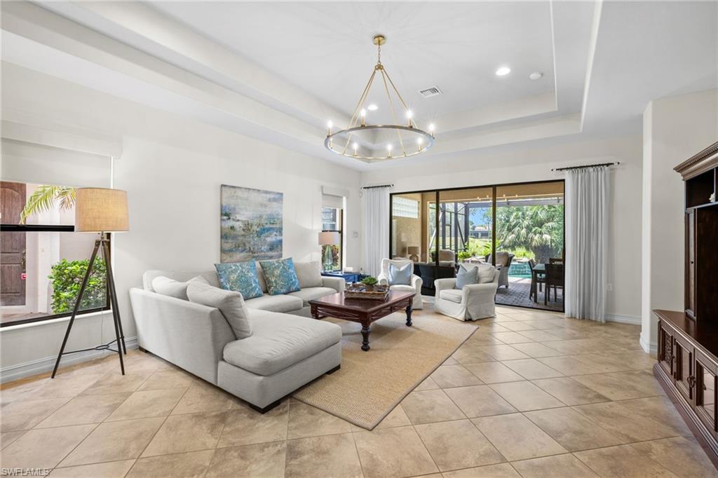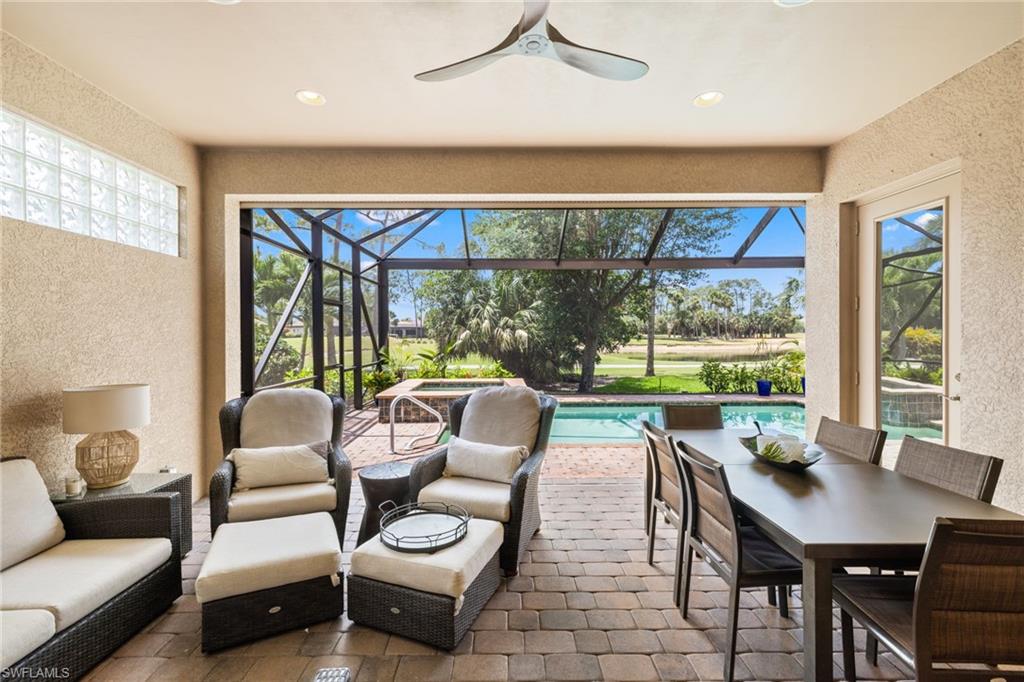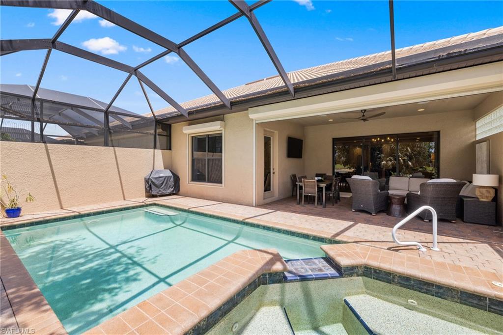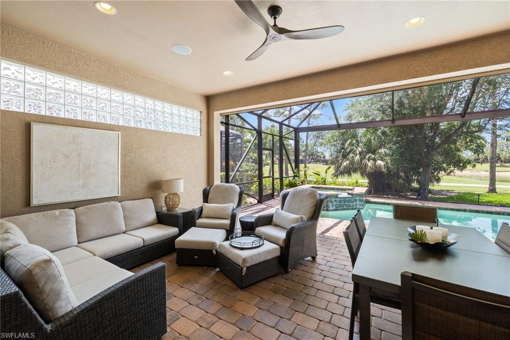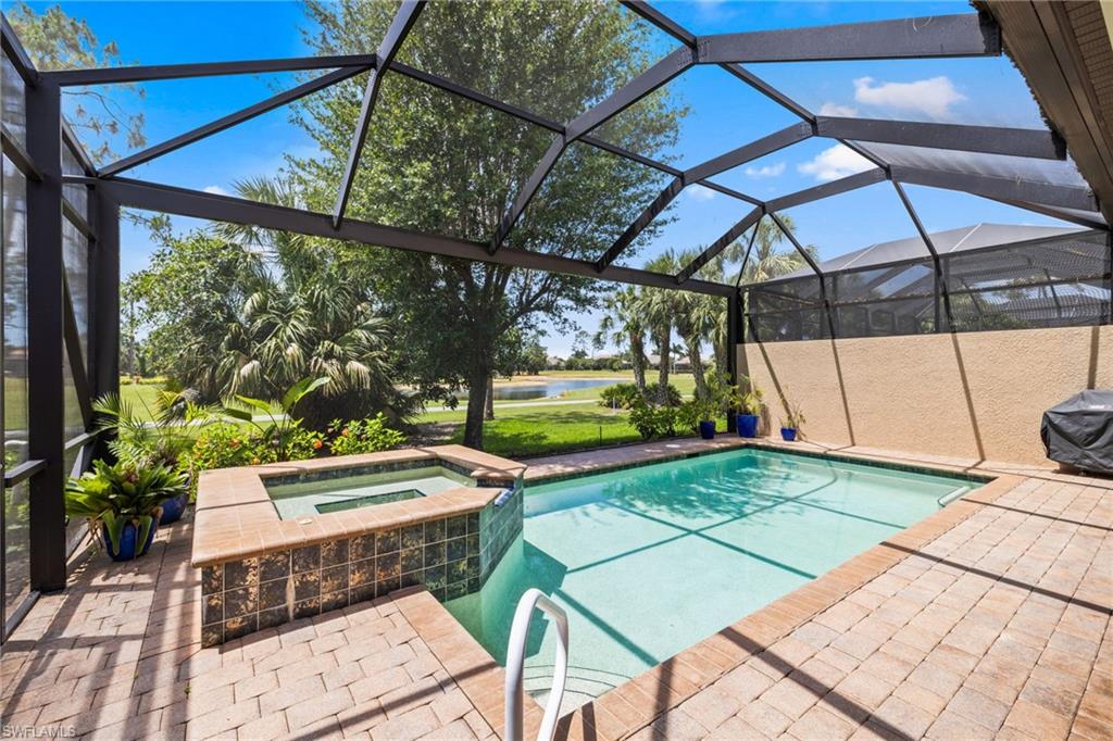 Updated & Move-In Ready Home in the desirable community of Moorgate Point at Lely Resort. This beautifully maintained residence offers a spacious open floor plan that seamlessly connects comfortable indoor living with inviting outdoor spaces, ideal for both entertaining and everyday living. The kitchen was updated in 2022 with sleek quartz countertops, modern hardware, a new sink, and faucet - offering both style and function around a generous island and breakfast bar. A bright breakfast nook and a formal dining room, accented by crown molding and wall trim, provide flexible dining spaces for everyday meals or entertaining. All bedrooms feature durable engineered hardwood flooring, while updated paint, fans and light fixtures throughout the home add a contemporary finish. The private master suite offers a peaceful escape with high tray ceilings, walk-in closets, and added security with power metal storm shutters. Additional roller shutters protect side windows, ensuring comfort and peace of mind. The redesigned lanai is perfect for outdoor living, featuring a resurfaced pool (2021), spa, new picture window screen enclosure (2023), landscape lighting, a mounted TV, and built-in Sonos-connected speakers for relaxing or entertaining guests. Additional upgrades include a new A/C and heating system (2024), water heater (2025), garage air conditioning with added insulation (2022), a new washer and dryer (2023), and concrete corbels (2023) for lasting exterior durability. Residents enjoy exclusive access to The Players Club with resort-style amenities: three pools, tennis, bocce, pickleball, on-site dining, and a tiki bar. Golfers will appreciate nearby access to one private and two public courses. Conveniently located near Naples and Marco Island, this move-in ready home offers modern updates, thoughtful features, and a prime location close to beaches, shopping, dining, and entertainment.