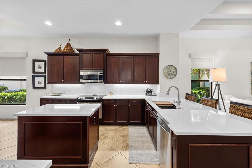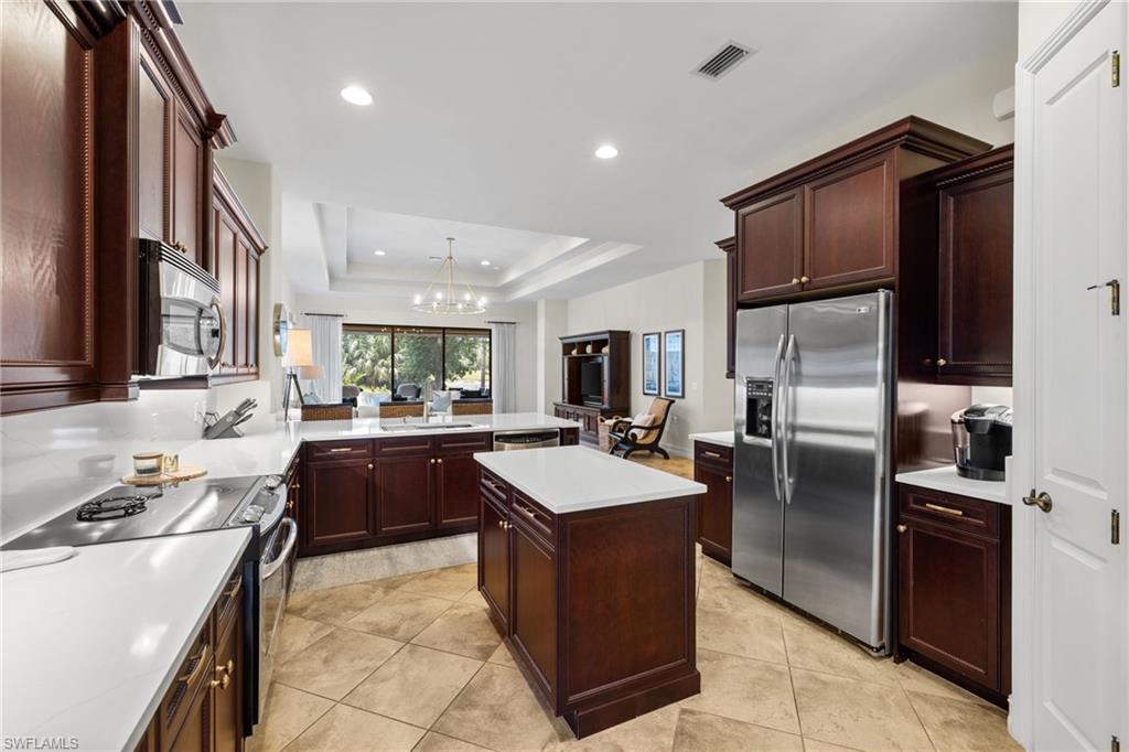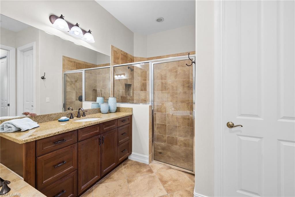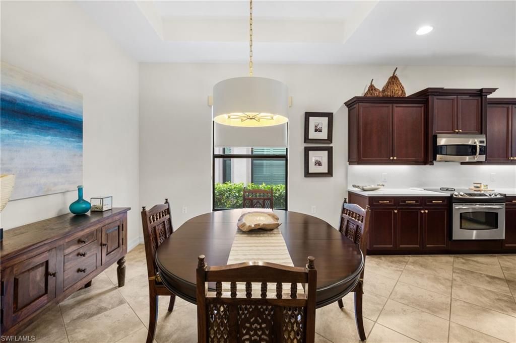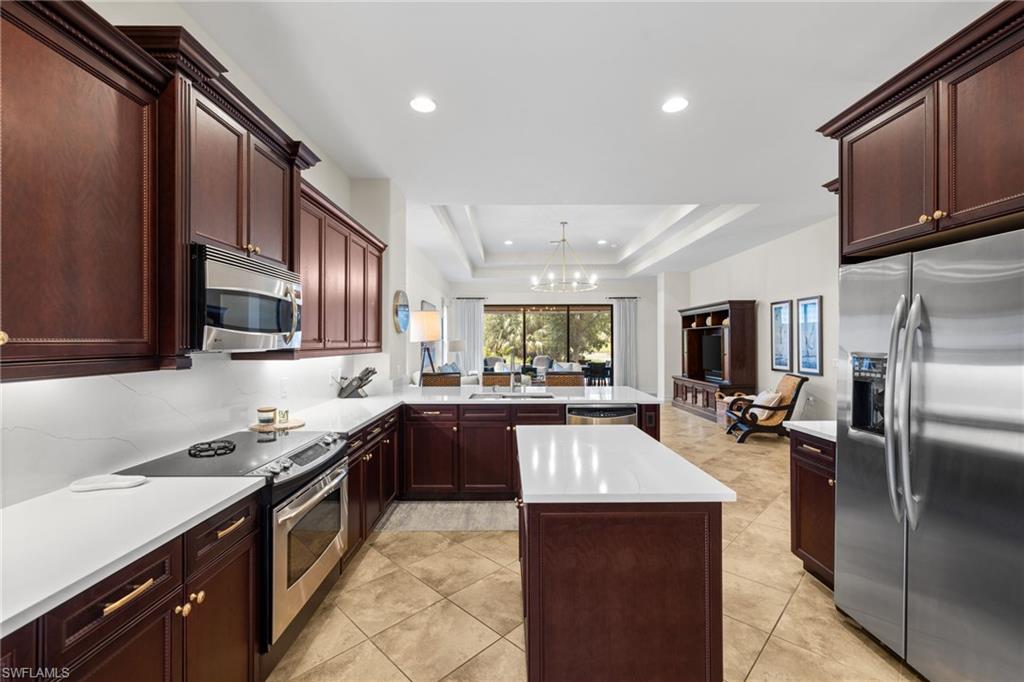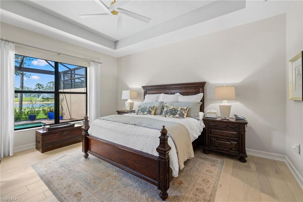 Updated & Move-In Ready Home in the desirable community of Moorgate Point at Lely Resort. This beautifully maintained residence offers a spacious open floor plan that seamlessly connects comfortable indoor living with inviting outdoor spaces, ideal for both entertaining and everyday living. The kitchen was updated in 2022 with sleek quartz countertops, modern hardware, a new sink, and faucet - offering both style and function around a generous island and breakfast bar. A bright breakfast nook and a formal dining room, accented by crown molding and wall trim, provide flexible dining spaces for everyday meals or entertaining. All bedrooms feature durable engineered hardwood flooring, while updated paint, fans and light fixtures throughout the home add a contemporary finish. The private master suite offers a peaceful escape with high tray ceilings, walk-in closets, and added security with power metal storm shutters. Additional roller shutters protect side windows, ensuring comfort and peace of mind. The redesigned lanai is perfect for outdoor living, featuring a resurfaced pool (2021), spa, new picture window screen enclosure (2023), landscape lighting, a mounted TV, and built-in Sonos-connected speakers for relaxing or entertaining guests. Additional upgrades include a new A/C and heating system (2024), water heater (2025), garage air conditioning with added insulation (2022), a new washer and dryer (2023), and concrete corbels (2023) for lasting exterior durability. Residents enjoy exclusive access to The Players Club with resort-style amenities: three pools, tennis, bocce, pickleball, on-site dining, and a tiki bar. Golfers will appreciate nearby access to one private and two public courses. Conveniently located near Naples and Marco Island, this move-in ready home offers modern updates, thoughtful features, and a prime location close to beaches, shopping, dining, and entertainment.