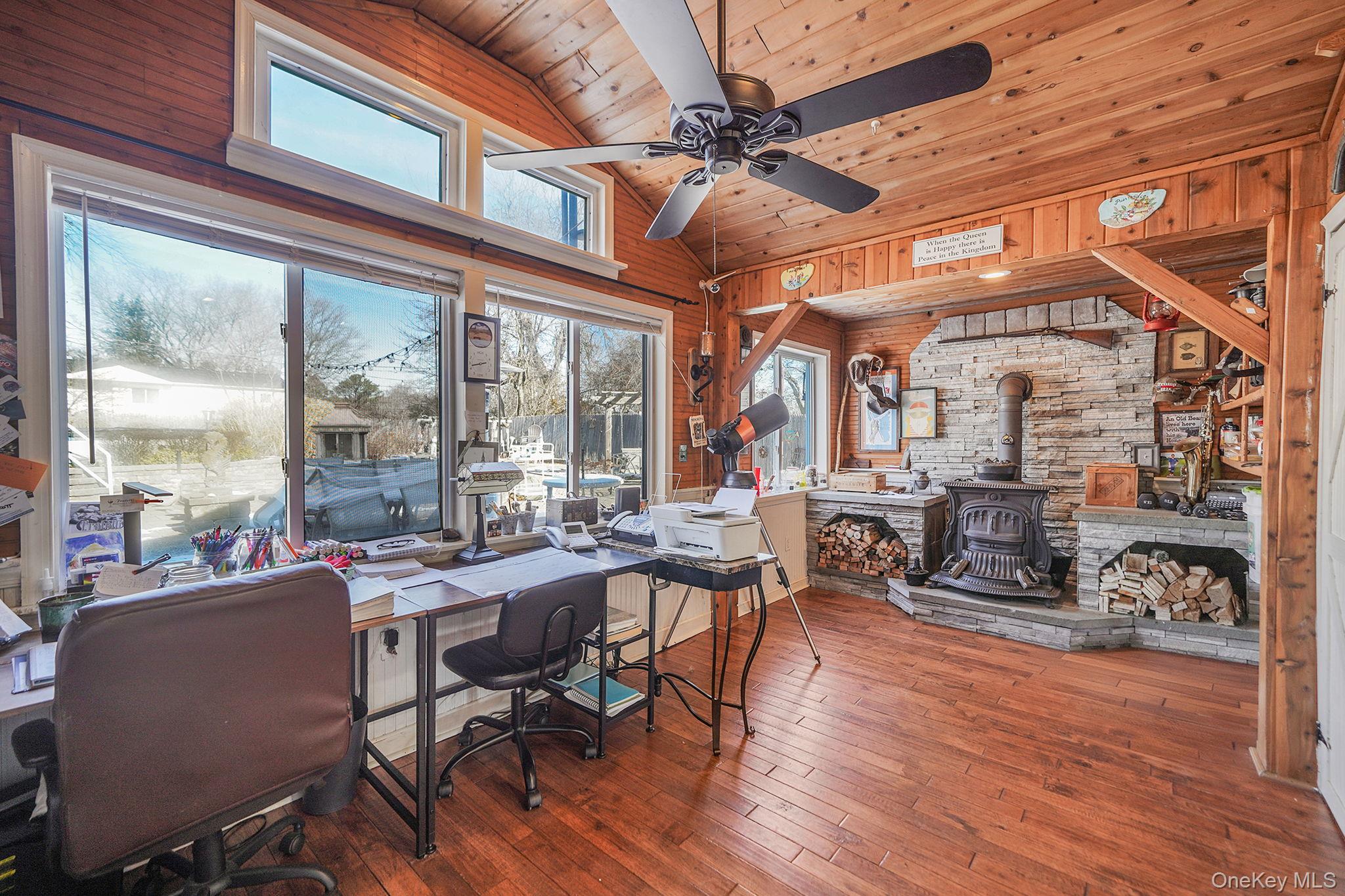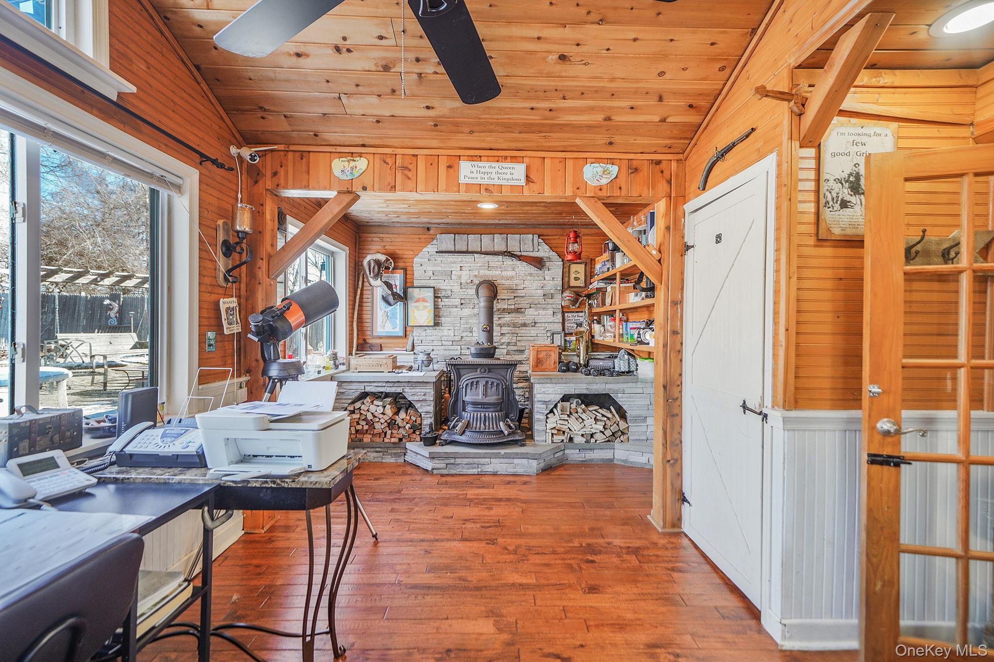 If you’ve never felt the love the moment you walked into a home, you will when you come see 15 18th Ave! A truly special home filled with charm and soul, this inviting 2/3 bedroom ranch showcases beautiful custom wood paneling, rich details, and a cozy, welcoming atmosphere throughout. The bright living room offers HW floors, a coat closet and flows seamlessly into a formal dining room highlighted by a bay window—perfect for everyday living or hosting gatherings. An cozy breakfast nook with a rounded archway adds storybook charm, leading into your kitchen featuring ample cabinetry, a brand-new butcher block countertop, a new Samsung refrigerator, and gas cooking. The primary bedroom is a serene retreat with vaulted ceilings, front-to-back windows that fill the space with natural light, and three generous closets. A rear den with vaulted ceilings and a beautiful wood burning fireplace provides flexible living space—ideal as a guest suite, home office, or cozy lounge—while offering views of the incredible entertainer’s backyard! The full bathroom features vintage-inspired beadboard walls and classic finishes, while the walk-in shower features custom wood accents, tiled walls, and a pebble stone floor. Step outside to your own private oasis complete with a fire pit, above-ground pool, hot tub, beautiful gardens, and plenty of space to relax or entertain under the stars. This is a home where memories are made, love is felt, and every detail tells a story!