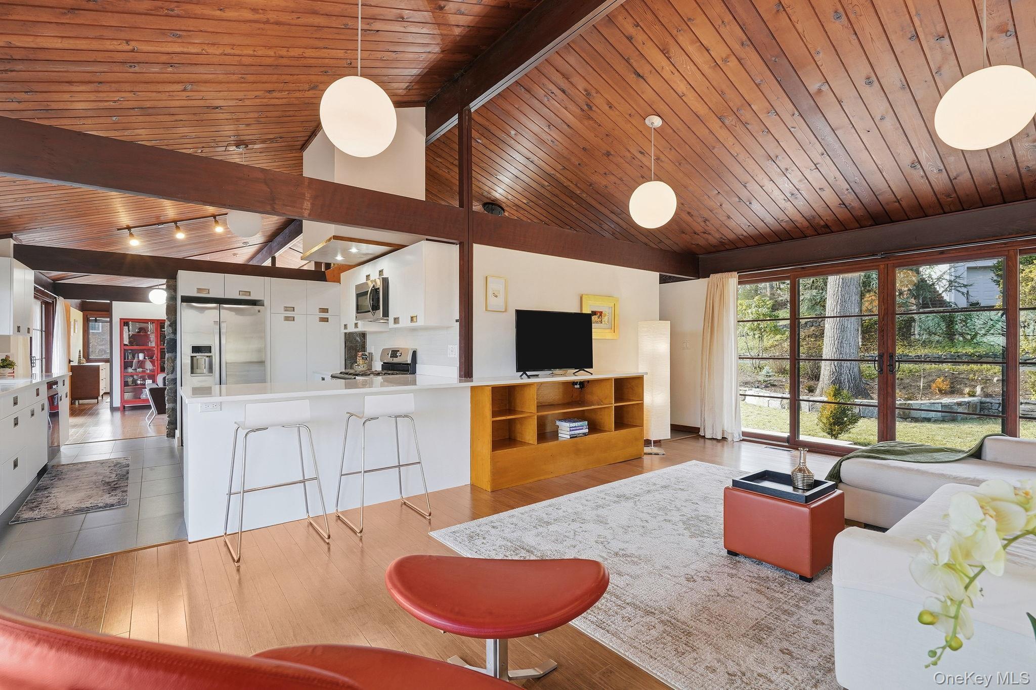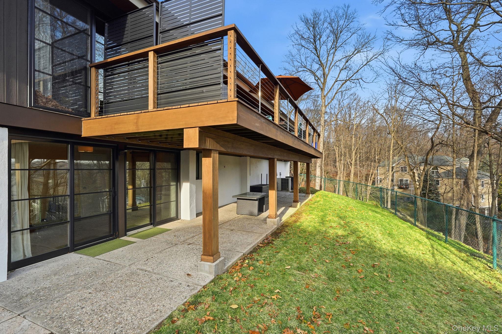 Welcome to 16 Park Hill Terrace - a rare opportunity to lease an architectural gem that blends timeless design and modern luxury! This striking mid-century style home is quietly set within the established Dobbs Ferry neighborhood of Hilltop Park. Thoughtfully updated with exceptional attention to detail, its low-slung classic reveals a sophisticated interior that exceeds its more modest exterior. The spacious first floor features an updated kitchen, two living spaces, two large bedrooms with en-suite bathrooms, and a convenient powder room - with finishes including a curated palette of quartz, stainless steel, lacquered surfaces, and bamboo flooring. A statement stone fireplace anchors the main living space, creating a warm yet modern focal point. The expansive floor-to-ceiling glass doors on both the front and back blur the line between indoors and out, flooding the home with natural light and framing tranquil woodland views. A large deck, accessible from both living rooms and overlooking the woods, extends the experience outdoors and makes entertaining a breeze. The lower level features a third large bedroom with a private exit to the garden, a full bathroom with a double vanity and a walk-in closet, a convenient laundry room, a rec room, and an additional, flexible, sun-filled space ideal for a home office, studio, or fitness room that seamlessly opens to an outdoor back patio. Tenants will enjoy ample storage and cabinet space throughout the house. This contemporary home is set next to the Juhring Estate Nature Preserve, offering privacy and a rare connection to nature, while remaining moments from Metro-North, village shops, dining, and the Ardsley schools. A short 35-minute drive to Grand Central! Rent includes water and landscaping.