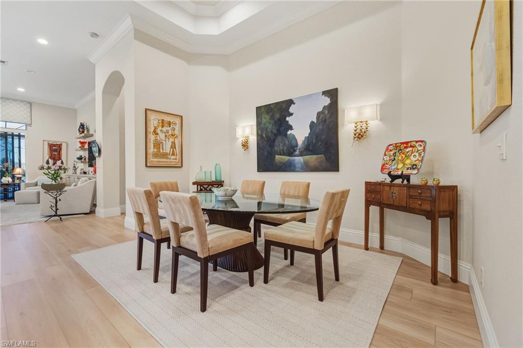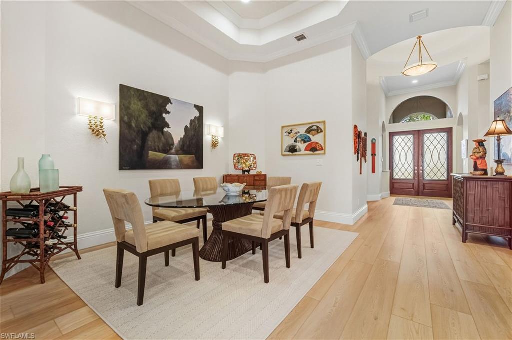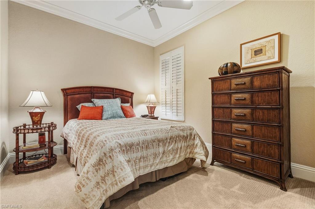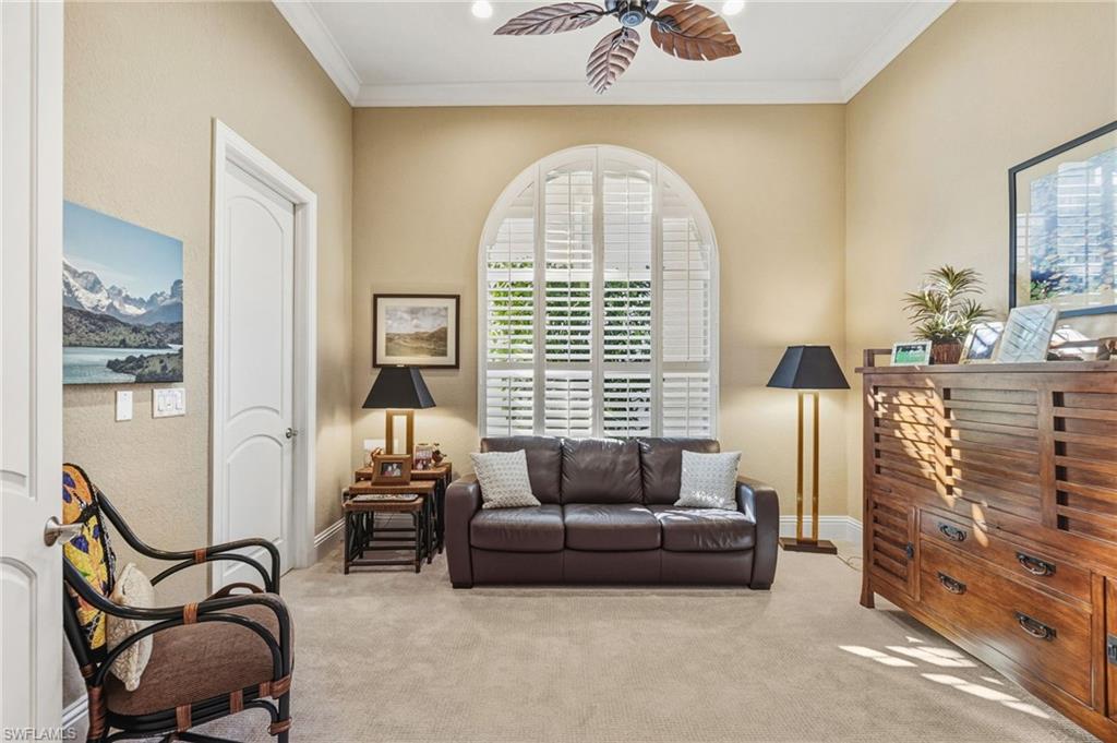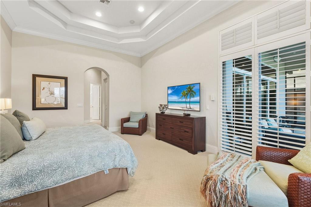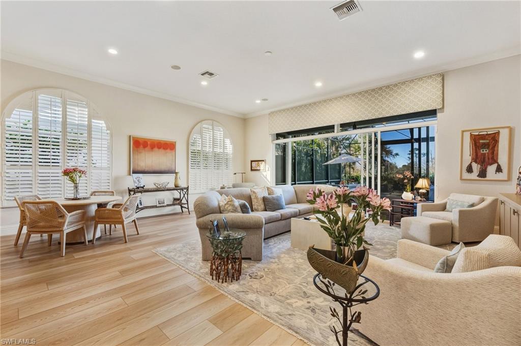 Skip the waitlist and step right into the West Bay Club lifestyle with this exceptional Riviera floorplan home in Nature’s Cove, complete with an immediate transferable golf membership. This beautifully appointed residence welcomes you through dramatic dual wooden entry doors with wrought iron detail into a light-filled, open-concept living space accented by soaring ceilings and refined, neutral finishes. The home offers three bedrooms, three full baths, a dedicated den that doubles as a fourth bedroom, a spacious two-car garage, and a NEWER roof (2022). Plus a bonus room offering flexible space for a home office or media room. Luxury LVP flooring flows throughout the main living areas, while the chef’s kitchen features custom European-style cabinetry, quartz countertops, high-end stainless steel appliances, dedicated wine undercounter wine refrigerator, and a natural gas cooktop—perfectly blending style and functionality. Crown molding, upscale lighting, designer fans, and thoughtfully selected finishes complete the refined interior. The fully reimagined primary bath serves as a private retreat with modern custom cabinetry, dual vanities with quartz countertops, premium fixtures, stand-alone soaking tub, and a large seamless glass-enclosed shower. Practical upgrades include Armor Screen hurricane shutters, flood barriers, two new air-conditioning systems (both compressors and condensers), and a newer hot water heater. The roof was replaced just three years ago, offering added peace of mind. Outdoor living is equally impressive. Enjoy stunning western facing lake and golf course views from the lanai, highlighted by a resurfaced pool with new pool heater, beautiful new pool deck, and a picture window screen on the pool cage. Generous lounging and dining areas create the ideal setting for year-round Florida entertaining. Professionally installed landscape lighting enhances both the front and rear of the home, adding beauty and ambiance after sunset. Located within the gated West Bay Club, residents enjoy an unparalleled array of amenities, including a newly built private Gulf-front Beach Club with restaurant and bar, the renovated Bay House with resort-style pool and Aqua Café, fitness center with yoga and Pilates studios, six pickleball courts, eight Har-Tru clay tennis courts, bocce courts, basketball, two dog parks, a boat launch with access to Estero Bay and the Gulf, boat storage, and a private 18-hole Pete & P. B. Dye-designed championship golf course. Ideally situated west of U. S. 41 and close to world-class shopping and dining, FGCU, Hertz Arena, and just 15 minutes from RSW International Airport, this home presents an exceptional opportunity to enjoy the best of Southwest Florida living—whether as a full-time residence or a seasonal retreat.