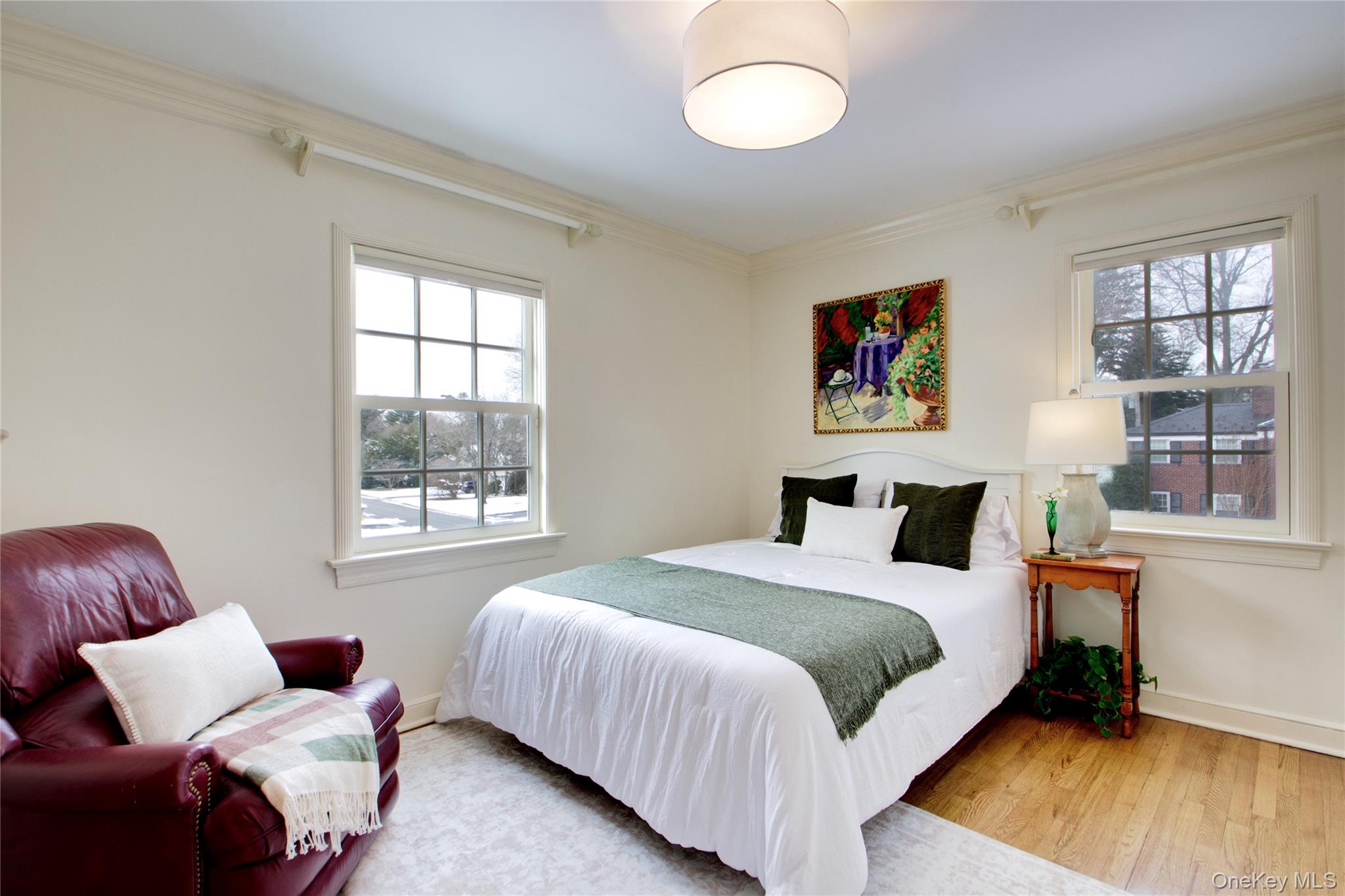 Space, light, and privacy—on one of Munsey Park’s most peaceful streets. Well-proportioned 4-bedroom, 2. 5-bath brick and shingle Colonial offering generous bedroom and living spaces designed for both everyday living and entertaining. The large eat-in kitchen features high-end appliances, granite countertops, and a center island, and is adjacent to a spacious family room with large windows throughout, French doors to the rear yard, a gas fireplace, and high-quality custom woodwork and built-ins. A large formal dining room provides the perfect setting for holidays and special gatherings. The bespoke primary suite is a standout, with beautifully crafted built-ins and an updated primary bath with double sinks. The hall bath and powder room have also been updated. West-facing exposure fills the home with warm natural light throughout the day. Outside, a super private, landscaped yard, hedged patio, and covered porch offer inviting outdoor spaces, with the porch providing potential for office or flex use. A two-car garage completes the property. An ideal home for a buyer prioritizing space, light, and privacy in the beautiful village of Munsey Park, close to Waldmann Memorial Park and Munsey Park Elementary School.