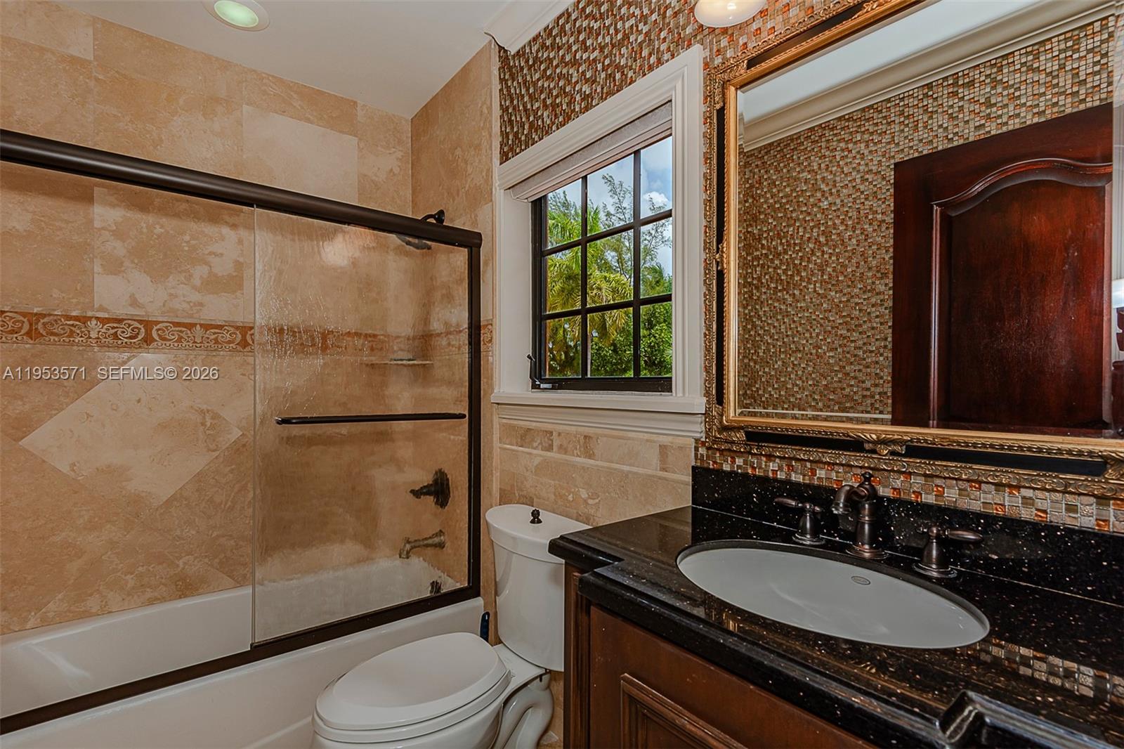 This gorgeous house is just across the ocean in the prestigious private neighborhood of Golden Beach. This impressive Mediterranean 2-story mansion with 6 bedrooms and 4 1/2 baths (over 5, 700SF) was fully renovated to the highest standards. Smart interior floor plans start on the ground level: a spacious kitchen, a large laundry room, a formal dining area, a living room, additional 1 bedroom on the ground level (great for a live-in maid or a teenager) with the convenient access to the private pool, backyard and barbecue area. There are 2 bedrooms downstairs (plus one additional bedroom for office or maid) and 4 bedrooms upstairs. 2-car garage. Golden Beach community provides full security, a private beach, 2 tennis courts, basketball and volleyball courts, a children playground.