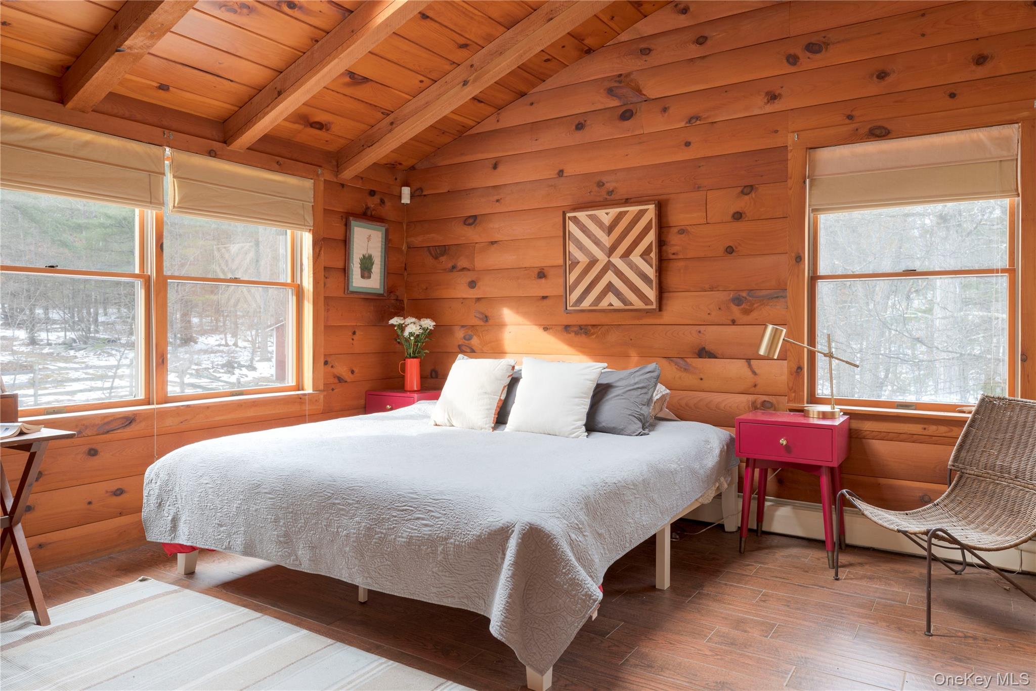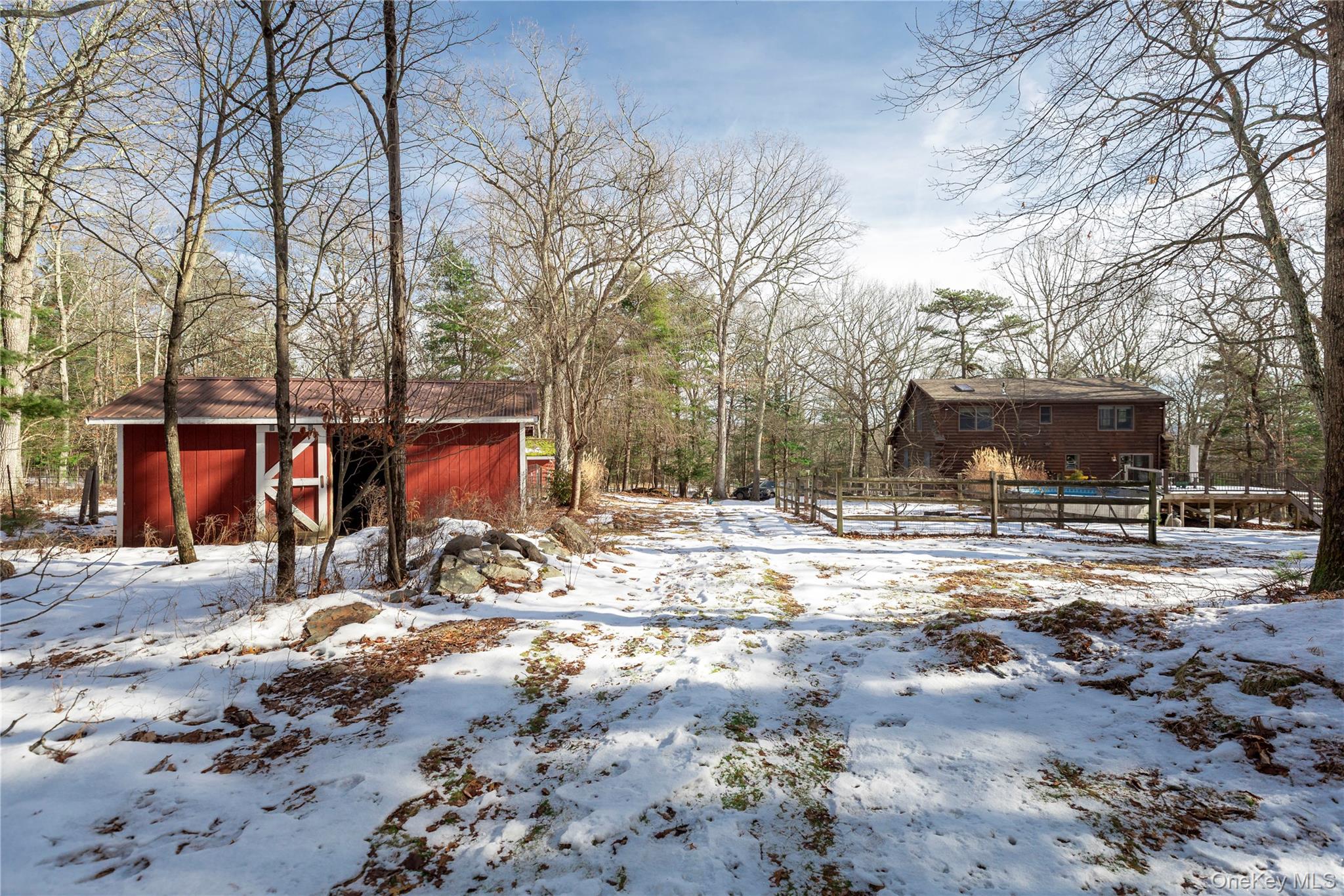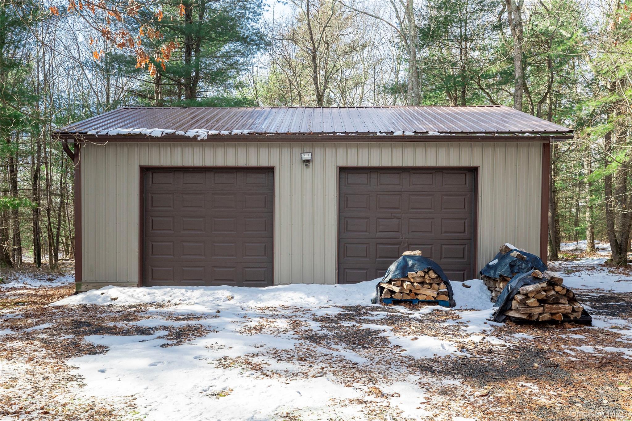 Perched atop a scenic country road, this bright and welcoming log cabin retreat rests on 5 wooded acres, full of classic Catskills charm. Private, peaceful, and practical, 343 Decker Road feels like the country escape you’ve been waiting for—complete with a charming covered front porch, perfect for taking a moment to enjoy the surrounding woods. The main level offers an open layout with double-height ceilings, two comfortable bedrooms, and a renovated full bathroom. Upstairs, a large, airy loft area leads to the primary bedroom with en suite bath and walk-in closet. Downstairs, the finished basement provides excellent additional living/ recreational space, including another flex room ideal for guests, a home office, or studio. Outside, enjoy a two-level deck, cozy fire pit, and plenty of room for gardening or homesteading. The property also features a shed, a generator, a large detached two-car garage with electric, and a two-stall barn—perfect for chickens! The home also has a new roof, added in 2022. Set in a bucolic, rural setting, just outside of town, with so many ways to enjoy the surrounding nature hot spots like the Rio Reservoir and Delaware River. Just 20 minutes to the beloved Barryville Farmers Market, 15 minutes to the Port Jervis Metro-North station, and 90 mins to the GWB and NYC—this is relaxed country living with convenience close at hand.