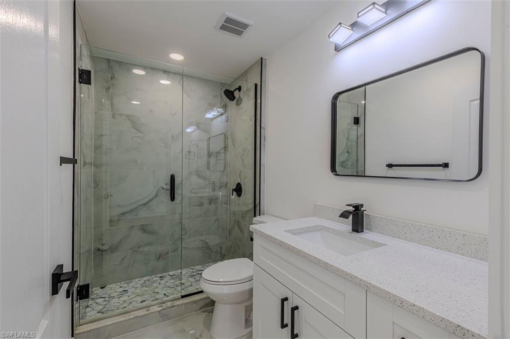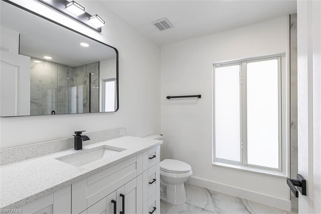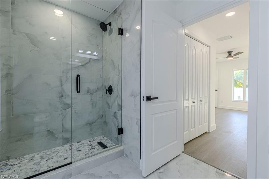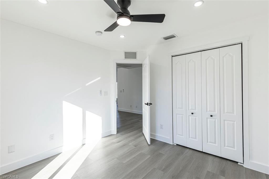 This move-in-ready home features impact-resistant windows and doors, 2023 roof, elegant quartz countertops, and luxury vinyl plank flooring throughout, combining durability with modern style. The spacious primary bedroom includes a walk-in closet, providing ample storage and comfort.