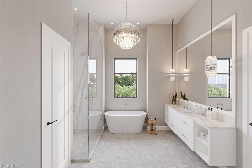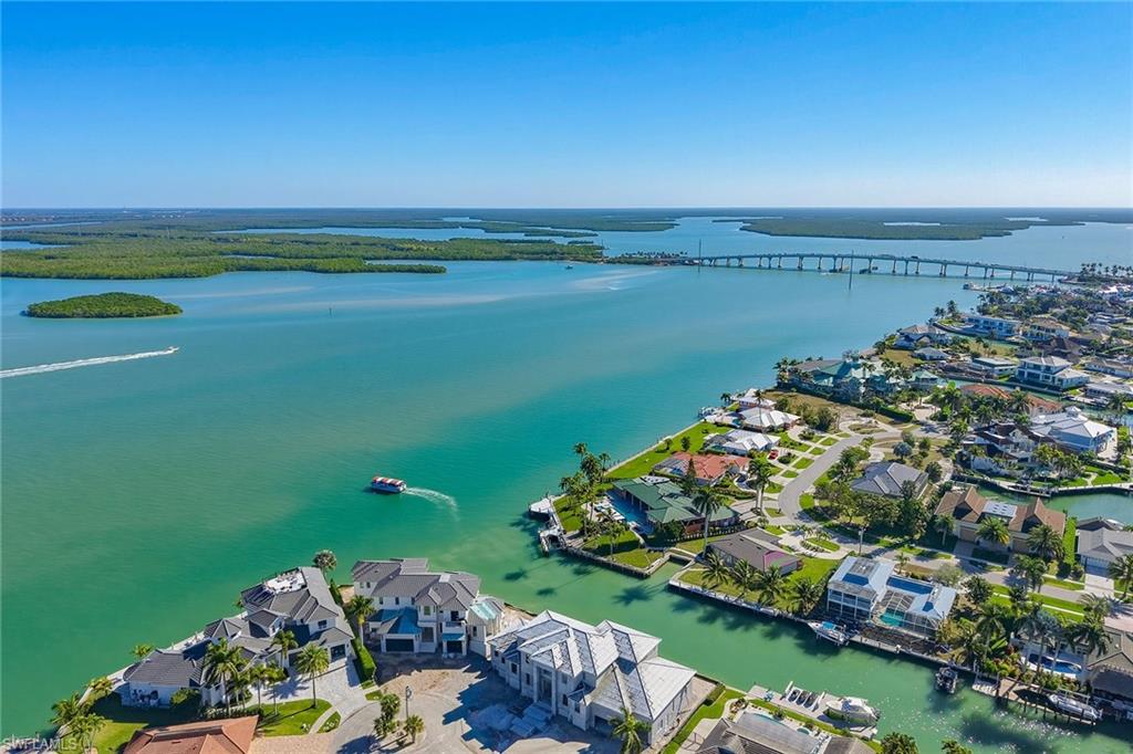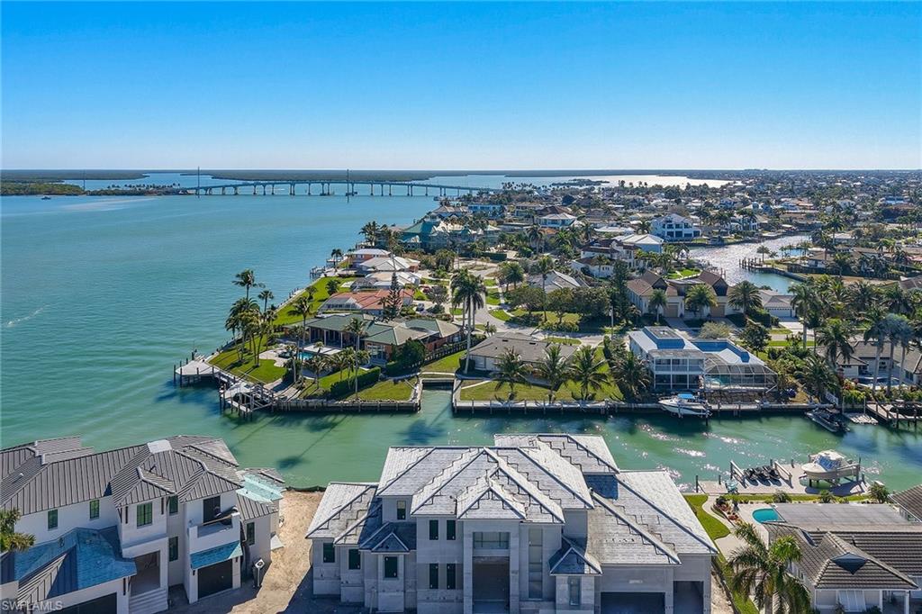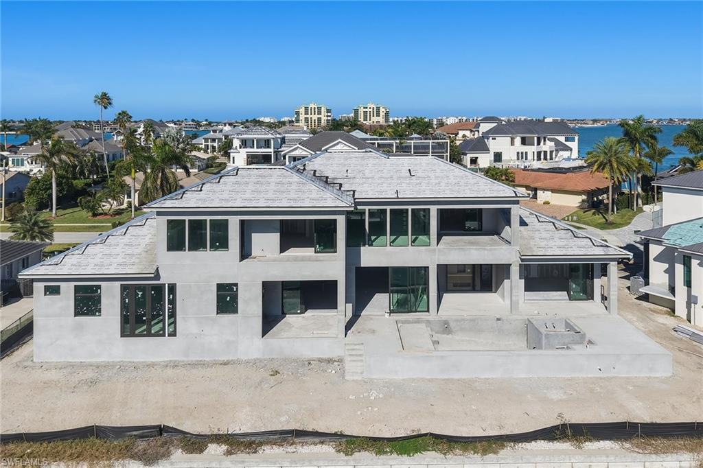 This stunning modern waterfront estate is under construction with an estimated completion in summer 2026, offering spectacular, expansive river views, 136 feet of waterfront, and exceptionally quick, direct boating access to the Gulf with no long idle zones. Crafted by highly regarded luxury builder Lusso Builders, this luxury home showcases exquisite quality and striking contemporary architecture defined by a dark charcoal slate roof, bronze glass-paneled garage doors, sunset silver stacked stone accents, and a dramatic Suncoast iron entry door that sets the tone for its elevated coastal aesthetic. Clean architectural lines, expansive walls of glass, and thoughtfully curated finishes flood the interiors with natural light while perfectly framing panoramic water views and creating a seamless connection between indoor and outdoor living spaces. The expansive and thoughtfully designed floor plan includes five bedrooms plus a den, six full baths, two additional half baths, and a three-car garage, offering exceptional flexibility, privacy, and comfort for both owners and guests. Main living areas feature 24-by-48-inch porcelain tile flooring, high-reflective ceilings, and a striking 60-inch bespoke smart fireplace anchoring the great room and enhancing the home’s modern elegance. Handmade Amish cabinetry is featured throughout the residence and paired with Brizo plumbing fixtures, designer hardware, and a refined palette of soft neutrals and warm wood tones for a timeless yet contemporary feel. The chef’s kitchen is both beautiful and highly functional, showcasing quartz countertops, decorator white cabinetry with cashew-tone accents, a custom Amish-crafted hood with ZLINE insert, and premium appliances including a Wolf eight-burner dual-fuel range, Sub-Zero cabinet-ready refrigerator, Bosch dishwasher and Sapphire ice maker, while a fully equipped butler’s pantry provides additional prep, storage, and refrigeration with Fisher & Paykel appliances and statement tile backsplash details. Designed for effortless entertaining, the kitchen and main living areas open to expansive outdoor living spaces highlighted by a resort-style pool and spa finished in Aura Nude Blend tile, a porcelain-tiled lanai, an outdoor smart fireplace clad in sunset silver stacked stone, and a fully appointed outdoor kitchen with stone countertops and backsplash, Coyote grill with insulated jacket, Sapphire beverage refrigeration and ice maker, and slate gray cabinetry, ideal for alfresco dining and sunset gatherings along water’s edge. Primary suites and guest accommodations are designed as private retreats featuring spa-inspired baths with marble-style surfaces, freestanding soaking tubs, custom cabinetry, and carefully selected tile and stone finishes that elevate everyday living, all ideally on Marco Island just minutes from fine dining, boutique shopping, executive airport and the island’s white sand beaches. Some photos have been virtually enhanced.