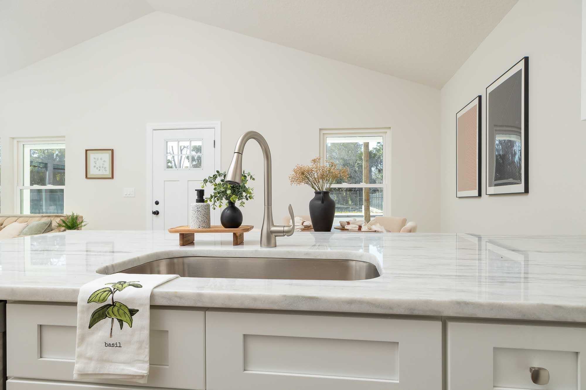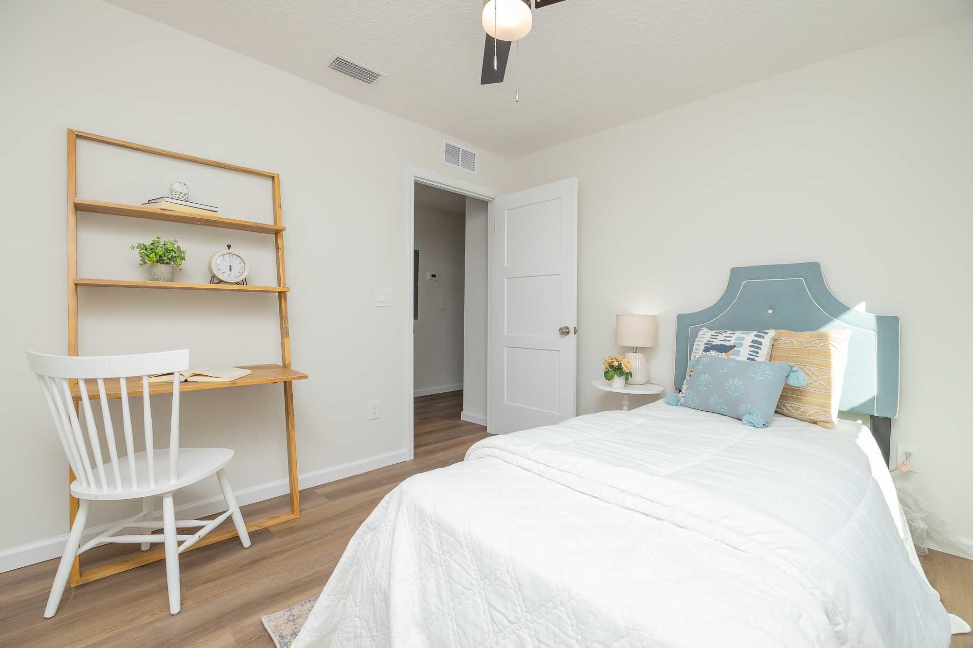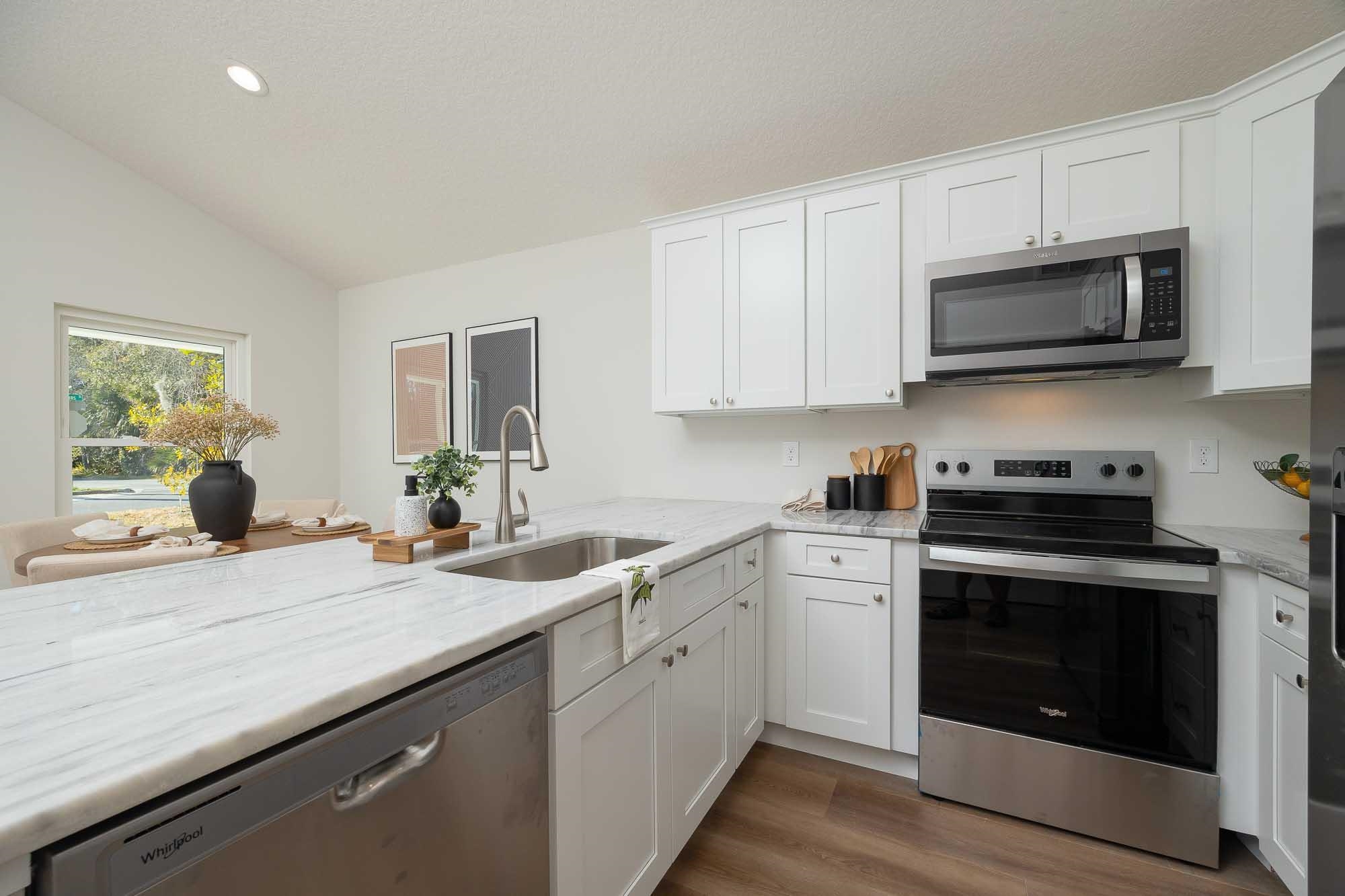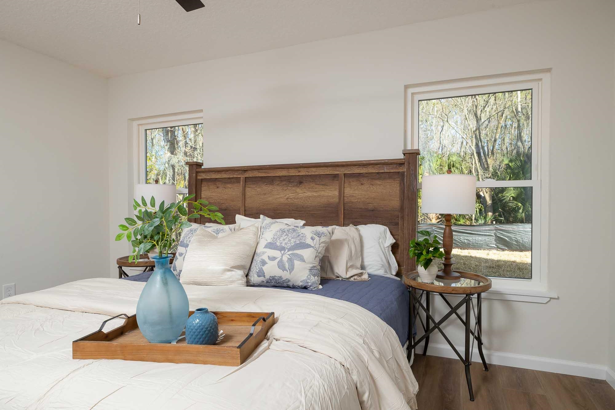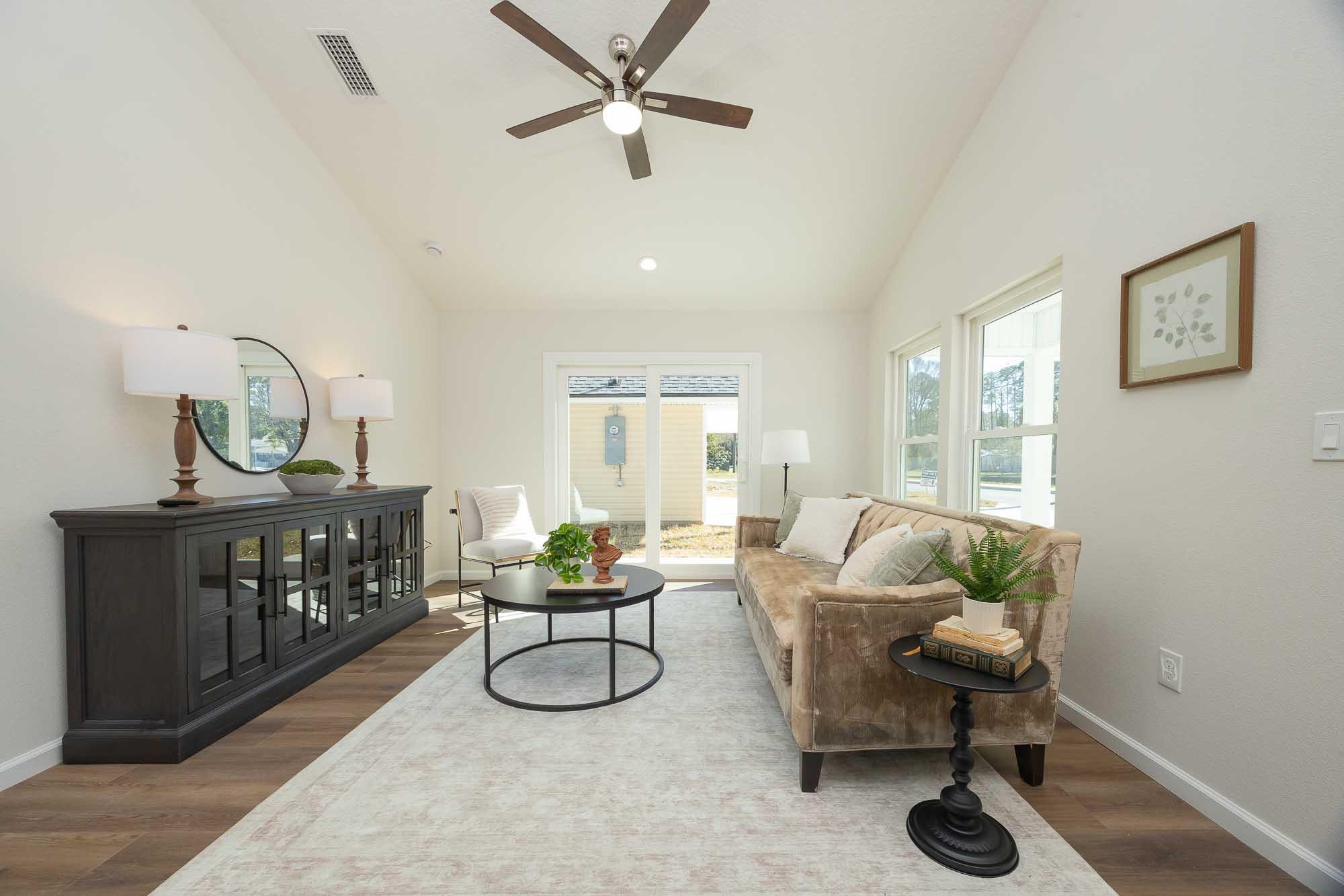 BRAND NEW 3BR/2BA HOME. Open, spacious, light & bright floor plan. Large 26' covered front porch. Beautiful light colored luxury vinyl plank floors throughout. Kitchen with upscale wood cabinets & gorgeous granite counters. Tankless water heater. Owner suite with walk in tiled shower & large walk in closet. Additional walk in closet in 2nd bedroom. Custom tile in 2nd bathroom. Vaulted ceiling, recessed lighting plus full sized laundry closet. Roomy living room with sliders leading to outdoor patio & spacious back yard made possible by having sewer connection & no septic hump taking up valuable space. Treed area borders north side of home for privacy. Built by native, family owned TOP TEN custom builder who puts pride in his work! NO RESTRICTIONS means you can park a boat in the yard, or use it as an investment and rent by the night. 1. 5 miles to historic downtown & 6. 4 miles to the beach! 2 BRAND NEW HOMES SIDE BY SIDE! EXTRA WIDE DRIVEWAY FITS UP TO 6 CARS!