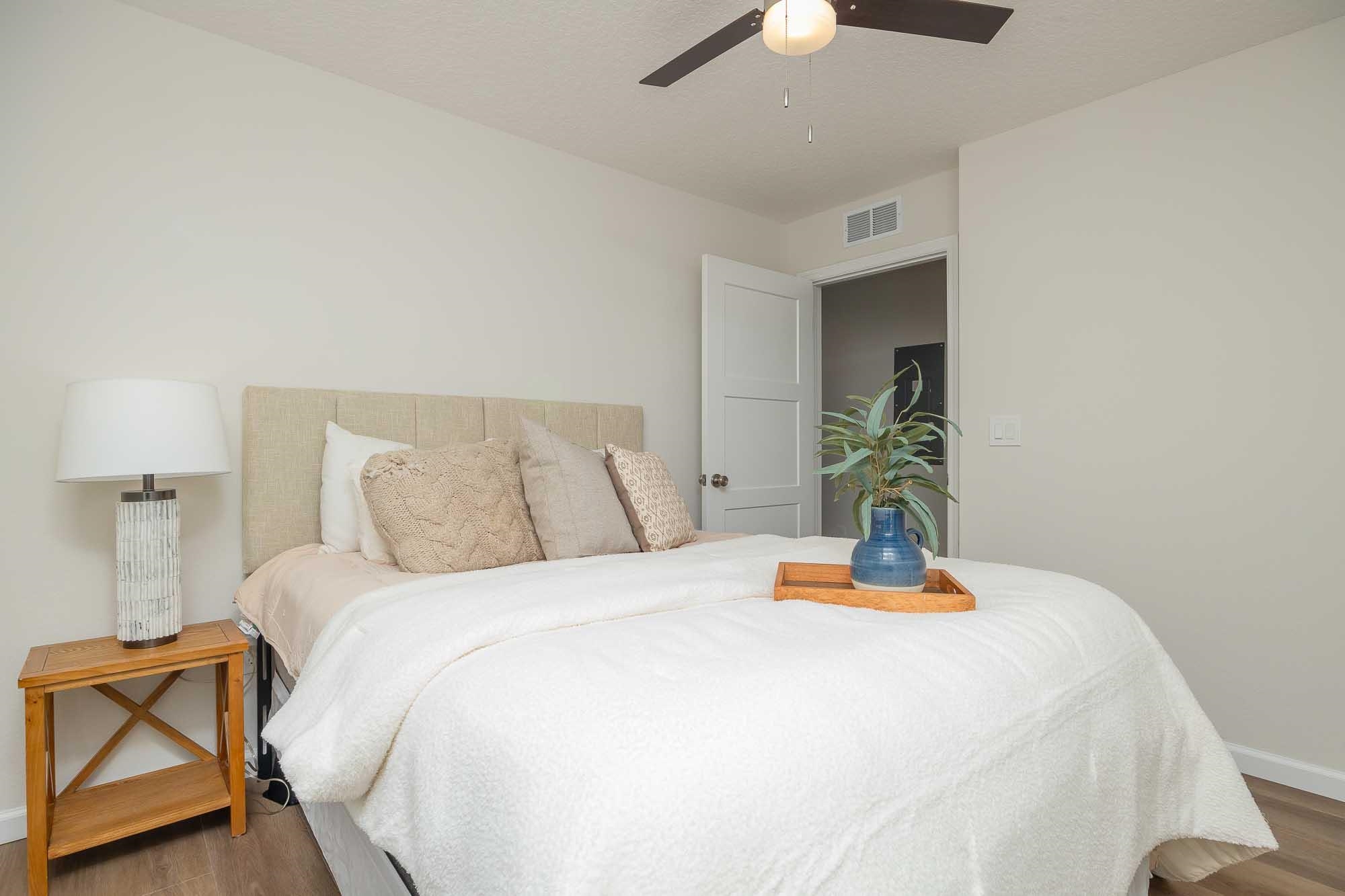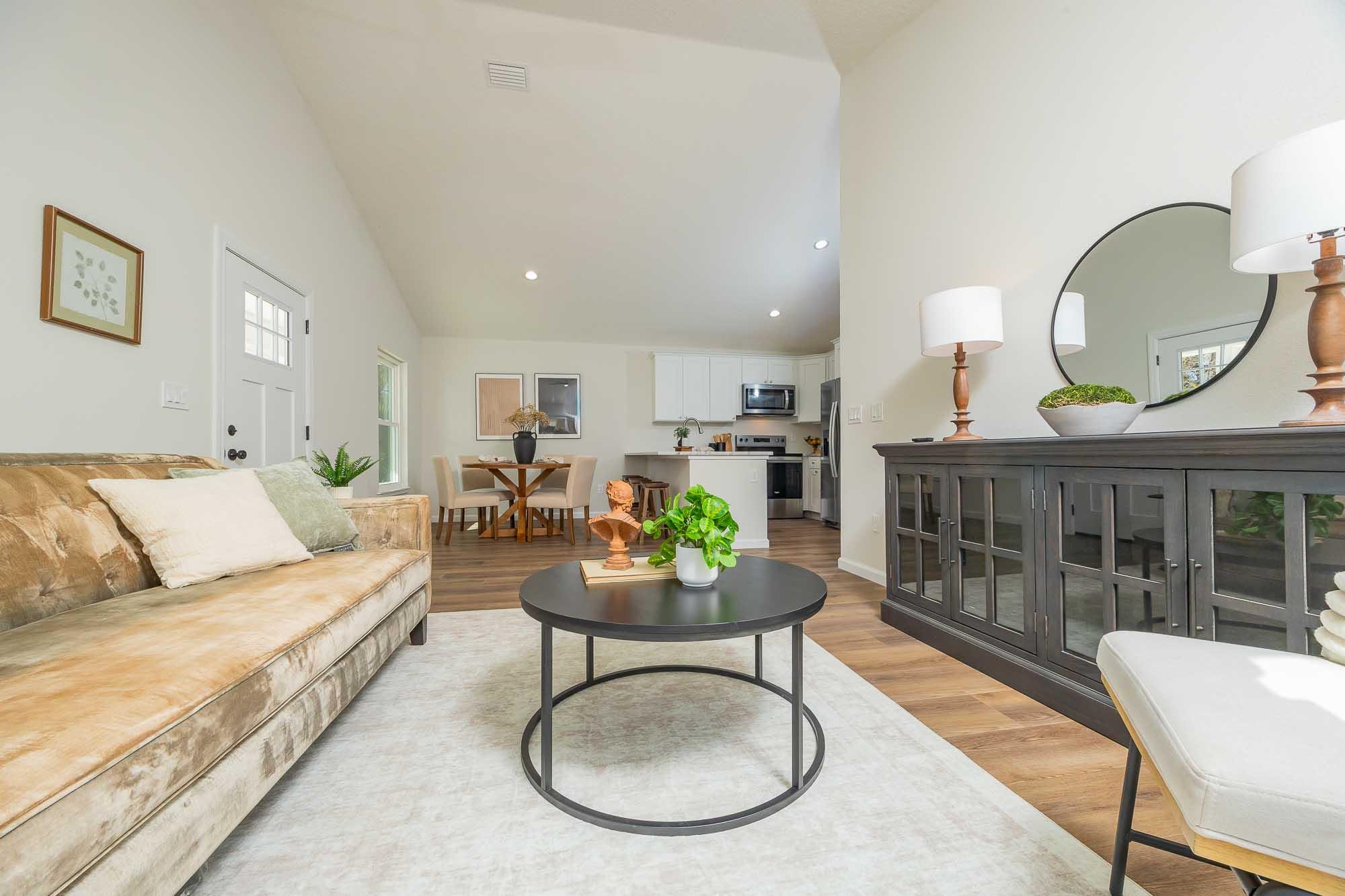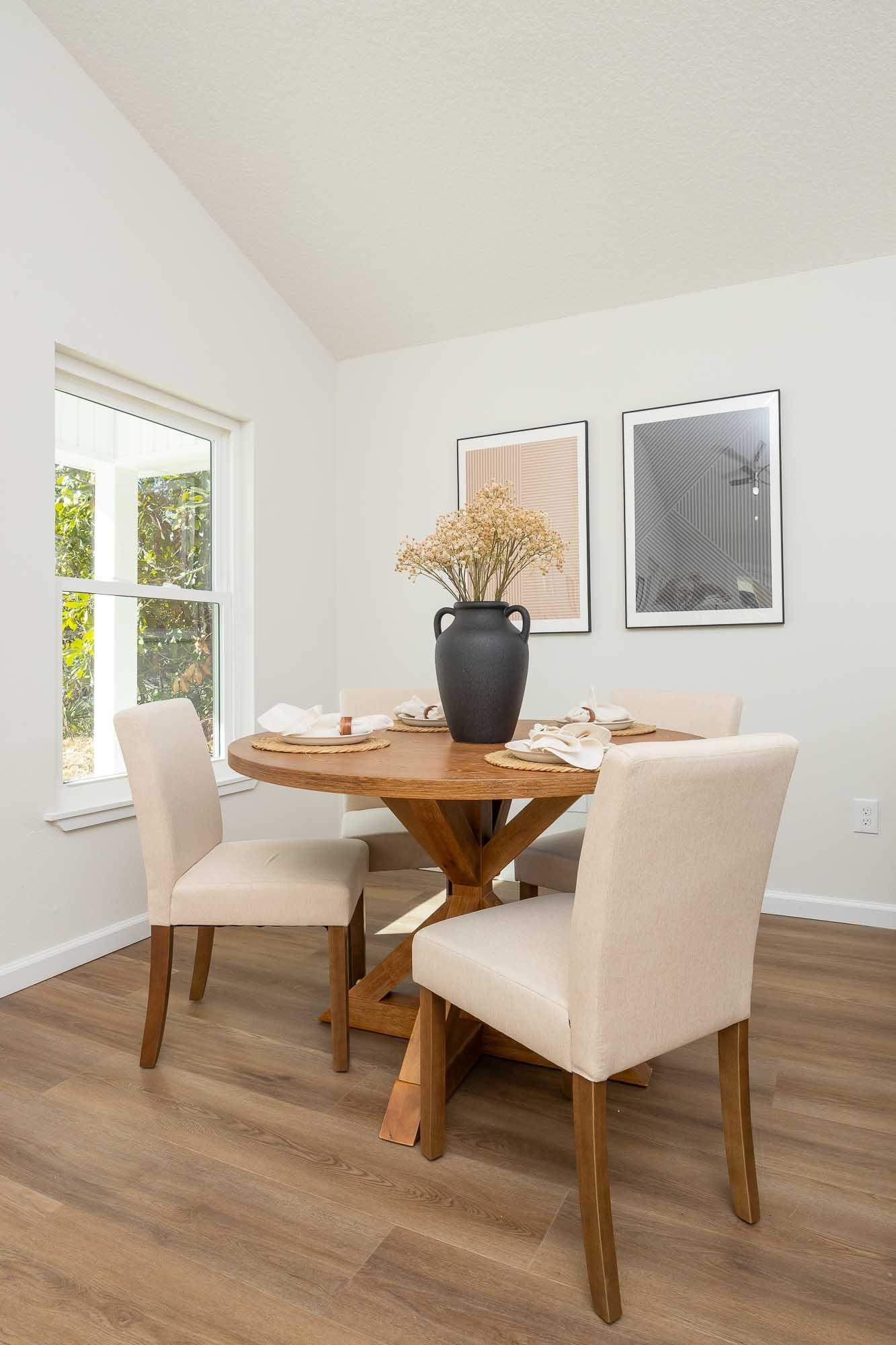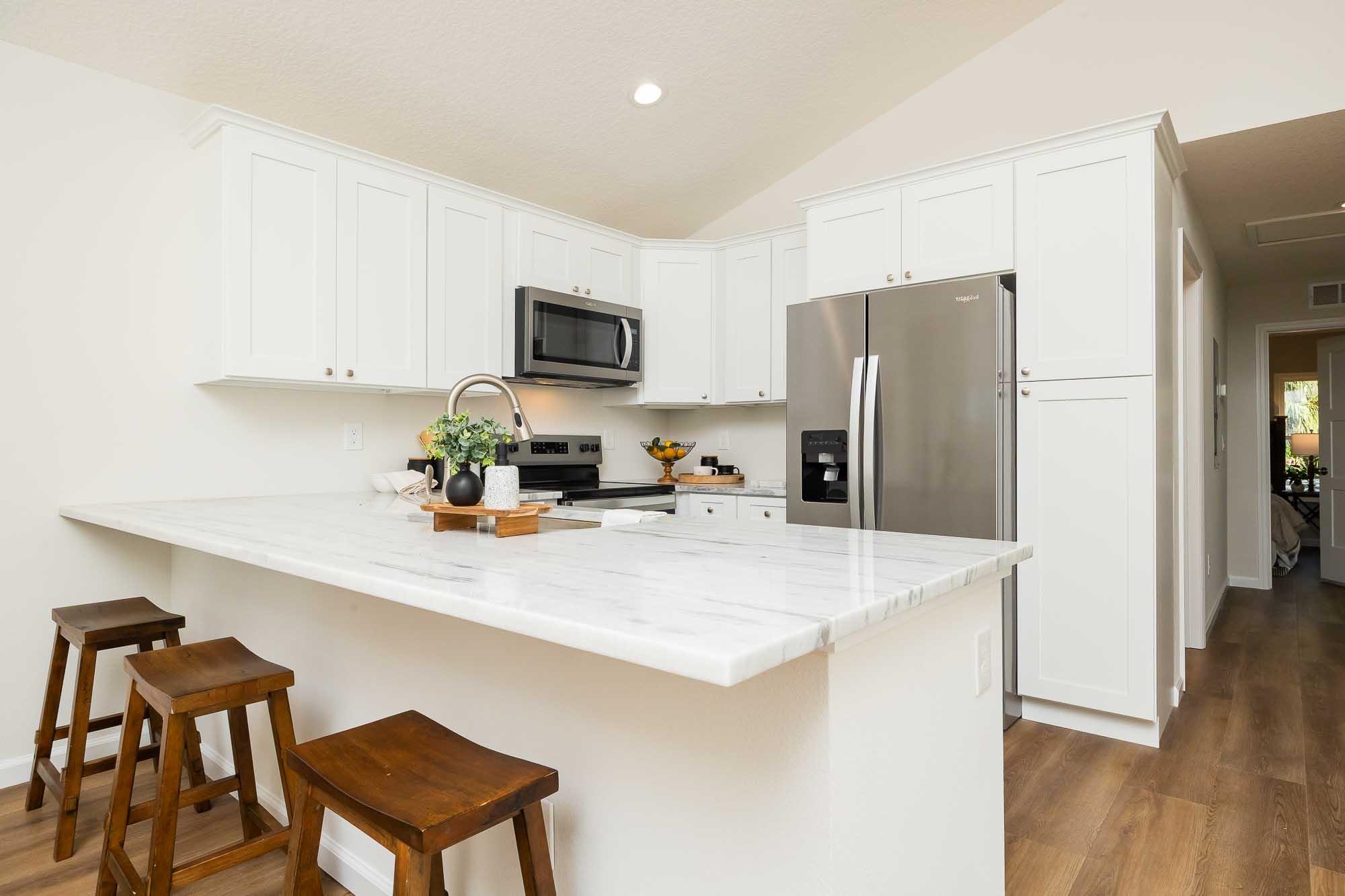 BRAND NEW 3BR/2BA HOME. Open, spacious, light & bright floor plan. Large 26' covered front porch. Beautiful light colored luxury vinyl plank floors throughout. Kitchen with upscale wood cabinets & gorgeous granite counters. Tankless water heater. Owner suite with walk in tiled shower & large walk in closet. Additional walk in closet in 2nd bedroom. Custom tile in 2nd bathroom. Vaulted ceiling, recessed lighting plus full sized laundry closet. Roomy living room with sliders leading to outdoor patio & spacious back yard made possible by having sewer connection & no septic hump taking up valuable space. Treed area borders north side of home for privacy. Built by native, family owned TOP TEN custom builder who puts pride in his work! NO RESTRICTIONS means you can park a boat in the yard, or use it as an investment and rent by the night. 1. 5 miles to historic downtown & 6. 4 miles to the beach! 2 BRAND NEW HOMES SIDE BY SIDE! EXTRA WIDE DRIVEWAY FITS UP TO 6 CARS!