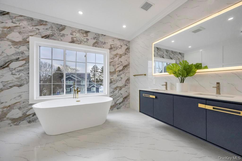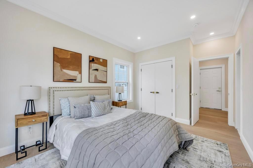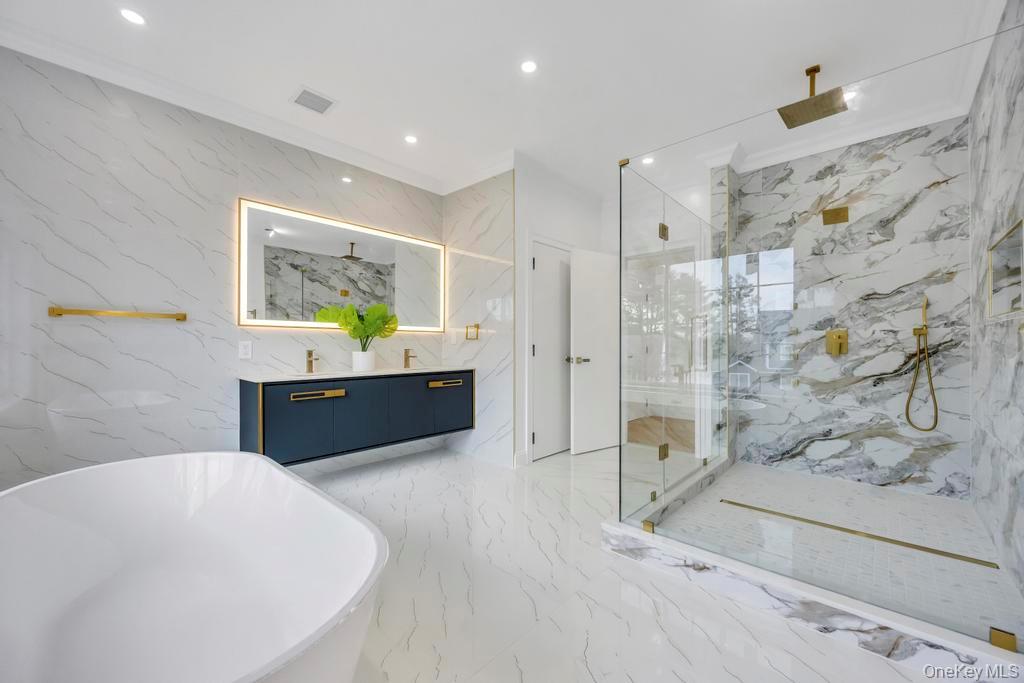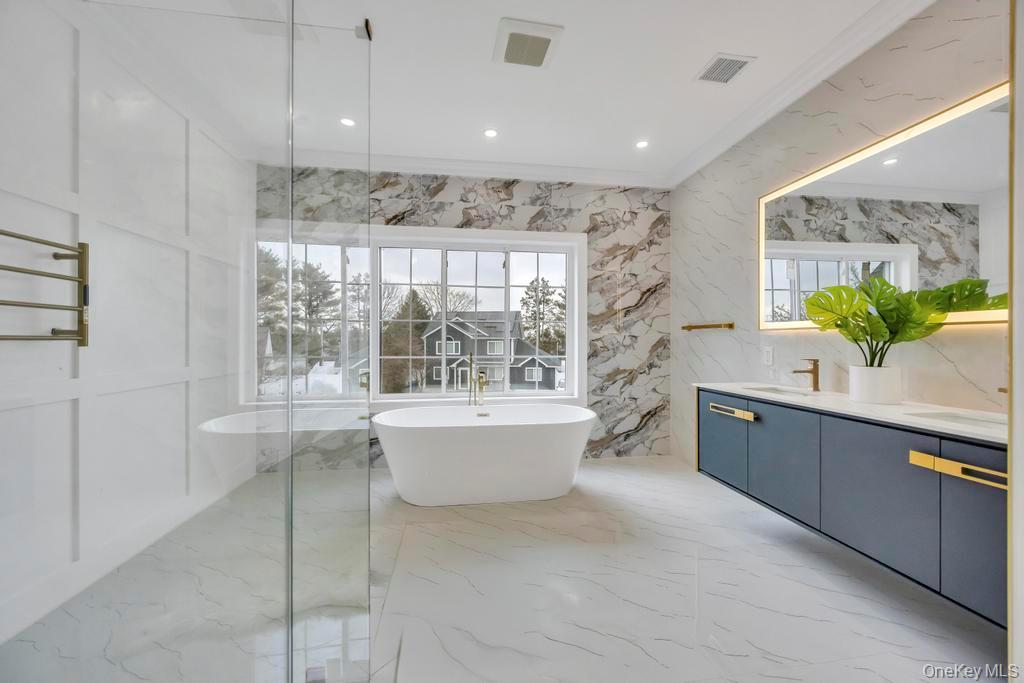 Stunning Central Hall all Stucco Colonial with Luxury Finishes — Includes a Complimentary standard Tesla Y model. This exceptional Central Hall Colonial built in 5100 sq ft offers exquisite millwork throughout and a grand double-door entry that sets the tone for refined living. Finished with a sophisticated all-stucco exterior, this home blends timeless architecture with modern luxury — and uniquely includes Complimentary standard Tesla Y model with this house purchase. This home features elegant solid wood white oak floors, recessed hi-hat lighting, and a sleek electric fireplace. The gourmet kitchen is equipped with propane and gas cooking, perfect for the home chef. A well-appointed powder room and a functional mudroom complete the first floor, along with a spacious first-floor primary suite featuring a luxurious bath. Upstairs, the primary suite impresses with his-and-her closets, a private balcony, and a spa-like primary bathroom. A junior suite with a full bath, additional bedrooms, and a conveniently located second-floor laundry room enhance everyday comfort. In total, the home offers five bedrooms and 4. 5 bathrooms. The fully finished basement includes a private side entrance, ideal for extended living or entertainment space.