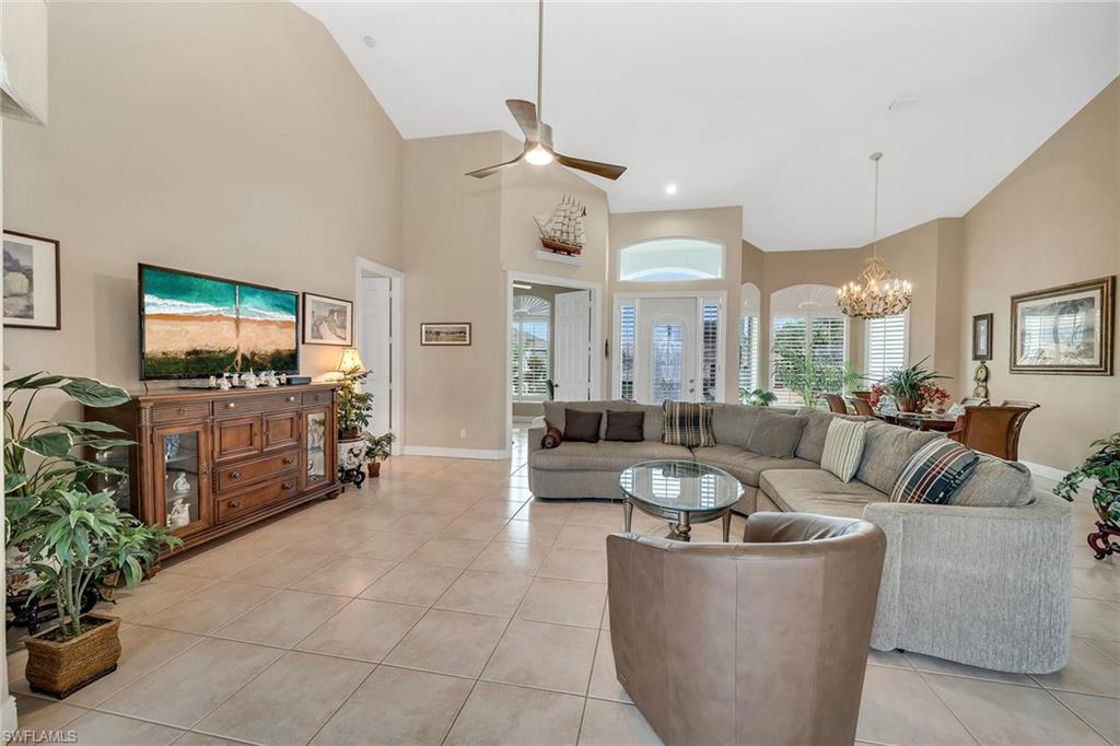 Enjoy tranquil eastern exposure, convenience to Resident's Beach, Gulf access, and long, converging waterway views from this beautifully maintained Marco Island residence, surrounded by lush landscaping designed for low maintenance and a minimal irrigation bill. Offered furnished, this home reflects pride of ownership throughout, with charming outdoor spaces, a serene waterfront setting, and effortless indoor-outdoor living that captures the best of island life. The thoughtfully designed floor plan offers three bedrooms plus a den, two bathrooms, a two-car garage, a brick paver driveway, and a tile roof, which enhances curb appeal. The screened lanai features a panoramic screen enclosure, covered outdoor living with dual ceiling fans, and stunning water views overlooking the heated pool. Beyond the lanai, a landscaped outdoor seating area extends toward the waterfront, leading to the private deck, whaler reinforced seawall, and boat lift, with quick and easy Gulf access. Inside, vaulted ceilings, tile flooring in the main living areas, white plantation shutters, and elegant arched windows create a light-filled, inviting atmosphere. The kitchen enjoys beautiful water views and is appointed with wood cabinetry, tile backsplash, stainless steel appliances, including a newer range, newer microwave, dishwasher, and newer refrigerator with icemaker, plus a built-in desk area and breakfast bar. A bright breakfast nook with corner windows and direct lanai access is ideal for casual dining with a view. The living and formal dining areas flow seamlessly together, with sliding glass doors opening to the lanai for effortless entertaining. The owner’s suite is a peaceful retreat with crown molding, wood-look tile flooring, tranquil water views, and private lanai access. The en-suite bath features a dual-sink vanity with makeup counter and full-width mirrors, a walk-in shower, and a separate jetted soaking tub. Two guest bedrooms share an adjacent bath with a walk-in shower that also serves as the pool bath. A well-equipped laundry room includes an LG washer and dryer, utility sink, and overhead cabinetry, while the garage offers built-in cabinetry and shelving for added storage. Perfectly positioned on the water in Marco Island, this inviting home delivers relaxed waterfront living with boating, views, and comfort at the forefront.