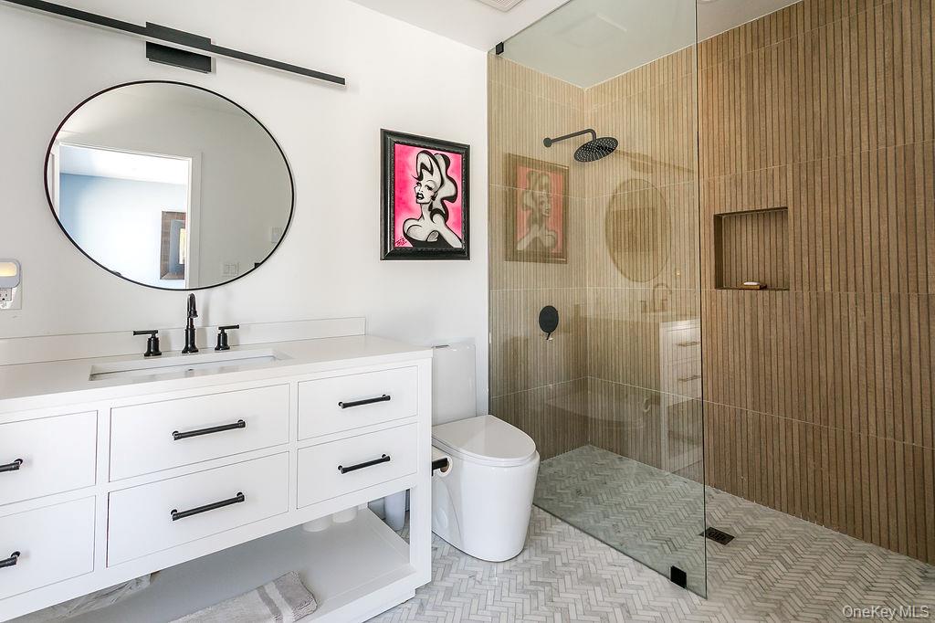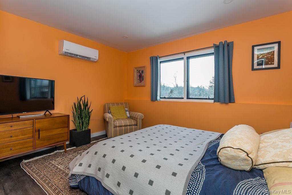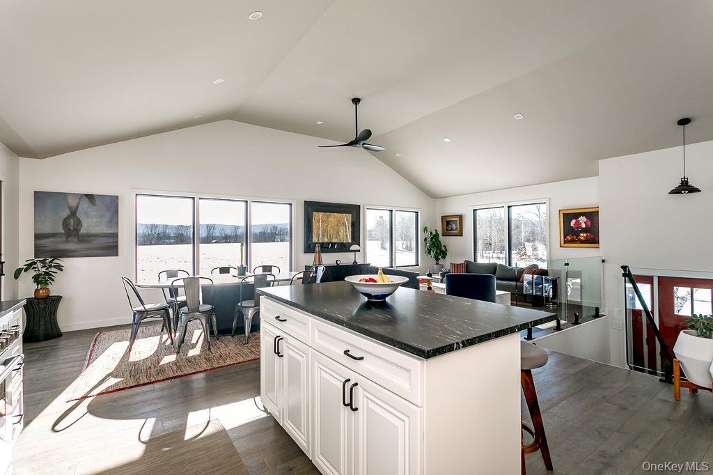 Surrounded by conserved land and elevated to maximize beautiful Shawangunk, Mohonk Mountain House/Skytop and meadow views, this recently reimagined home offers privacy and tranquility with gorgeous sunrises and sunsets providing an everchanging viewshed. Upon entering the home, you are greeted by modern sophistication and inviting open concept. The kitchen is outfitted for the true cook, with stainless steel Bertazzoni appliances, convenient over-the-stove pot filler, marble backsplash, island and honed granite countertops. The bright dining area opens to a spacious deck with glass surrounds, providing unobstructed views of the picturesque surroundings and perfect for al fresco dining. The living room is enhanced with high ceilings and an abundance of windows, serving as a perfect retreat to unwind while soaking in the natural beauty. The main level hosts three well-sized bedrooms and two full bathrooms, including one en-suite in the primary bedroom with large walk in shower. The primary bedroom offers direct access to the rear deck, enhancing the indoor-outdoor living experience. Descending one level discover the fourth bedroom, flexible space (think gym/studio/office) and third full bath. This level includes a laundry room with convenient exterior door and seamlessly connects to the two-car garage, providing direct and practical access. The hardie-plank siding, new roof, generator and paved driveway ensures many years of low level maintainence. A true country setting, this residence offers the allure of rural living while being conveniently located just a few minutes from local stores and restaurants. Five minute walk to the O&W Rail Trail to walk, bike and enjoy the sites and sounds of nature. A short drive to Mohonk Preserve, Minnewaska State Park. 90 minutes from the GWB, convenient to Route 87 and exits 18 and 19 (New Paltz and Kingston).