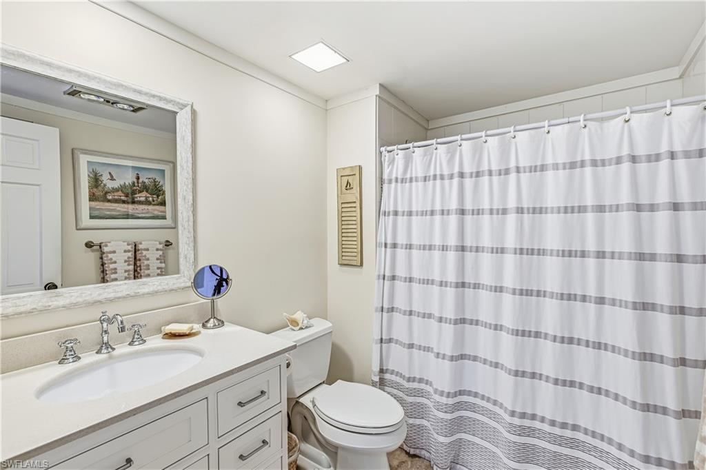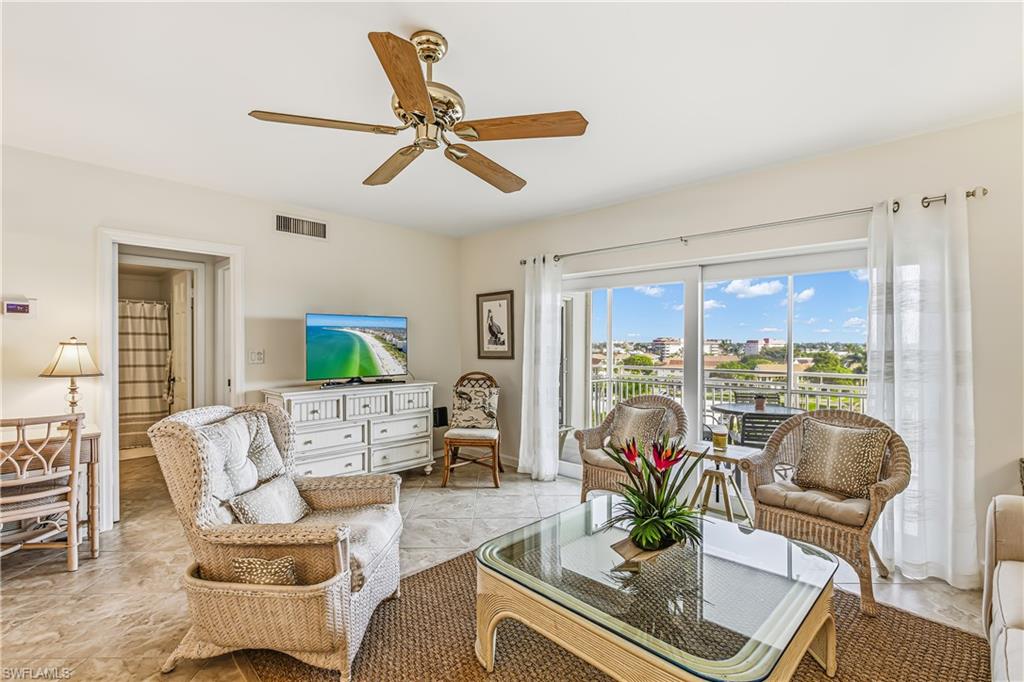 Charming beachfront building with city views from this cozy 1 bedroom, 1 bath condo. Updated with tile flooring throughout, light kitchen cabinets and stainless steel appliances. Light bathroom vanity and shower. Newer a/c and high impact doors and windows. Larger screened lanai to relax and enjoy the night lights of Marco. Emerald Beach is a low density building with lots of amenities such as pool, BBQ, social room, library, exercise room and guest suite. Walking distance to shops and restaurants make this the perfect location.