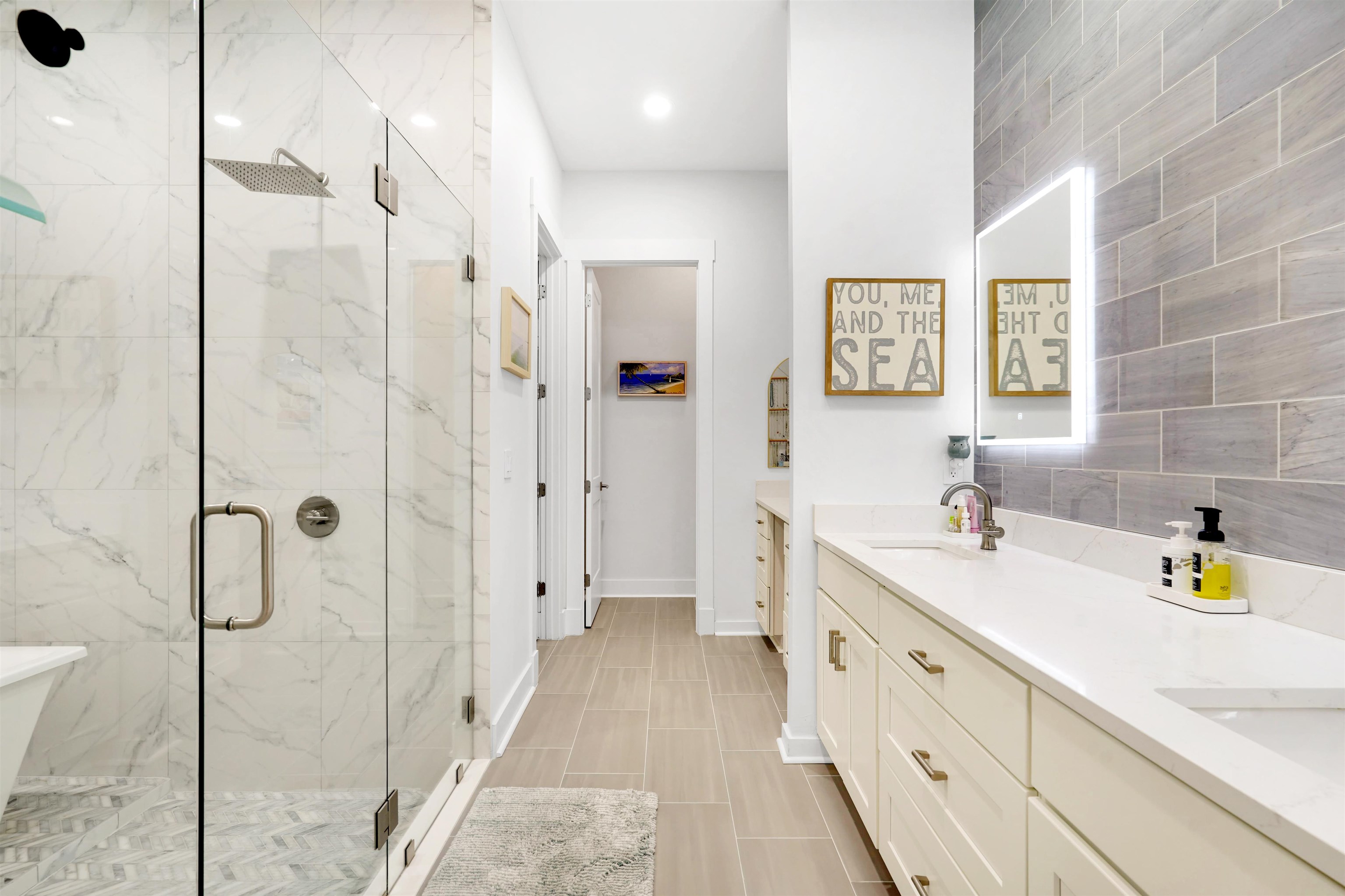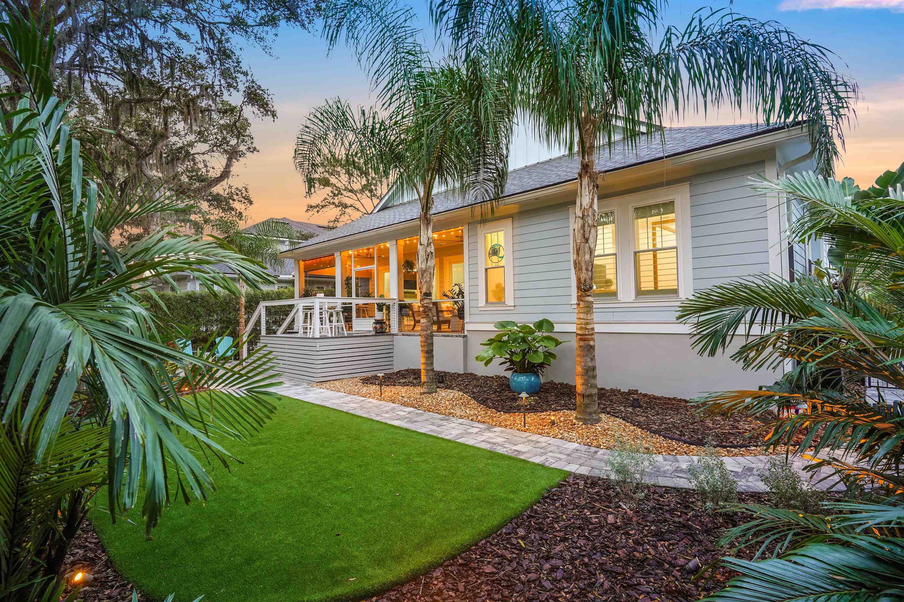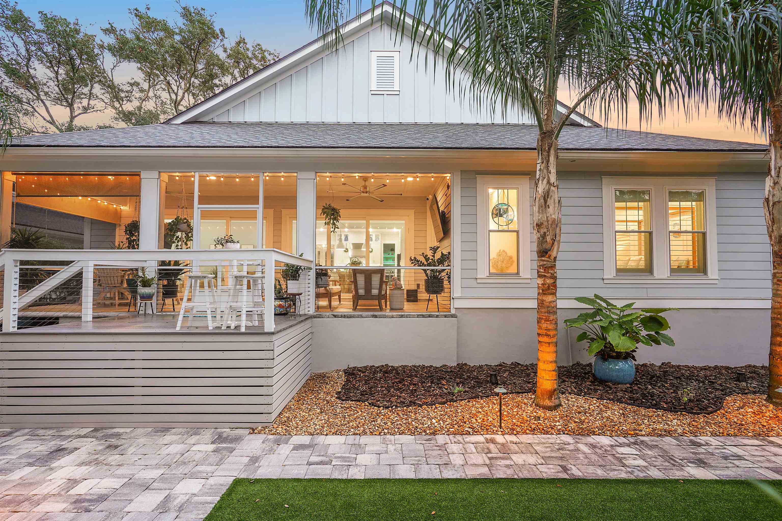 Welcome to 212 Ridgeway Road in Ocean Ridge, where contemporary coastal design, elevated upgrades, and effortless single story living come together. Built in 2021 and extensively enhanced, this home offers over 2, 300 square feet of beautifully utilized space with three bedrooms, three full bathrooms (all with new flooring), and a dedicated home office, delivering both style and everyday functionality. Inside, soaring vaulted ceilings and high end Opus hardwood flooring create an immediate sense of volume and warmth. The kitchen, living, and dining areas blend seamlessly, forming an open concept layout that lives and entertains exceptionally well. The chef’s kitchen is a true focal point, featuring Bosch appliances with a double oven and 36 inch cooktop, quartz countertops, extended white shaker cabinetry, custom pantry with wood shelving, new backsplash, upgraded hardware, and designer pendant lighting. Thoughtful LED under cabinet lighting adds both ambiance and practicality. The living area is anchored by a shiplap fireplace with custom mantle and stylish oversized fans, while large sliding glass doors open the space to the screened and covered lanai, creating a natural indoor outdoor flow. The backyard is a private oasis, completely reimagined with lush landscaping, mature palms, landscape lighting, and privacy fencing. Enjoy evenings under the covered lanai, entertaining in the outdoor kitchen with gas grills, refrigerator, and sink, or relaxing around the fire pit in a tranquil, resort style setting. The primary suite offers a peaceful retreat with custom wood accent walls, plantation shutters with blackout shades, rainfall shower heads, and a spa inspired bath with LED mirrors and refined finishes. Guest bathrooms have been upgraded with new fixtures, lighting, mirrors, and wallpaper, creating a polished and cohesive feel throughout. A custom built home office adds flexibility for today’s lifestyle. Additional highlights include spray foam insulation, a whole home Generac generator, Reme Halo air purification system, CGC water softener with reverse osmosis, EV charging, WiFi enabled irrigation, and a fully outfitted garage featuring coated floors, extensive storage, attic access, water hookup, and retractable electric screen doors that allow for airflow and flexible use of the space. Ideally located within walking distance to the beach and some of the area’s best restaurants, this contemporary coastal home delivers exceptional design, meaningful upgrades, and a true coastal lifestyle in one of the area’s most desirable communities. Book your private showing today!