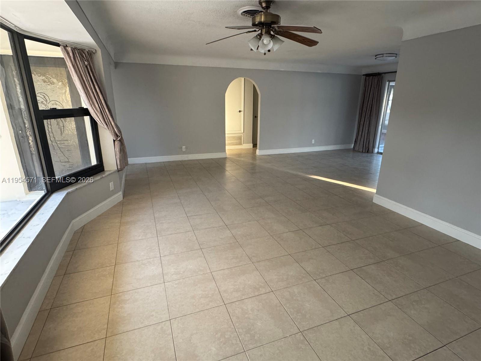 The home features all hurricane impact windows and doors, 2018 roof, freshly painted interior and exterior, tile floors in living and dining areas, and laminate flooring in the bedrooms. Updated kitchen with Corian countertops and remodeled bathrooms with upgraded finishes make this home move-in ready.