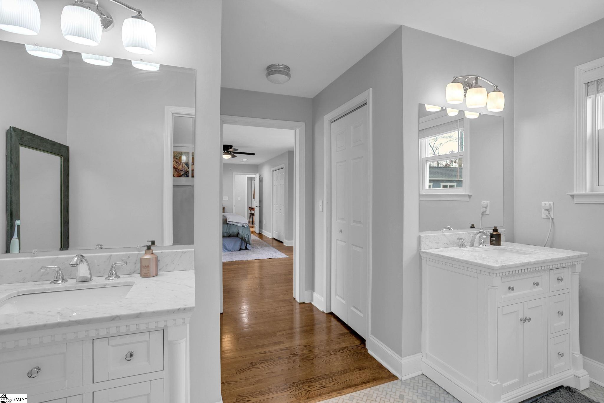Located in the desirable Gower Estates neighborhood, this beautifully updated single-story home offers the perfect blend of charm, comfort, and convenience. Enjoy easy access to dining, shopping, parks, interstates, and just a short drive to Downtown Greenville. From the moment you step onto the welcoming front porch, you’ll feel right at home. Inside, don’t miss the dry bar by the front door. The spacious formal living area greets you with original hardwood floors and abundant natural light that flows seamlessly throughout the main living spaces. The layout effortlessly connects the living room, dining area, and updated kitchen, ideal for both everyday living and entertaining. The kitchen features must-have finishes including quartz countertops and stainless steel appliances. It opens to a generous drop zone and laundry area just off the carport for added convenience. The oversized primary suite offers a true retreat with an ensuite bath featuring dual vanities, a water closet, and a spacious tiled shower. Two additional bedrooms provide flexibility, with one offering its own ensuite bathroom and an additional hall bath nearby for the third bedroom and guests. Step outside to a backyard designed for entertaining, complete with a large deck and patio perfect for relaxing or hosting family and friends. A newly added shed with power adds extra functionality and storage. This home checks all the boxes! Schedule your showing today and experience it for yourself!