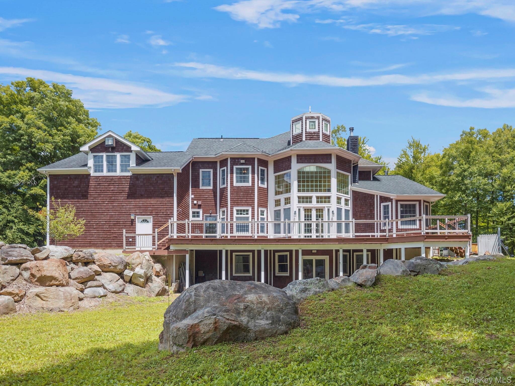An all season retreat w/a peek of winter & summer! A serene & totally private haven setting w/view of the mountains & the tranquil sounds of your babbling stream leading to your own majestic custom built, by owner, Queen Anne Victorian style home, w/numerous hidden features that enhances the quality of the home situated on 12. 5 acres of lush Mother Nature!! Welcoming you is an expansive wrap around front porch; savor the silence catching the breeze on your 2-person cedar bench swing hung over your Brazilian Sapele front porch flooring. Craftsman Natural Walnut front door w/sidelights commences the breathtaking tour of your hearth. Rays of sunshine burst into your Great Room w/floor to ceiling windows, rising to a dramatic 30’ceiling topped by a 9’ octagonal turret featuring five sunlit sidelights adding a special warmth during the cold season, & 8' Anderson French doors leading to your deck. Kitchen is an absolute dream for the entertainer. Multi-tiered 9’ Carrara marble island that seats 4, Black Absolute granite counters, Fisher & Paykel SS appliances. For your ease of storage, a walk-in pantry & double sliding barn doors w/ample shelving. Included is a unique custom Amish made American Chestnut table w/storage window bench & chairs that seat 14, valued at $16K. Your 1st floor primary bedroom boasts 2 walk-in closets, a custom red oak double helix spiral staircase leading to a loft/office. The office can also be accessed thru the walk-in closet on the bedroom level. An ensuite bathroom w/white marble vanity, 6’x4’ custom stall shower with a seat & 4 body sprays & ceiling rain shower. Light the candles & prepare your beverage of choice to enjoy your deep, heated Whirlpool tub; your personal spa. The library flaunts custom built-in shelving & window seat storage. Unique porcelain flooring imported from France are in your foyer, kitchen & mudroom. 5” Mahogany wood flooring in library, dining room, & 1st floor primary room. Your bedroom level has 5” maple wood floors. A 36’x32’ recreation room is a special highlight w/4 storage dormers, take note of your ceiling design that adds richness and class to the beauty of the room. All 3 levels have 9 zone radiant heat flooring (except rec. rm. ) and 9’ ceilings. Your unfinished basement is add. 2165 sq. ft. w/sliding glass door egress. Attic stairs, which is accessed through a bedroom closet, has a ceiling height of approx. 10'. The septic is 1500 gallons w/oversized leach fields, which could accommodate a 5th bedroom (w/town approval)!! Quality features are: Cedar Shake Siding Perfection #1(Olympic Elite stain & sealed), Timberline Lifetime 50 year Architectural roof, exterior LED perimeter lighting, driveway & bridge lighting, 400 amp Elec. service & underground cabling utilities, 200 amp sub-feeder for future backyard out-buildings, 60 amp sub-panels on 2nd fl, boiler rm and basement laundry rm. , 310' deep well w/61 gal Well-X-Trol tank, fenced dog run w/water & drain, doggie door in mud rm. closet, 6/25 new 1st floor AC compressor, Moen FLO flood Watch System turns off water in the entire house if a leakage occurs, Cat 6 Datacom wiring w/RG6 Coaxial cabling in each room, multi-linked & hard-wired smoke & carbon detectors w/120V battery backup on all levels, several out buildings, and so much more. The Town is waiting for NYS approval to pave road. This property borders 15, 000 acres Fahnestock State Park! App. 1. 25 hour to Grand Central Station, short distance to Rt. 84 & Rt. 9. Property has the potential to be subdivided into 3 additional lots, with Town approval, for your family heritage!! A must see to capture all the nuances of this lovely home. Be sure to view the "Virtual Tour”, follow @1081. EMRS. 10516 on Instagram. Full details and enhancements listed on the Special Feature Sheet attached to the MLS for more of the top of the line highlights that make this home a true gem. A golden opportunity & a must see, awaits for you to call this amazing home your own!