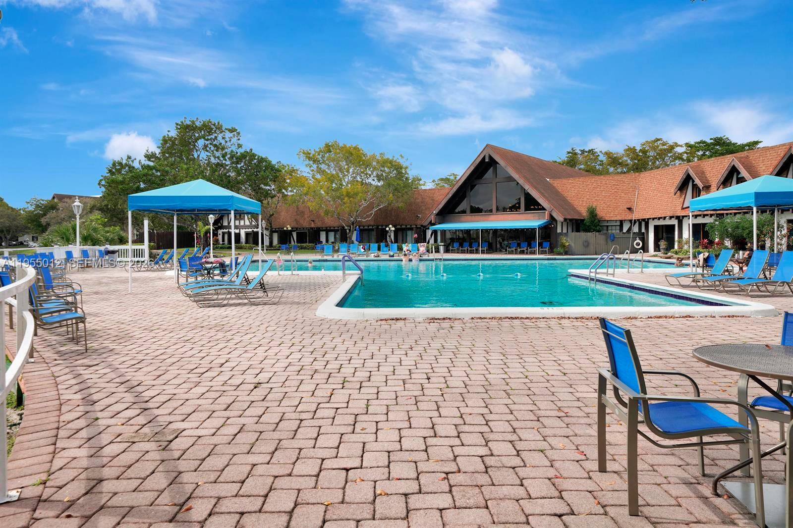 Renovated, new appliances, First Floor, 1 bedroom 1. 5 bath with large step-down living room, separate dining room, Vynil Floor. Water and pest control included in rent. Amenities Galore: Indoor & outdoor heated pools & Jacuzzis, 24/7 guard at gate & security patrol, tennis, pickleball, billiards, racquet ball, fitness center, card room, library, picnic & barbeque area. $400 refundable association security deposit.