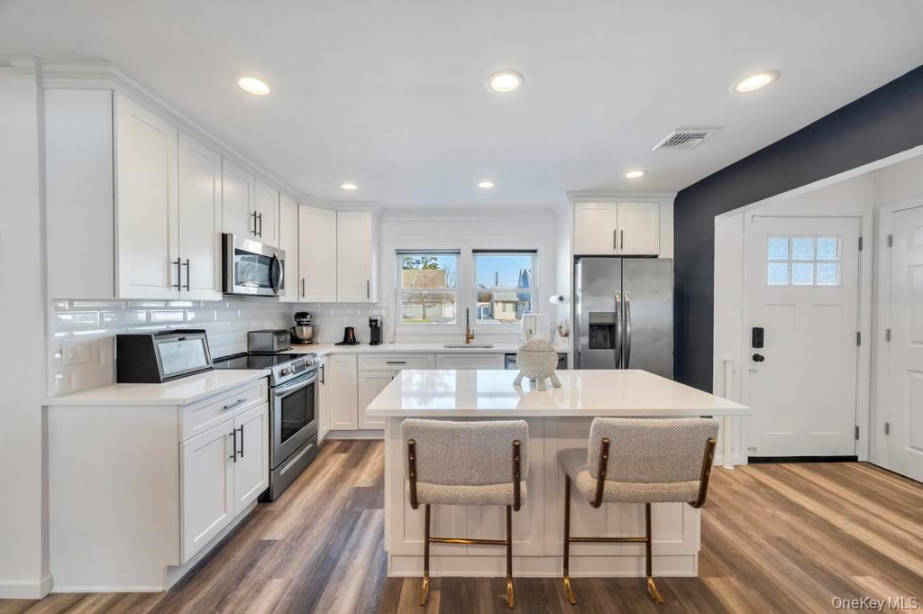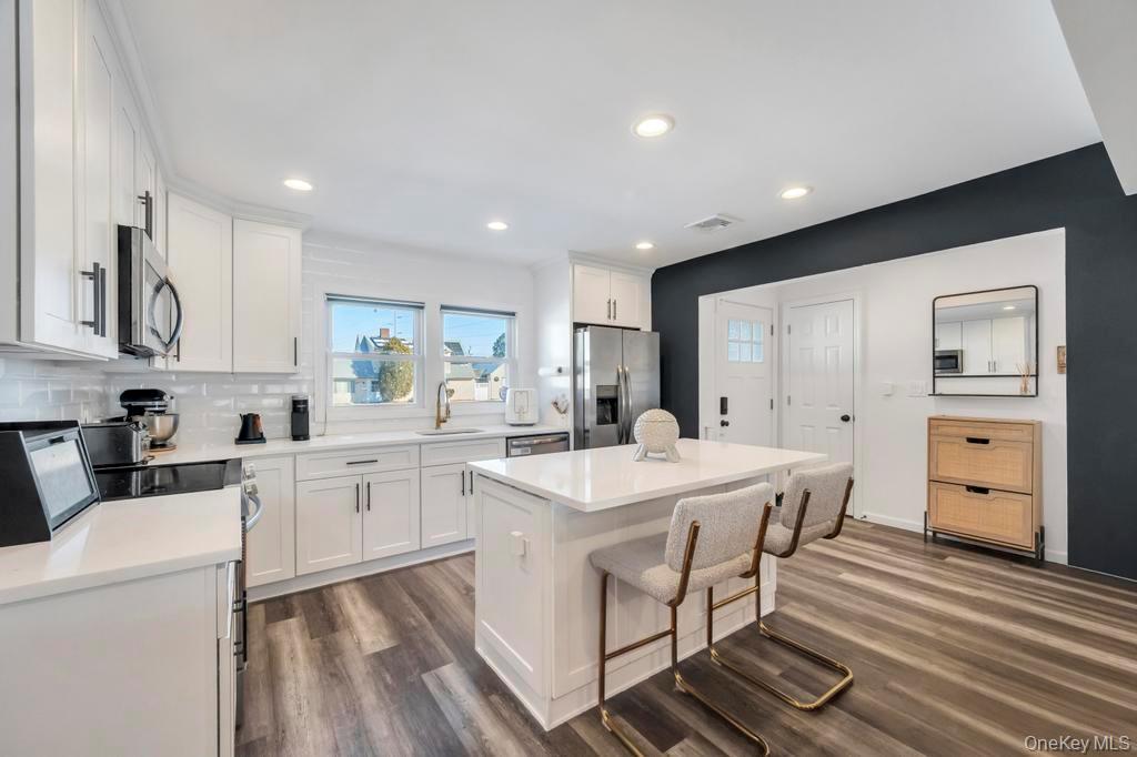 This fully renovated expanded levit ranch home (2023) offers numerous upgrades and modern features throughout. Exterior improvements include a new shed, patio on the deck, new turf, sod installed in the front yard, sprinkler system. The property also features vinyl fencing and a PVC fence, along with a 4-car driveway. Inside, the home includes vinyl flooring, and an extended living room. The kitchen has been updated with quartz countertops, a new sink, and modern finishes. Additional updates include new Anderson windows and a fully updated bathroom. Major systems have been upgraded as well, including electrical (200-amp service), new siding (1 year old), HVAC system (3 years old), roof (2 years old), and a tankless water heater. This house is a must see and is sure to go fast !
