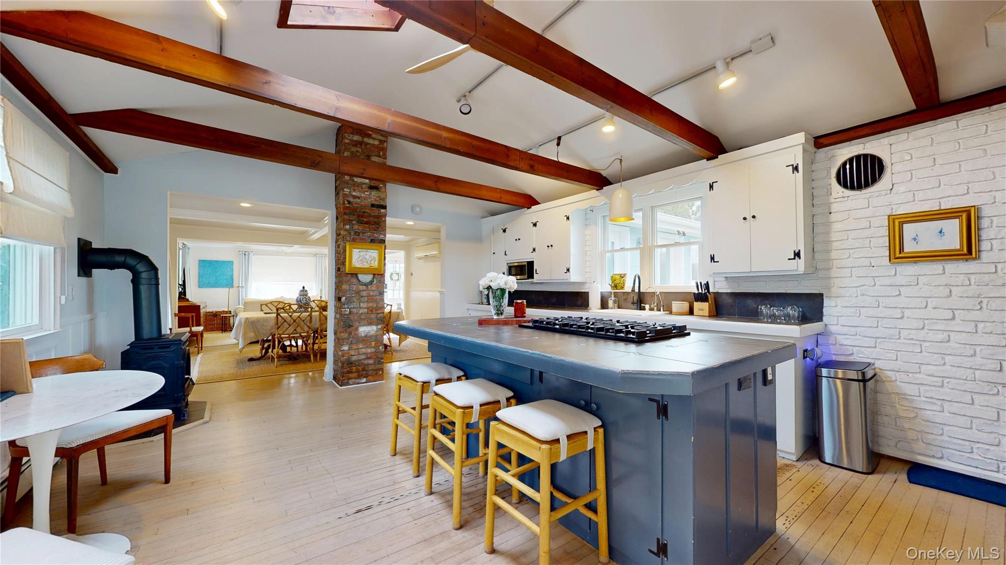 Hampton Country Traditional with 3 bedroom, 2. 5 baths blends timeless character with fresh style. The home features a modern open floor plan, a first floor primary suite, a kitchen with center island gas cooktop, and a gas potbelly stove for cozy winter living. A year-round hot tub adds to the comfort. Set on over half an acre south-of-the-highway, the fully fenced property offers exceptional privacy with a heated 20’ x 40’ pool, expansive lawn, large rear deck, detached out-building and additional storage shed. Set in the heart of East Quogue Village, close to the park, Hampton Jitney, and Village Main Street shops and only 3 miles from Dune Road and world-class Town of Southampton beaches. Don't miss this opportunity.