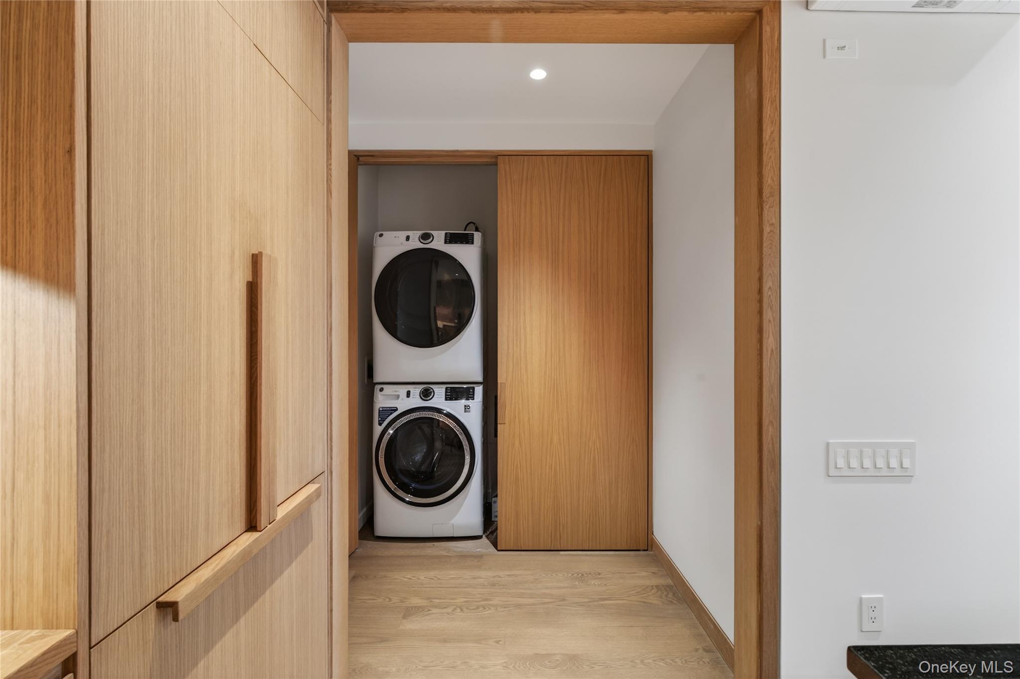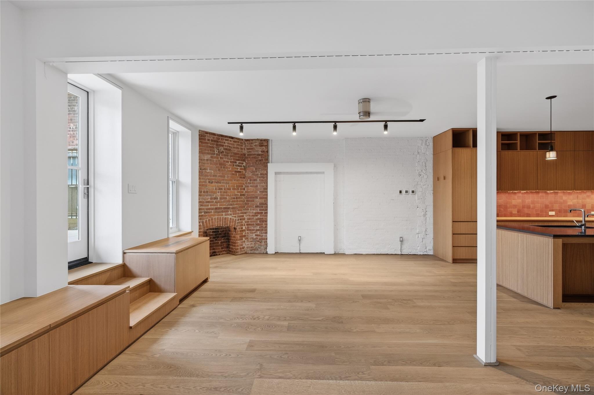 This exceptional two-bedroom, two-bathroom residence offers refined modern design paired with historic character, all set in the heart of Uptown Kingston. Thoughtfully renovated with custom craftsmanship throughout, the apartment delivers a level of quality and detail rarely found. The open-concept living space features wide-plank hardwood floors, exposed original brick, and bespoke built-in shelving and cabinetry that bring warmth and architectural depth to the interior. Oversized windows allow for excellent natural light while maintaining privacy above street level, creating a bright and inviting atmosphere throughout the main living areas. The custom-designed kitchen is both visually striking and highly functional, featuring floor-to-ceiling wood cabinetry, open display shelving, and a substantial island topped with dark stone. High-end stainless steel appliances, integrated storage solutions, and modern pendant lighting create a kitchen well suited for everyday living as well as entertaining. Both bedrooms are generously sized and thoughtfully detailed, incorporating custom millwork, built-in storage, and exposed brick accents that echo the character of the building. The primary bedroom is complemented by a spa-quality bathroom with a soaking tub, a glass-enclosed shower, dramatic tilework, and a custom vanity. The second bathroom is equally refined, offering clean modern finishes and a walk-in shower. Additional conveniences include an in-unit washer and dryer, mini-split heating and cooling, recessed and track lighting, and custom closets throughout the apartment, all contributing to a comfortable and well-appointed living experience. A defining feature of this residence is the private rooftop-style deck, directly accessible from the apartment with open views overlooking the Senate Garage grounds. This expansive outdoor space functions as a true extension of the living area and is ideal for dining, or relaxing outdoors in a quiet, open-air setting. Located just steps from Kingston's restaurants, galleries, and cultural institutions, this apartment offers the rare combination of walkable urban living, architectural character, and meaningful private outdoor space. Utilities are not included. On-street parking is available.