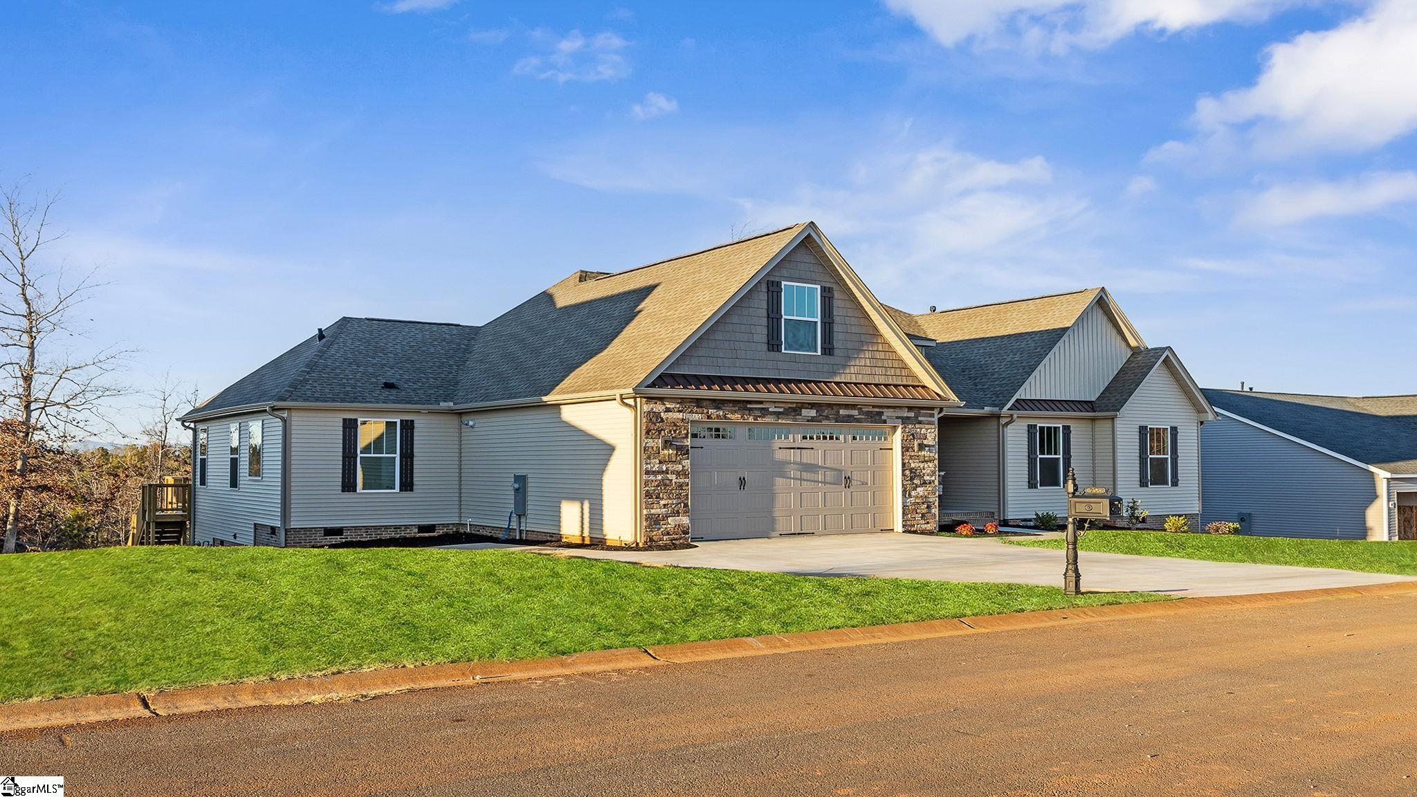 Discover 705 Hidden Creek Court, a beautiful new home in our Shadowood community! This thoughtfully designed one-and-a-half-story home features four bedrooms, three bathrooms, a spacious flex area, and a two-car garage across 2, 851 square feet of beautifully balanced living space. With its open-concept layout and comfortable private retreats, this home blends elegance, functionality, and modern design. As you enter through the covered front porch, you’ll be welcomed by a bright foyer that opens into the expansive living room. The open layout flows seamlessly into the dining area and modern kitchen, which includes stainless steel appliances, a large center island, and ample cabinetry for storage and meal prep. The main level features a luxurious primary suite with a generous walk-in closet and a spa-inspired bathroom complete with dual vanities, a soaking tub, and a separate shower. A secondary suite on the main floor provides flexibility for guests or extended family, while two additional bedrooms and a full bathroom ensure space and comfort for everyone. Upstairs, a large flexible space adds even more versatility, ideal for a playroom, media room, office, or workout area. The covered back deck creates the perfect setting for outdoor entertaining or relaxing evenings. With its open layout, modern finishes, and thoughtful details throughout, this home combines comfort, style, and practicality for today’s lifestyle.