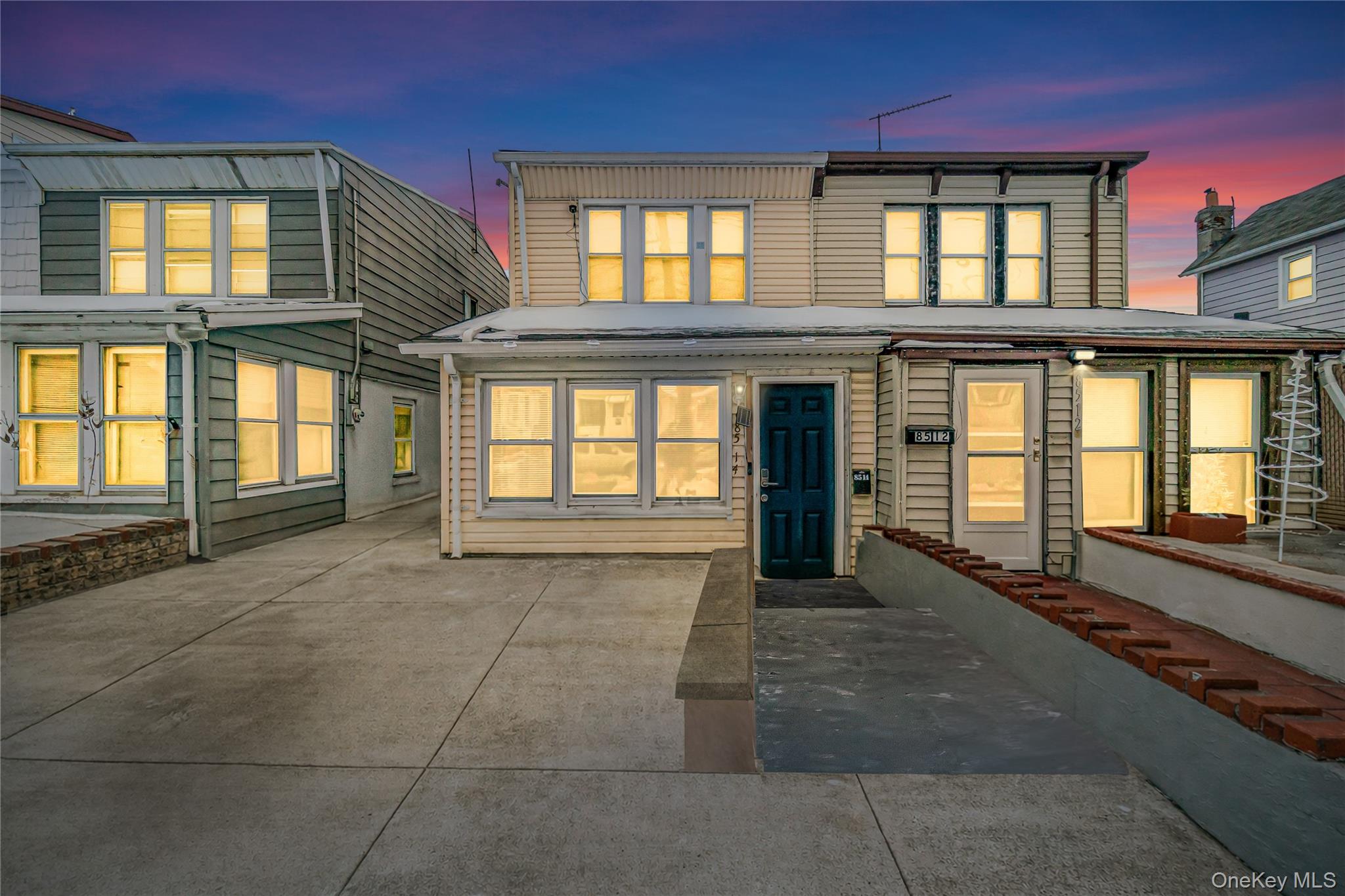 Three-bedroom home located on the west end of Sutter Avenue. Front entry leads into a living room with Life-Proof click-tile flooring. Separate dining area adjacent to an open-concept kitchen featuring shaker-style cabinetry, stainless steel appliances, and tiled backsplash. Second floor includes a full bathroom with subway-tiled stand-up shower and three bedrooms with refinished hardwood flooring. Unfinished basement and attic provide additional storage space. Property includes a shared driveway with access to rear parking. Major updates include boiler, hot water heater (2023), roof (2023), and PVC fencing. Conveniently located near transportation, shopping, and schools.