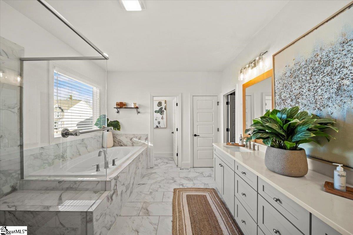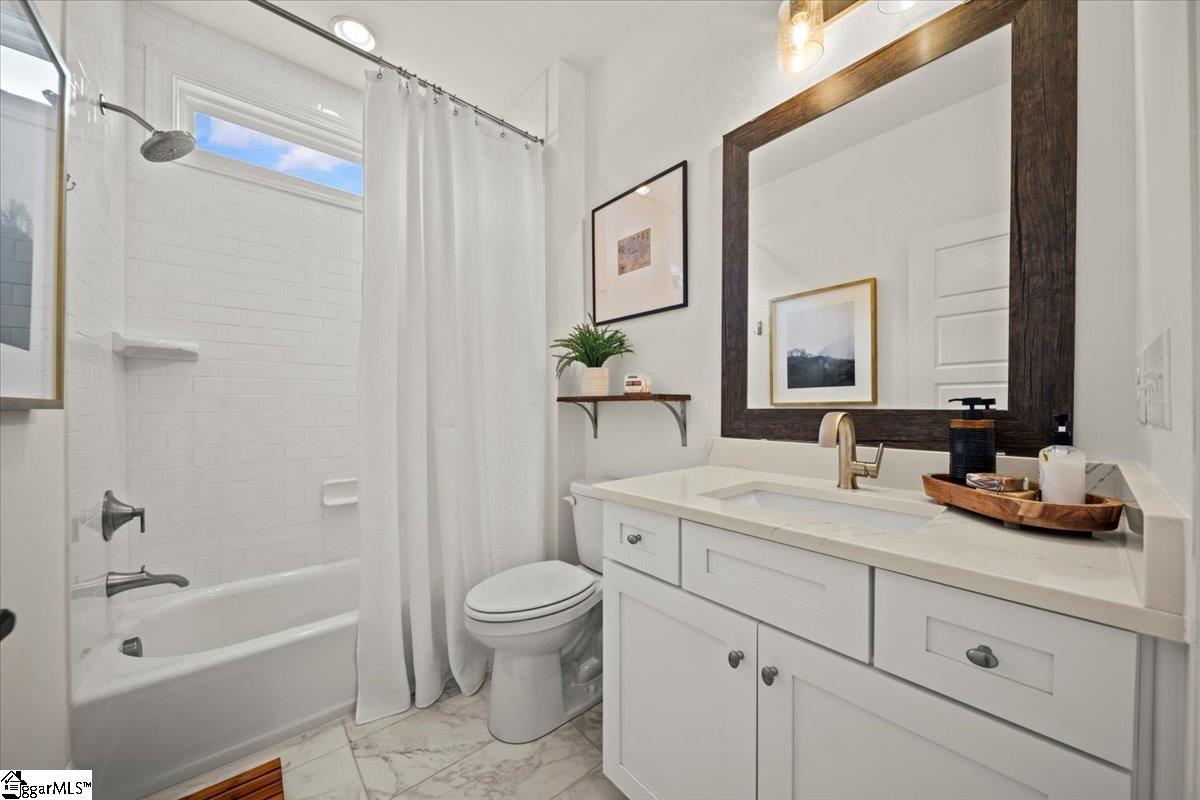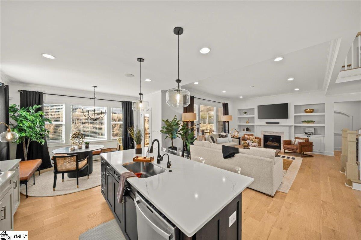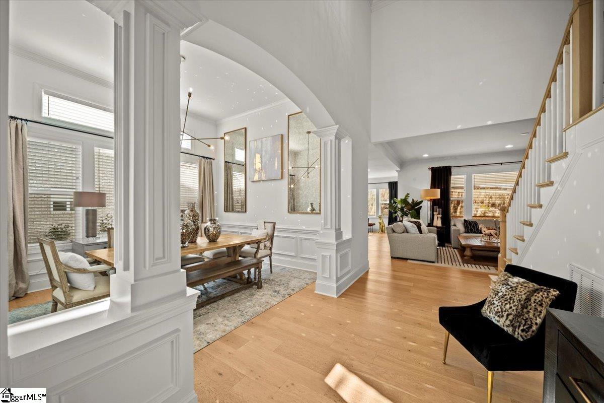 Welcome to this stunning Craftsman-style home located in the highly desirable River Reserve community. Built in 2023, this beautifully appointed 5-bedroom (plus bonus room), 4-bath residence offers 3, 798 sq ft of thoughtfully designed and curated living space on a 0. 26-acre lot. A very rare, turn-key opportunity exists because most furniture, decor and accessories are negotiable with purchase. Step inside the impressive two-story foyer, where abundant natural light highlights the home’s elegant millwork and architectural details. A main-level guest suite with a full bath provides the perfect space for visitors or a home office. The formal dining room features an arched entry with columns and a soaring 12' ceiling, setting the stage for memorable gatherings. The heart of the home is the gourmet kitchen, showcasing quartz countertops, 42" Whisper-painted cabinetry, a contrasting dark-stained island, marble chevron backsplash, GE Profile stainless appliances, 36" gas cooktop, convection wall oven/microwave, chimney-style hood, soft-close drawers, LED under-cabinet lighting, and a spacious pantry. The adjoining breakfast room flows seamlessly to a large rear covered porch—ideal for outdoor dining. Owner added two outdoor concrete patios, one of which is wired with a 220-volt outlet for a hot tub. The inviting family room includes a gas fireplace flanked by custom built-in media cabinetry, creating a warm and functional central gathering space. The first-floor Premier Suite offers a peaceful retreat with French Oak hardwood flooring, a generous walk-in closet, and a spa-inspired bathroom with quartz countertops, soaking tub, oversized tiled shower, and Whisper-painted cabinetry. Upstairs, you’ll find a spacious loft, a large recreation/bonus room, and additional bedrooms including one with an en-suite bath, providing flexible living options for family, work, or play. Additional highlights include: 3-car garage Smart home alarm system with 6 outdoor cameras In-ceiling speakers in family room Hardie siding & stone/Architectural shingle roof Covered front and rear porches French Oak hardwoods throughout most of the main floor Mudroom with drop zone & cubbies Laundry room with built-in cabinetry Located in the acclaimed Riverside School District Just off of Rt. 14 & Pelham Road/Minutes to Downtown Greer, GSP Airport, Greenville & Spartanburg, shopping, parks, and medical facilities This impeccably crafted home combines luxury, comfort, and unbeatable convenience in one of Greer’s most sought-after communities. Owner is listing agent.