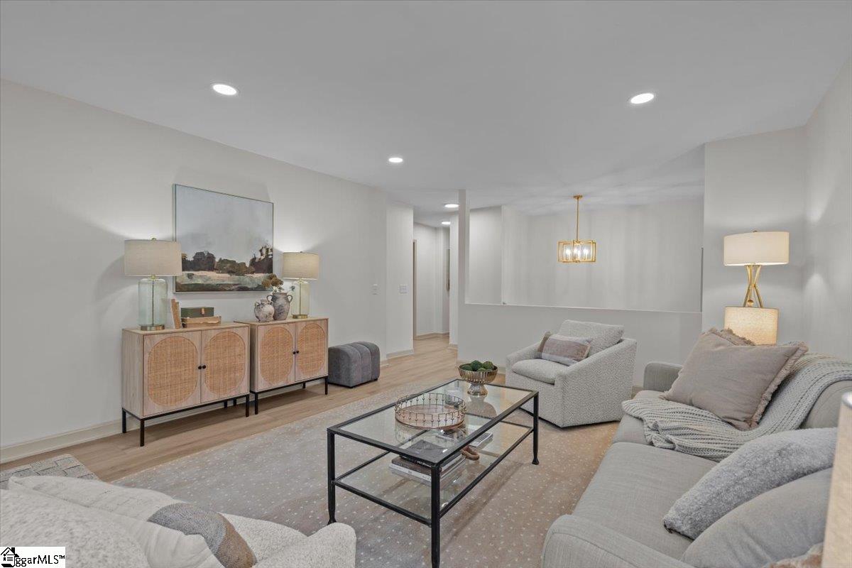 A must see! Completely renovated from top to bottom, this stunning residence offers a refined blend of modern craftsmanship and timeless comfort—all set against the backdrop of one of the Upstate’s most visited golf courses. Tucked at the end of a quiet cul-de-sac and positioned directly on the first tee box, the setting alone defines the lifestyle: peaceful mornings, sweeping views, and the rare opportunity to live steps away from the course. Enjoy it all from the oversized deck overlooking the fairway—perfect for unwinding at the end of the day or hosting weekend gatherings with friends. Inside, the home feels warm, bright, and intentionally designed. The kitchen is a standout, featuring solid oak soft-close cabinetry, quartz countertops, a gas stove, double ovens, and a double-size refrigerator—ideal for anyone who loves to cook or entertain. Beautiful lighting casts a soft glow across the open dining space, inviting you to slow down and savor the moment. Every major system has been upgraded, including a brand-new roof with architectural shingles, new HVAC, and a new water heater, offering peace of mind from day one. Luxury vinyl plank flooring flows throughout, complementing the spacious bedrooms and generous closets. The primary bath showcases a brand-new tile shower, designed with both style and comfort in mind. Downstairs, a fully finished basement expands the living possibilities with a bonus room, bedroom, and full bathroom—ideal for guests, a home office, or a private retreat. The oversized two-car garage provides even more flexibility with space for a workshop or golf cart. Whether you’re an avid golfer seeking course-side living or a family in need of extra space and modern amenities, this home delivers a lifestyle that’s both relaxed and refined. It’s move-in ready, beautifully updated, and waiting for its next chapter.